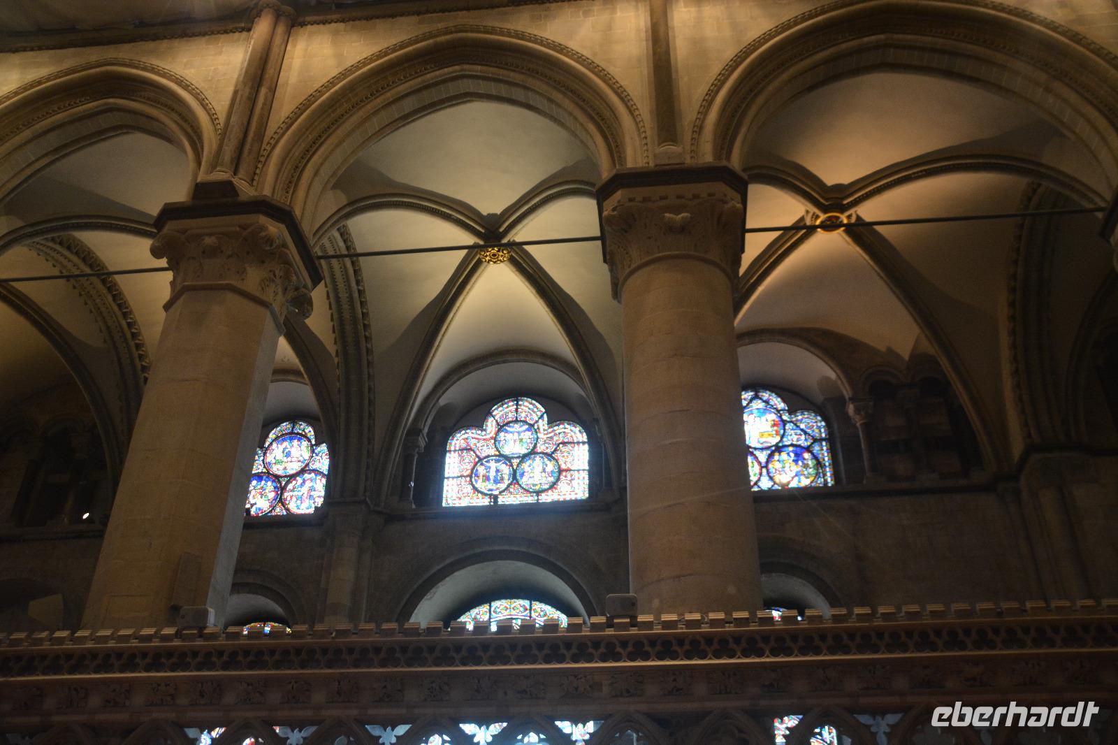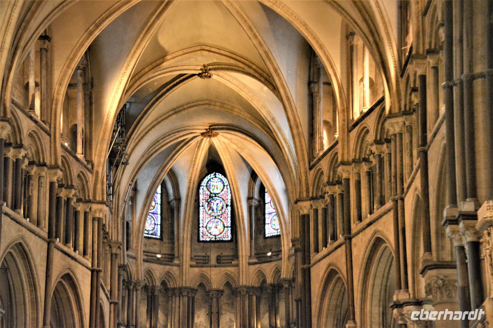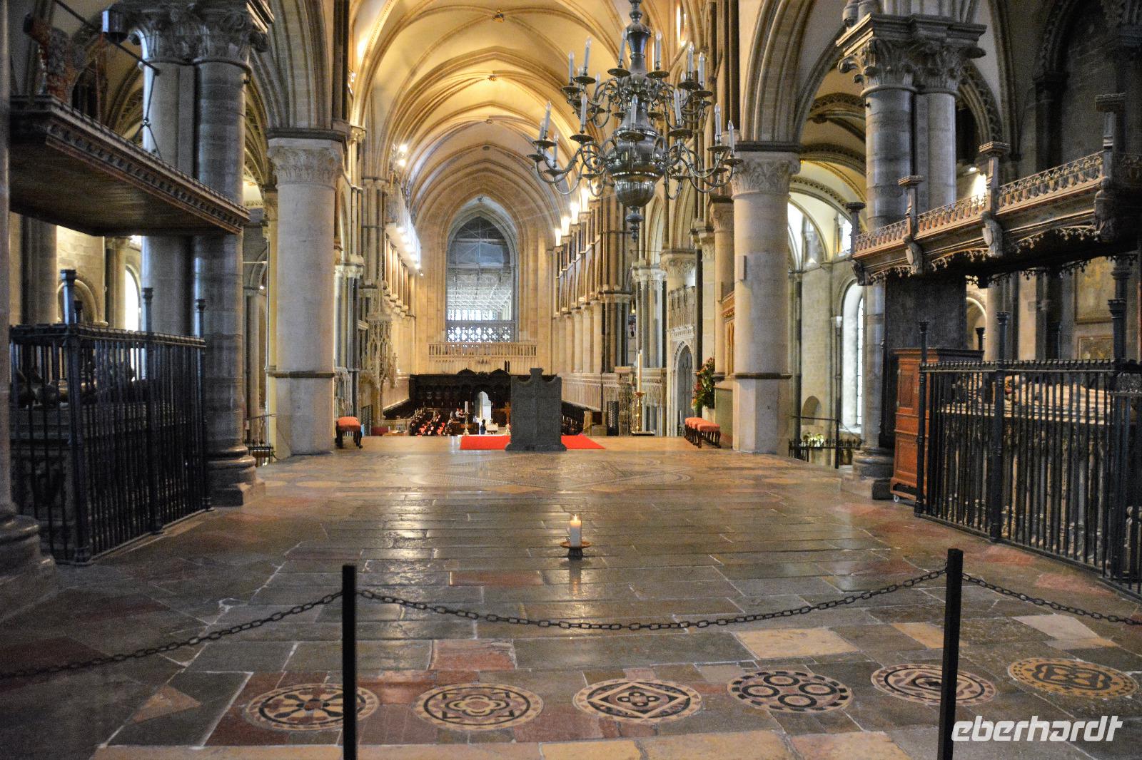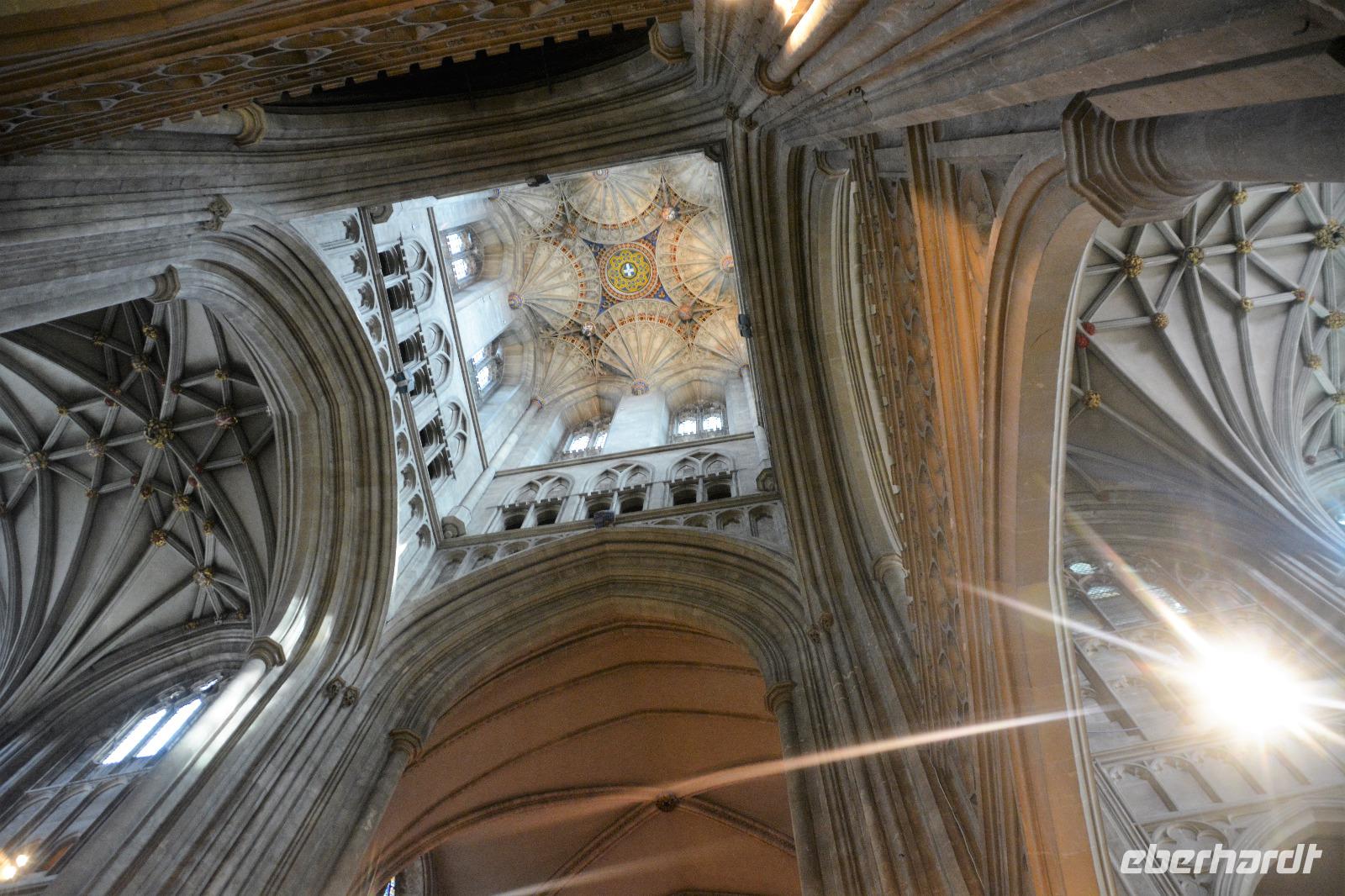 Nach dem Frühstück fahren wir rechtzeitig los, denn unser Bus braucht heute noch ein wenig Nahrung. Schnell sind wir in Calais, die Stadt die im Laufe der Geschichte einiges ertragen musste und heute ein wichtiger Fährhafen nach Grossbritannien ist. Am Terminal ist heute nicht so viel los und wir werden bald zum Auffahren aufgefordert. Die Überfahrt ist ruhig und durch das schöne Wetter können wir die Klippen von Dover schon von Weitem sehen. Die bis zu 106 m hohen Steinwände bestehen aus feinkörnigem Kalk, der seinen Ursprung in der Kreidezeit hat. In dieser Zeit befand sich hier ein tropisches Meer in dem sich die Gehäuse der Schalentiere anhäuften und sich als Sedimente aufschichteten. Heute erscheinen sie besonders weiß, da sie von der Sonne beschienen werden. Langsam kommen wir näher und die Burg von Dover thront über allem. Wir fahren in das Hafenbecken und endlich dürfen wir zu unserem Bus. Hier in Dover und auch in Canterbury, unserem ersten Ziel in Grossbritannien, kam im Jahr 1066 n.Ch. Wilhelm der Eroberer vorbei, um sich an seinem Ziel in Westminster Abbey krönen zu lassen. Canterbury wird auch als das "englische Rom" bezeichnet, denn hier ist das Zentrum der Anglikanischen Kirche und Sitz des Erzbischofs. Wir betreten das weitläufige Areal der Anlage durch ein beeindruckendes Tor und gehen gleich in den Kathedralenbau der eine imposante Länge von 160 m hat. Die Decke des Langhauses bleibt wegen Restaurierungs-arbeiten leider vor unseren Blicken verborgen aber wir können in die Kuppel des Vierungsturmes schauen mit seinem Gewölbe im sog. "Perpendicular Style". Durch den Lettner gelangen wir in den Chor, welcher aus einer früheren Zeit stammt. Berühmt wurde die Kathedrale durch den Mord an Thomas Becket, der als Bischof in seiner eigenen Kathedrale auf Anordnung von Henry(Heinrich) II. ermordet und danach zum Märtyrer wurde. Zu seinem Grab, welches später von Heinrich VIII. zerstört wurde, ströhmten die Gläubigen in Scharen. An der Stelle des Grabes brennt heute ein Kerzenlicht. Wir gehen zum Kreuzgang und landen dann in einem schön angelegten Kräutergarten. Nach einer verdienten Kaffeepause gehen einige von uns noch ein wenig durch das Städtchen, welches einen gemütlichen Charakter hat.Dann geht es zurück zum Parkplatz wo unser Bus steht. Von Canterbury fahren wir weiter in Richtung London. Schon auf der Autobahn wird uns klar, dass wir wohl heute ein wenig später als vorgesehen in London ankommen werden. Eine Ferienwoche geht zu Ende und für den morgigen Tag hat sich doch glatt Herr Trump zu einem Staatsbesuch angesagt. Wir ahnen, dass das wohl unseren Aufenthalt in London etwas beeinträchtigen wird, sind doch begleitend Straßensperren und auch Demomstrationen gegen den Besuch angekündigt. Schon bald bewegen wir uns im Schneckentempo durch Londons Straßen. Unser Hotel welches im Westen der Stadt liegt ist aber nur über diesen Weg zu erreichen. Wir fahren durch den Stadtteil Greenwich mit seinem berühmten Garten und kommen schließlich doch mit einiger Verspätung in unserem Hotel an. Gleich gehen wir zum Abendessen und treffen auf die Mitreisende, die mit dem Flugzeug angereist ist. Sie hatte schon gedacht, dass wir nicht mehr kommen. Trotzdem schmeckt uns das Abendessen in diesem wirklich großen Hotel im Stadtteil Hammersmith.