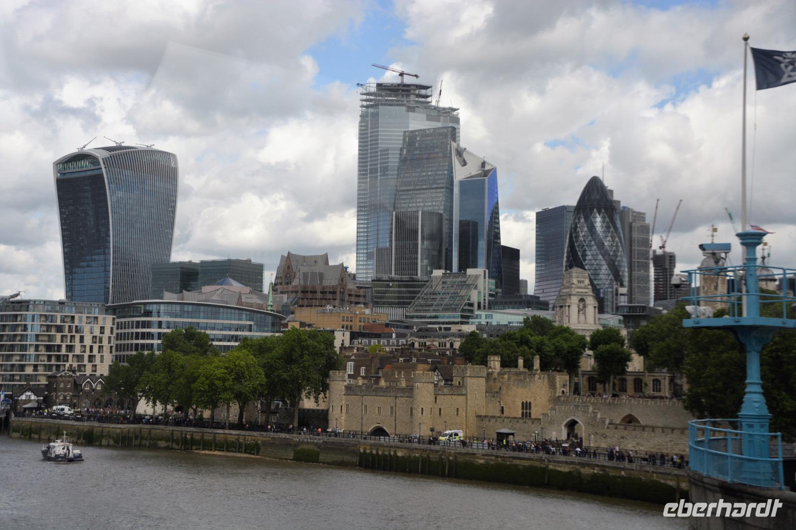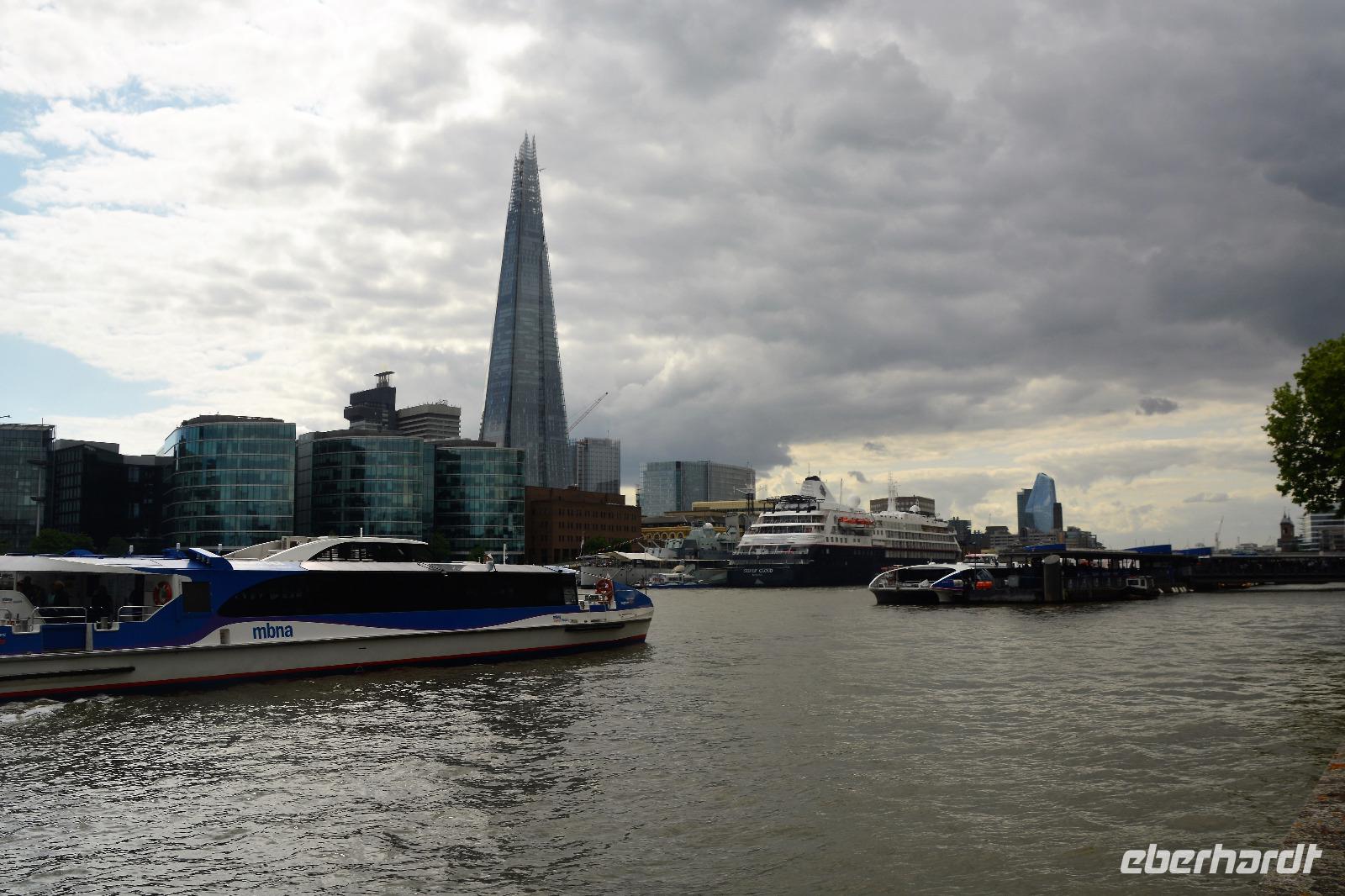 Wir starten heute eine halbe Stunde früher als vorgesehen, damit uns unsere Stadtführerin Theresa trotz Staatsbesuch ihr London zeigen kann. Wir fahren in Richtung Osten. Unser Fahrer Andreas hat heute wirklich eine besonders anstrengende Aufgabe: Er soll uns sicher durch den wirklich chaotischen Londoner Stadtverkehr manövrieren. Dabei stellt sich heraus, dass nicht alle Engländer Gentlemen sind. Es wird gedrängelt und gehupt. Durch das Chaos schlängeln sich Radfahrer verschiedener Couleur: feiner Zwirn, Sportlerkleidung und Studenten, die wohl alle einen wichtigen Termin haben, und wenn es der Job ist. Es ist ein Montag nach den Ferien. Wir fahren durch Kensington, einem feinen Wohnviertel und es gelingt uns tatsächlich noch, einen Blick auf den Buckingham Palace zu werfen. Man hat schon begonnen das Stadtgebiet abzuriegeln. Trotzdem gelingt es uns, einen Großen Teil der Londoner Innenstadt zu durchfahren: Kensington, Picadilly Circus, Trafalgar Square und auch die wichtigen Shoppingmeilen wie Oxford Street. Das berühmte Kaufhaus "Harrods" versteckt im Moment seine Fassade hinter einer Gerüstplane. Bunt ist London und voller Leben. Die "St.Paul's Cathedral" betrachten wir vom 6. Stockwerk eines Einkaufszentrums. Vieles hat sich in den letzten Jahrzehnten gewandelt aber noch ist London eines der wichtigsten Finanz- und Wirtschaftzentren weltweit. Wir überfahren die berühmte Towerbridge und beenden unsere Rundfahrt am Tower von London. Einige von uns möchten sich unbedingt die berühmten Kronjuwelen anschauen. Wir verabschieden uns von Theresa, die uns einen kurzweiligen, lustigen und informativen Vormittag beschert hat und strömem auseinander. Am späten Nachmittag treffen wir uns wieder, um unseren Tag in einem typischen Londoner Pub direkt am Ufer der Themse zu beschließen. Es gibt Fish'n Chips und ein echtes englisches Bier. Anschließend spazieren wir durch diesen schönen Stadtteil in unser Hotel zurück.