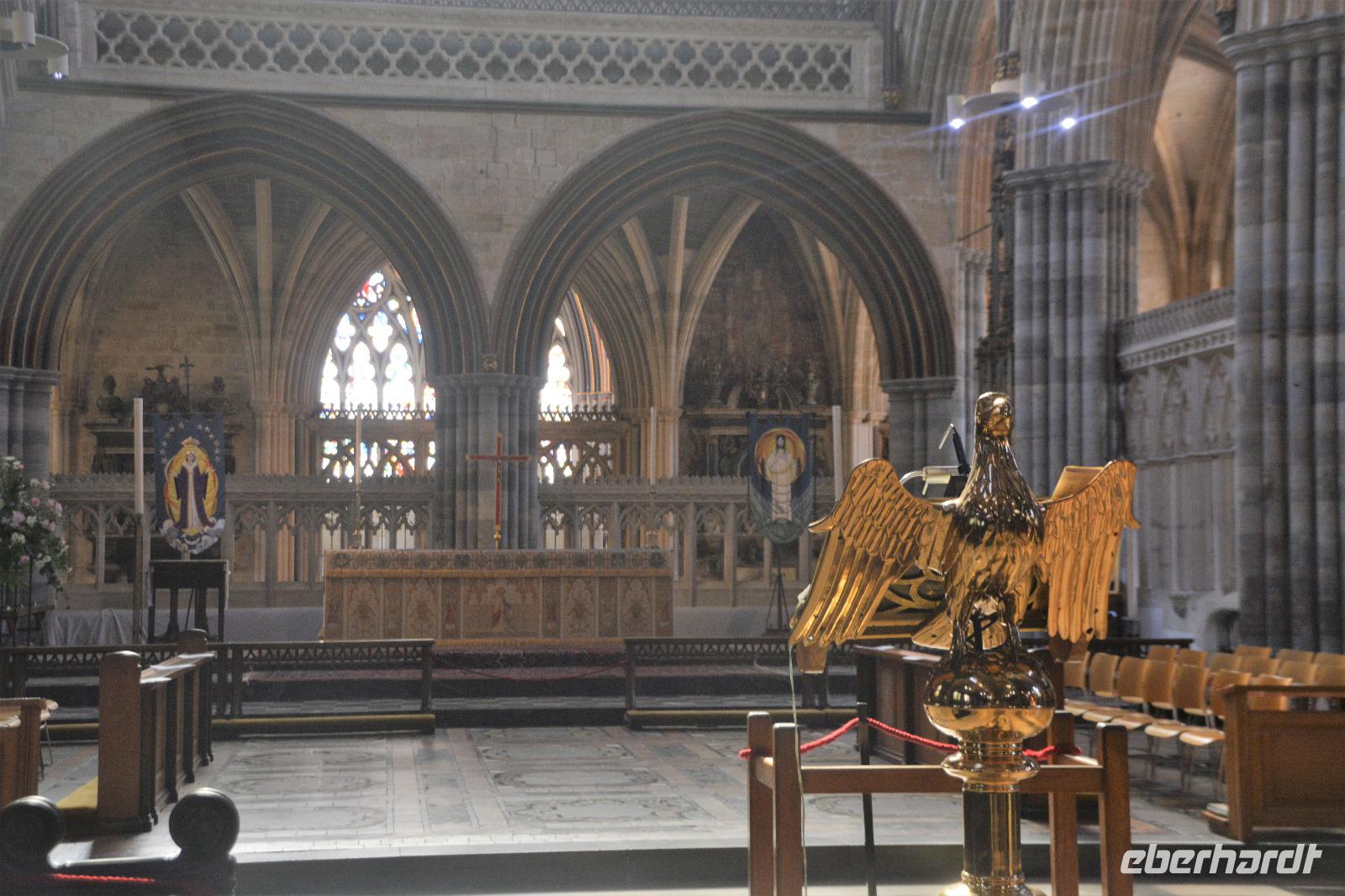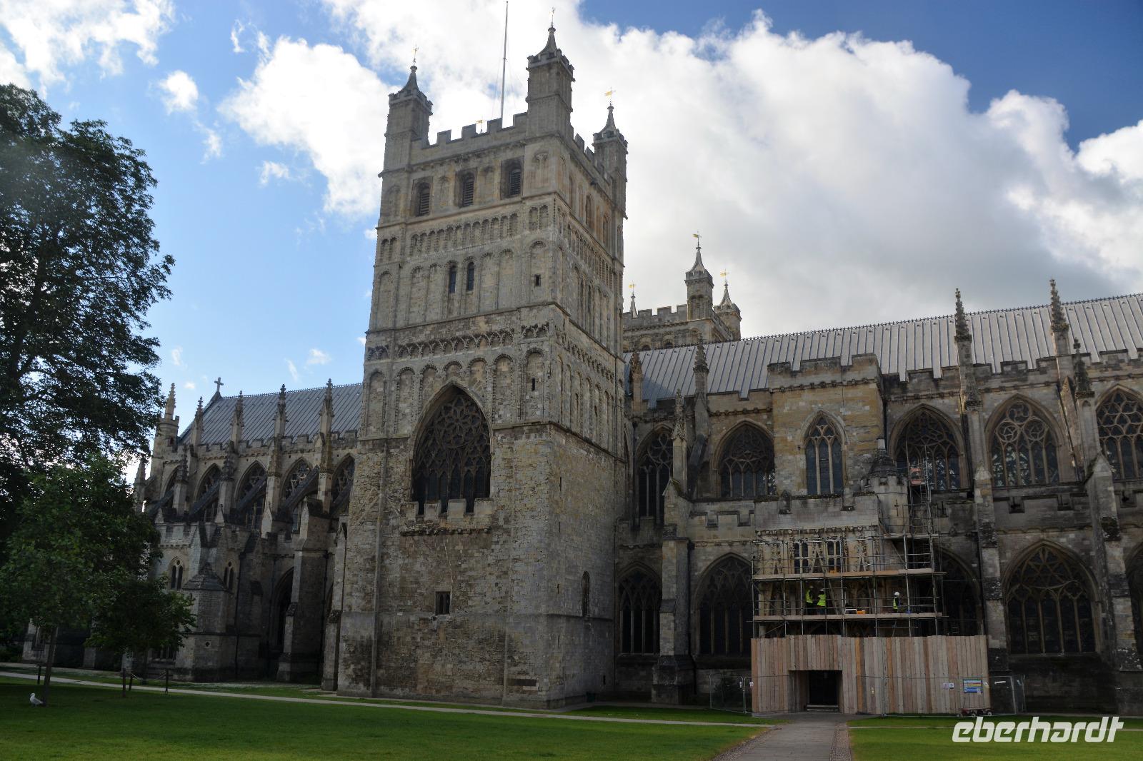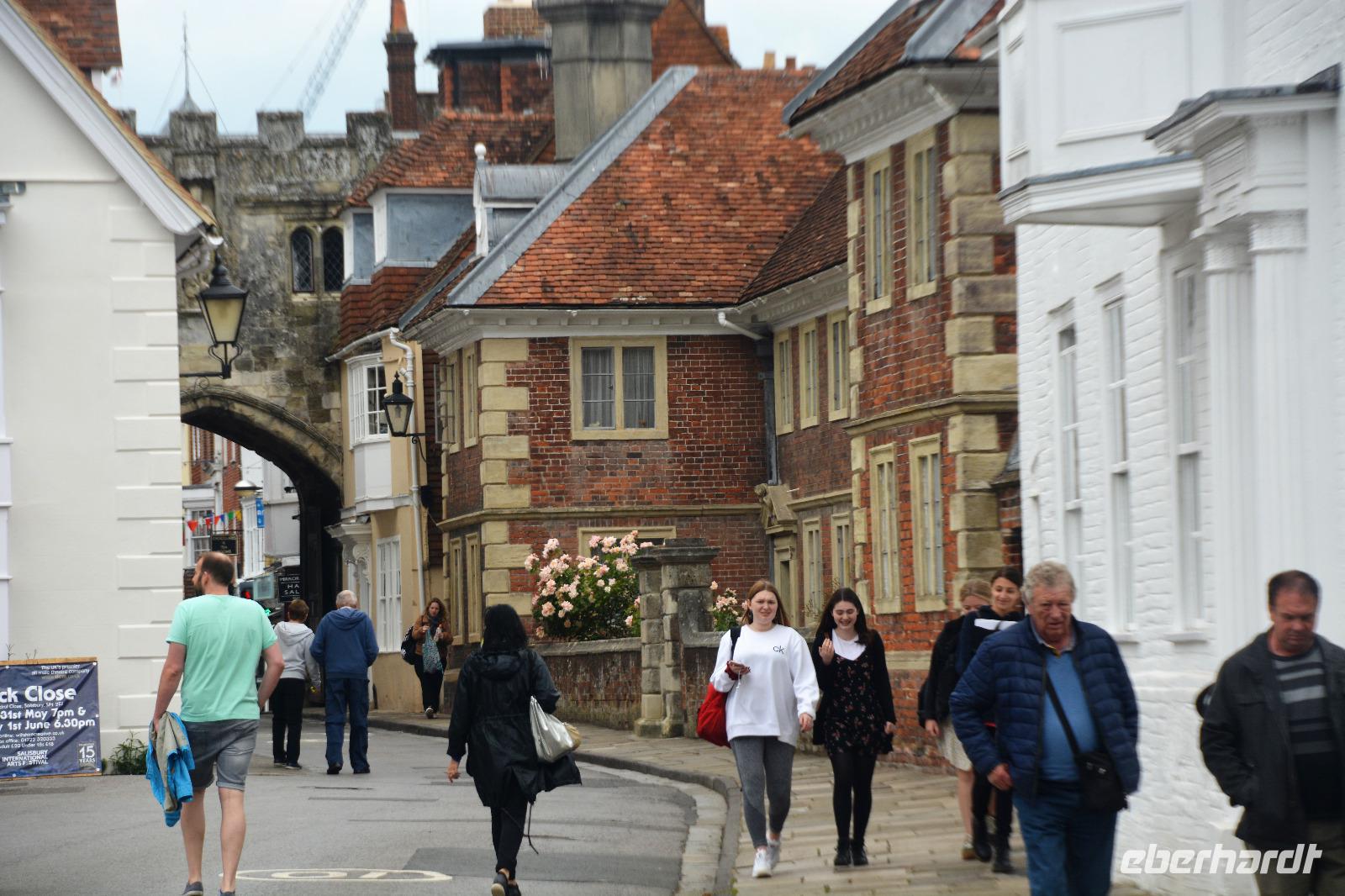 Früh starten wir heute, denn es sind wieder einige Demonstrationen angekündigt und wir dürfen nicht zu spät zu unserem ersten Termin kommen. Wir sind für den Besuch des wohl berühmtesten Steinzeitlichen Steinmonuments angemeldet. Wir fahren durch die Ebene von Salsbury und plötzlich tauchen sie rechts an der Straße auf, die Megalithe von Stonehenge. Vieles über ihre Bedeutung ist noch unklar. Wir fahren vom Besucherzentrum mit einem Shuttlebus zu den Steinen, denn das Wetter ist heute ein wenig feucht und ab und zu regnet es ein wenig. Anschließen können wir uns im Besucherzentrum einige der Fundstücke aus der Umgebung anschauen: menschliche Knochen aus Gräbern und Grabbeigaben, aber auch Werkzeugreste und andere Artefakte. Auch eine Juwelierkünstlerin der heutigen Zeit fand Inspiration durch die Steine. Ihre Werke können zur Zeit betrachtet werden. Nach dieser Reise in die Steinzeit stärken wir uns erst einmal durch unsere Bordküche. Dann geht es weiter in das nahe gelegene Städtchen Salisbury. Wir bummeln durch die Straßen und gehen über den lebhaften Markt der wohl gerade in den letzten Zügen liegt, denn die Reste an Obst und Gemüse werden lautstark ausgerufen. Durch den einsetzenden Regen wird es ein wenig ungemütlich aber wir kommen trotzdem fast trocken zur Kathedrale, die ein Werk der frühen englischen Gotik ist und sehr schnell fertig gestellt wurde. Schlicht ist ihr Stil. In dem Taufbecken aus der neueren Zeit spiegeln sich die bunten Kathedralenfenster. In einem angrenzenden Raum ist eine der frühen Handschriften, die "Magna Carta Libertatum" ausgestellt. Sie bildete im Jahr 1215 den Grundstein des Parlamentarismus, der Freiheit für den Adel und trennte die Krone und Kirche voneinander. Sie ist eine Quelle des englischen Verfassungsrechts. Vorbei am Kreuzgang verlassen wir die Kathedrale und gehen zu unserem Bus zurück. Unser letztes Ziel ist heute unser Hotel im Städtchen Exeter. Heute übernachten wir in einem eher traditionellen englischen Hotel. Freundlich ist der Empfang und wir beziehen unsere Zimmer. Am Abend erwartet uns ein wunderbares Menu und wir beenden unseren ereignisreichen Tag.