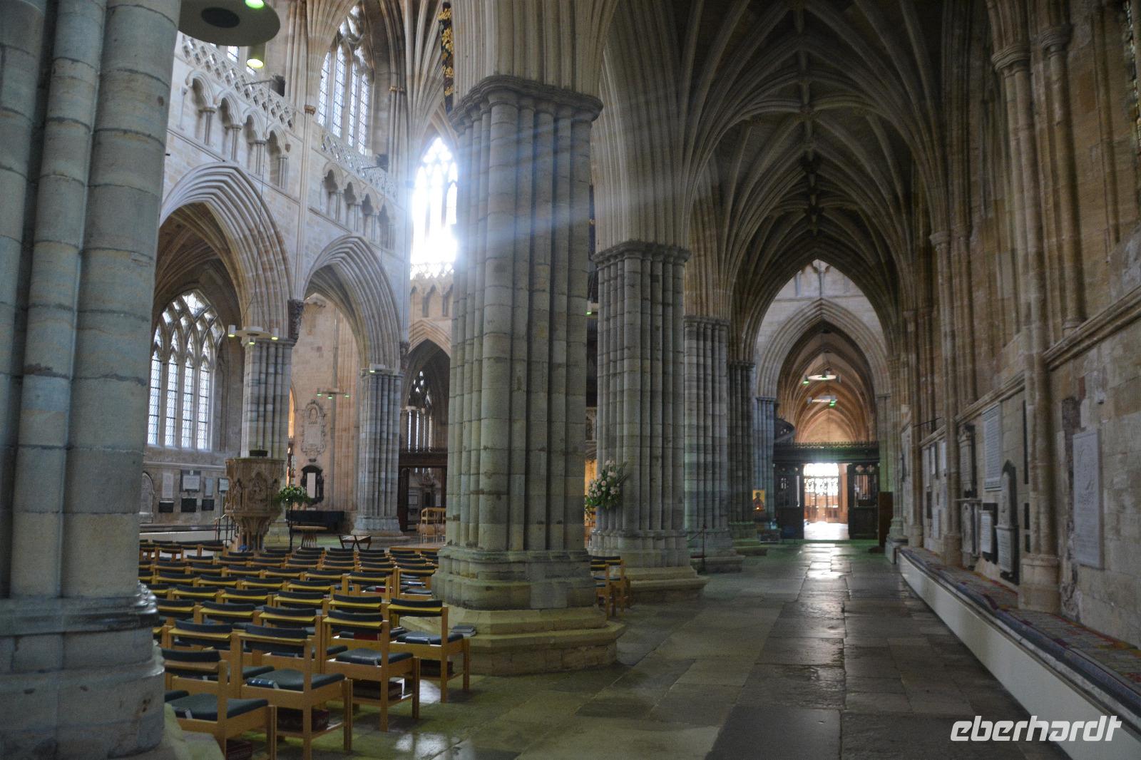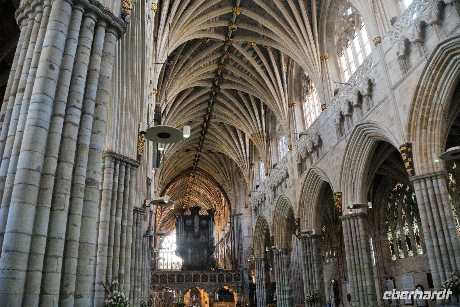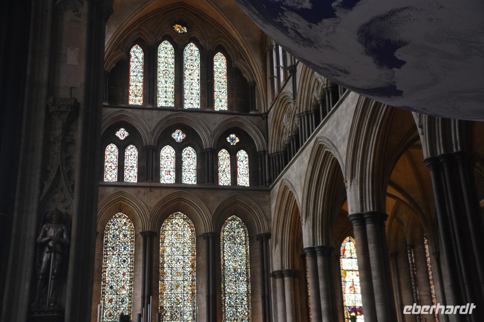 Früh starten wir heute, denn es sind wieder einige Demonstrationen angekündigt und wir dürfen nicht zu spät zu unserem ersten Termin kommen. Wir sind für den Besuch des wohl berühmtesten Steinzeitlichen Steinmonuments angemeldet. Wir fahren durch die Ebene von Salsbury und plötzlich tauchen sie rechts an der Straße auf, die Megalithe von Stonehenge. Vieles über ihre Bedeutung ist noch unklar. Wir fahren vom Besucherzentrum mit einem Shuttlebus zu den Steinen, denn das Wetter ist heute ein wenig feucht und ab und zu regnet es ein wenig. Anschließen können wir uns im Besucherzentrum einige der Fundstücke aus der Umgebung anschauen: menschliche Knochen aus Gräbern und Grabbeigaben, aber auch Werkzeugreste und andere Artefakte. Auch eine Juwelierkünstlerin der heutigen Zeit fand Inspiration durch die Steine. Ihre Werke können zur Zeit betrachtet werden. Nach dieser Reise in die Steinzeit stärken wir uns erst einmal durch unsere Bordküche. Dann geht es weiter in das nahe gelegene Städtchen Salisbury. Wir bummeln durch die Straßen und gehen über den lebhaften Markt der wohl gerade in den letzten Zügen liegt, denn die Reste an Obst und Gemüse werden lautstark ausgerufen. Durch den einsetzenden Regen wird es ein wenig ungemütlich aber wir kommen trotzdem fast trocken zur Kathedrale, die ein Werk der frühen englischen Gotik ist und sehr schnell fertig gestellt wurde. Schlicht ist ihr Stil. In dem Taufbecken aus der neueren Zeit spiegeln sich die bunten Kathedralenfenster. In einem angrenzenden Raum ist eine der frühen Handschriften, die "Magna Carta Libertatum" ausgestellt. Sie bildete im Jahr 1215 den Grundstein des Parlamentarismus, der Freiheit für den Adel und trennte die Krone und Kirche voneinander. Sie ist eine Quelle des englischen Verfassungsrechts. Vorbei am Kreuzgang verlassen wir die Kathedrale und gehen zu unserem Bus zurück. Unser letztes Ziel ist heute unser Hotel im Städtchen Exeter. Heute übernachten wir in einem eher traditionellen englischen Hotel. Freundlich ist der Empfang und wir beziehen unsere Zimmer. Am Abend erwartet uns ein wunderbares Menu und wir beenden unseren ereignisreichen Tag.