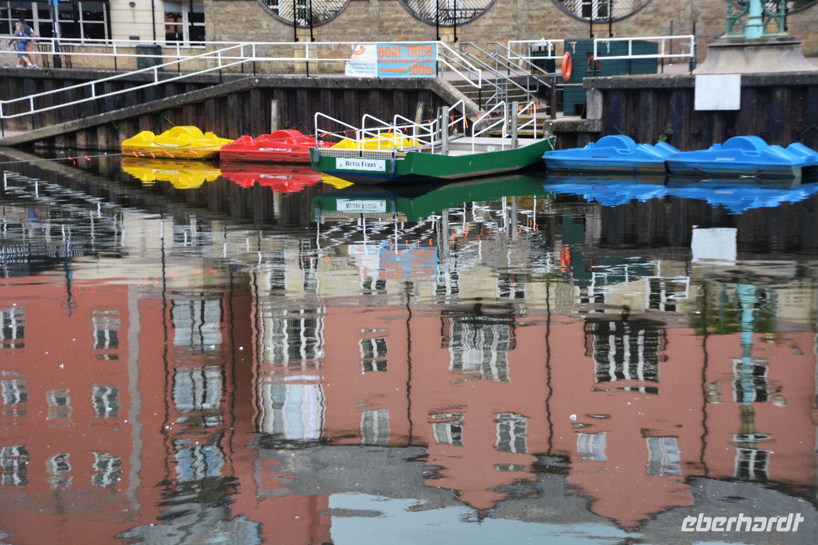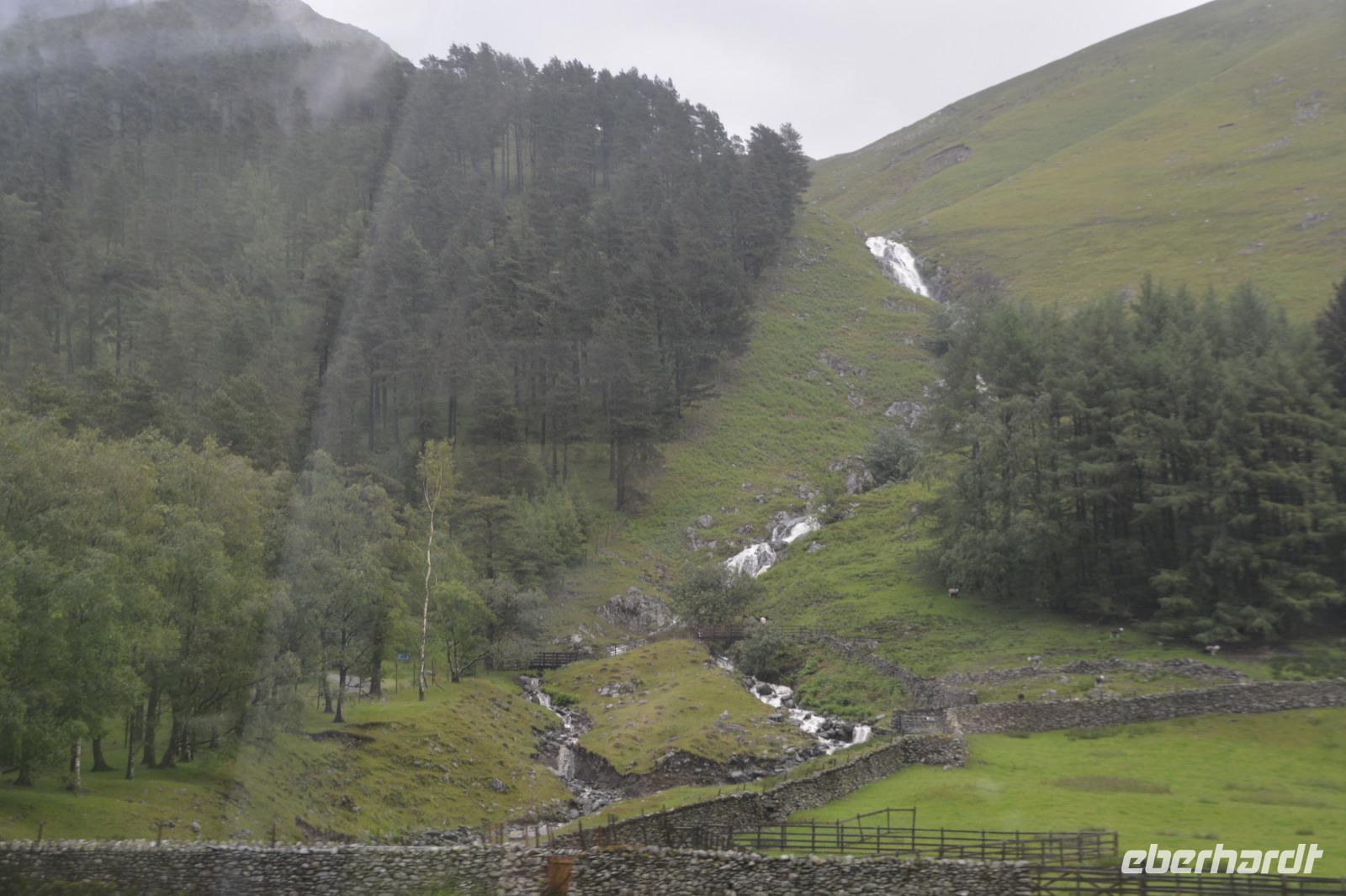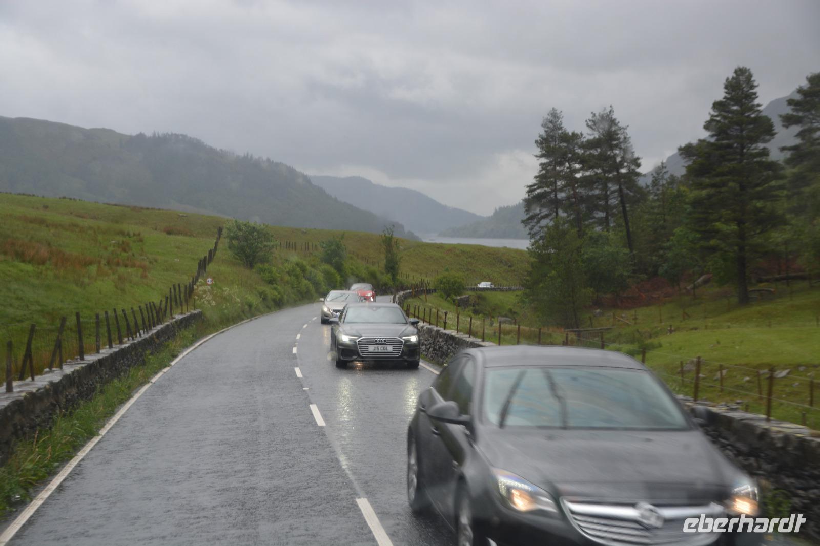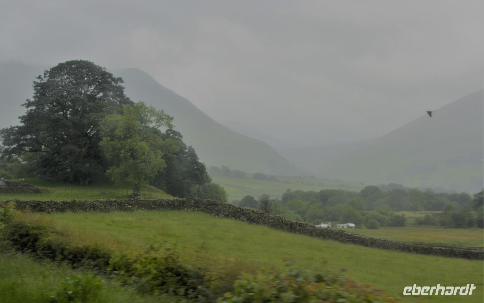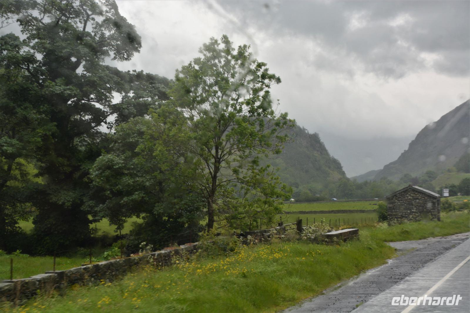 Heute morgen schauen wir aus dem Fenster und der Himmel ist grau. Wir haben heute eine etwas länger Fahrtzeit vor uns und verlassen unser Hotel nach einem ordentlichen Frühstück um nach Mittelwales zu fahren. In dieser Region hat man früher intensiv Schiefer abgebaut und hier in der Region zum Decken der Dächer verwendet. Ebenfalls hat man diesen vielseitig verwendbaren Stein exportiert. Im Hafen von Porthmadog wurde der Stein in Schiffe verladen nachdem man ihn mit einer Bahn von den Minen hierher transportiert hatte. Die Zuglinie, die wir heute befahren werden, wurde einst für den Transport von Schiefer von den Minen bis zum Hafen erbaut. Heute fährt dieser nostalgische Dampfzug Reisende die einen Teil des Snodownia Nationalsparks von der Bahn aus erleben möchten. Wir fahren aber erst einmal eine Weile und kommen durch den Ort Machynlleth, wo der walisische Volksheld Owein Glyndewr ein Parlament für das dann freie Wales ins Lebens rief. Es regnet ziemlich heftig und wir fahren durch bis zu unserem Bahnhof in Porthmadog wo wir erst einmal einen Imbiss einnehmen. Dann geht es los. Das Wetter könnte besser sein aber was wäre Wales ohne ordentliches Regenwetter? Nun, auf alle Fälle nicht so grün. Wir rauschen durch Nebel verhangene Berge und grüne Wiesen, auf denen sich die Schafe nicht beirren lassen. So geht die Fahrt schnell vorbei und bei immer noch strömenden Regen bewegen wir uns anschließend in Richtung Bus der von unserem Fahrer Igor inzwischen nach Blaenau Ffestiniog gebracht wurde. Von hier fahren wir durch Wales, vorbei am Städtchen Conwy, welches im Nebel versinkt, in Richtung Hotel. Auf dem Weg ist viel Verkehr, denn es ist Freitag und alles bereitet sich auf das Wochenende vor. Auch ist das Industriegebiet zwischen Liverpool und Manchester nicht gerade das verkehrsarmste des Landes. Diese beiden ehemaligen Industriestädte haben in den letzten Jahren einen kolossalen Wandel erfahren. Beide Ort sind bekannt durch die erfolgreichen Fußballklubs, die feinen Stoffe, welche vorwiegend aus Manchester kommen (Manchester-Tweed) und natürlich was wäre Liverpool ohne die Beatles. Hier kamen sie her, aus der Wiege der Beat-Kultur, die 4 "Pilzköpfe" die eine Musikrevolution unterstützten, wenn nicht gar anfachten.Ein wenig müssen wir uns durch stockenden Verkehr kämpfen dann sind wir in unserem Hotel, einem ehemaligen viktorianischen Landsitz, heute ein Radisson-Hotel. Typisch englische Zimmer mit Hosenbügler, Tee- und Kaffeebereiter und Handtuchheizung erwarten uns. Wir nehmen unser Abendessen stilgerecht in einem der zahlreichen Räume ein. Schauen wir ob uns das Wetter morgen freundlicher gesonnen ist, denn wir wollen auf dem Lake Windermere eine Bootsfahrt machen.