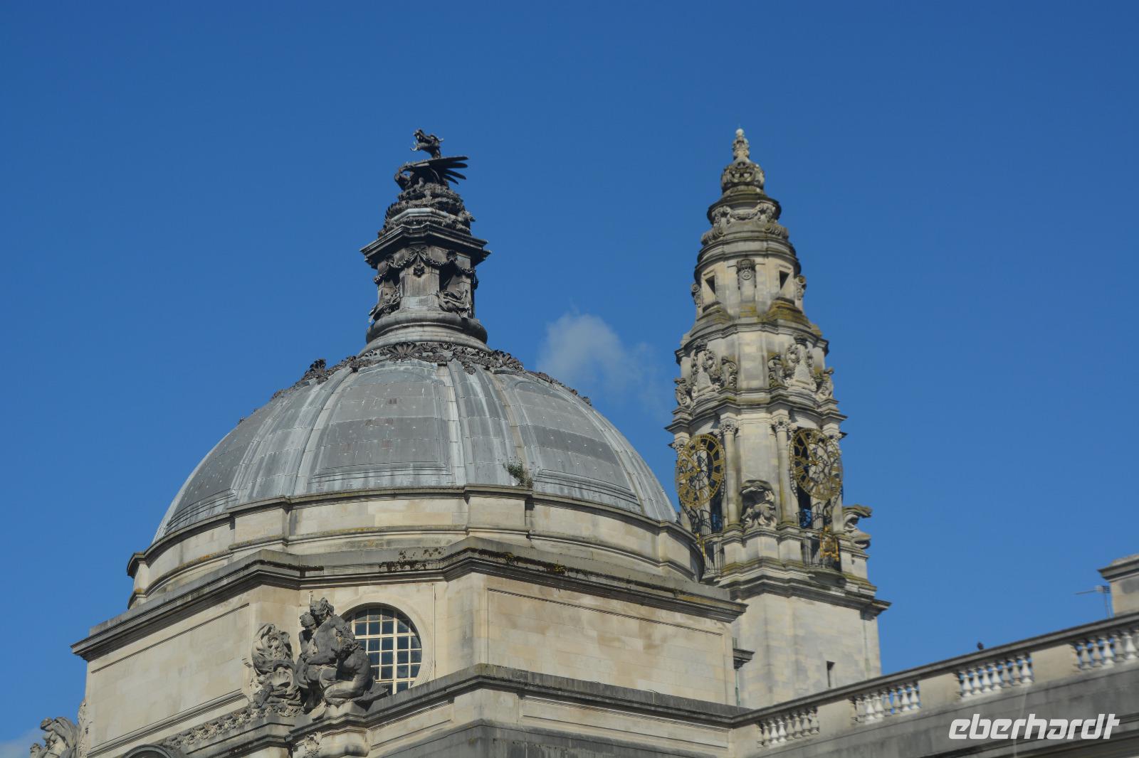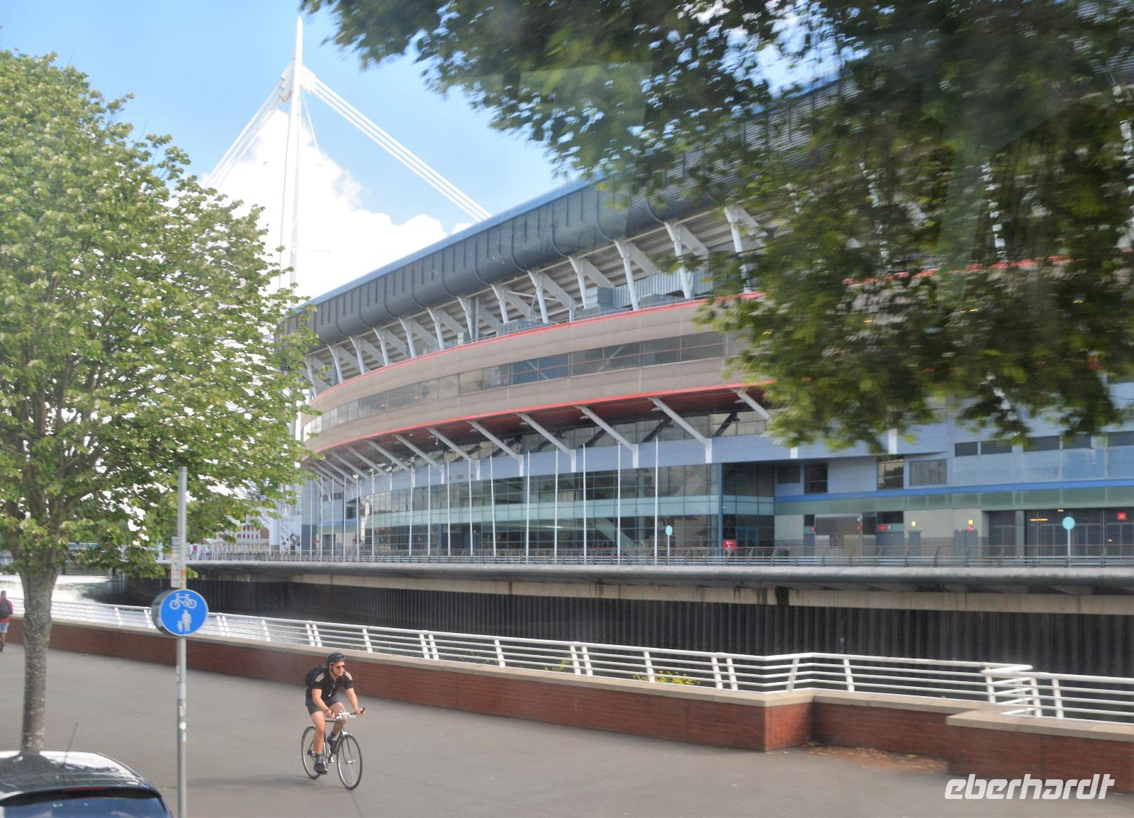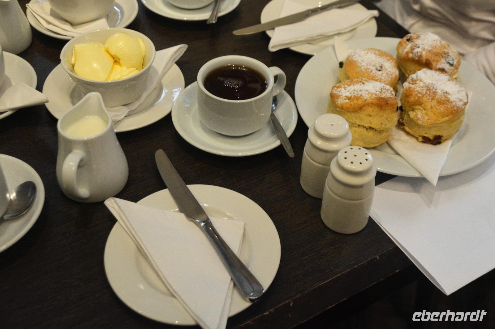 Früh starten wir auch heute, denn wir machen einen kleinen Stadtbummel durch Cardiff. Wir winken unseren Bus auf die Fahrbahn und lassen uns bis in das Citycenter bringen. Langsam spazieren wir in Richtung Kathedrale, die ein Werk der frühen Gotik in England ist. Wir können dieses Gebäude aus der gotischen Frühzeit sogar ohne Eintritt besuchen, da noch nicht 09.00 Uhr ist. Schnell huschen wir hinein und betreten eine sehr beachtliche Kathedrale, die mit wunderschönen imposanten Gewölben, bungen Glasfenstern und eine mächtige Orgel beeindruckt. Weiter bummeln wir durch den Ort und bewundern die Mittelalterlichen Bauten. Im westlichen Stadtviertel gehen wir dann entlang der alten Stadtmauer in den westlichen Bezirk. Hier vor der Stadtmauern war früher sumpfiges Gebiet auf dem sich zahlreiche Mühlen befanden. Wir kommen an den Flußstrand und nachdem wir eine Fussgänger-Brücke passiert haben sehen wir auch schon von Weitem Andreas der auf uns wartet. Wir starten dann in Richtung Knighshayes Court, ein großes Anwesen mit geplanten Gartenbeeten und Bäumen, typisch englisch eben. Die Anfahrt stellt sich aber ein wenig schwieriger raus als gedacht und geplant. Wir sollen nicht nach Naviation fahren sondern den Schildern folgen, nur gibt es an den entscheidenden Stellen keine Schilder. Wir fahren durch die Umgebung und die Straßen werden immer enger. Unser Bus übersteht die Fahrt auch nicht unbeschadet. Da hilft nur umkehren zum Ausgangspunkt im Ort und noch einmal Schilder suchen, Wir fragen an einer Tankstelle und ein junger Mann bedeutet, dass es nach Knighthayes Court keine Schilder gäbe aber er könne uns den Weg aufschreiben, da er dort immer Cricket spielen würde. Nach diesem Plan kommen wir hin, aber nur fast, denn der Abzweig ist tatsächlich wieder nicht markiert oder ausgeschildert. Wir fragen noch einmal einge junge Frau und sie deutet auf denWeg. An der Rezeption besteigen wir ein shuttle Fahrzeug welches uns zu dem Viktorianischen Anwesen bringt. Hier können wir durch den angelegten Gartenpark spazieren. Weiter geht es dann zu unserem Nachmittagstee. Auch hier stellt sich die Anfahrt als kompliziert heraus. Das Swann-Hotel in Wellt hat schon sehr illustre Gäste wie Winston Churchill beherbergt.Wir genießen die noch warmen Scones zu denen clotted-cream, ein sehr dicker Rahm, und Erdbeermarmelade gereicht werden. Der Tee schmeckt auch sehr gut. Danach laufen wir zu Fuß zum Busparkplatz, wo unser Bus mal wieder auf uns wartet. Die nächste Etappe bedeutet für unseren Fahrer Andreas die letzte Stunde fahrt für diese Reise, denn seine Abkösung Igor erwartet uns schon an der berühmten Severn-Bridge. Diese und auch die 2. Severn-Bridge, eine gewaltige Hängebrücke, gehören zu dem sog. "Severn-Crossing".Wir fahren über den Severn und erreichen bald unser nächstes Hotel schon in Wales. Beim Abendessen stellen wir fest, dass die Portionen hier um einiges größer sind als in England. Nach diesem üppigen Abendessen fallen wir alle müde ins Bett.