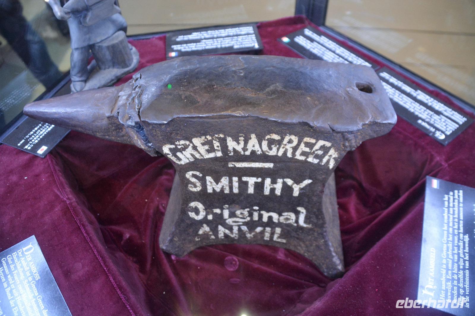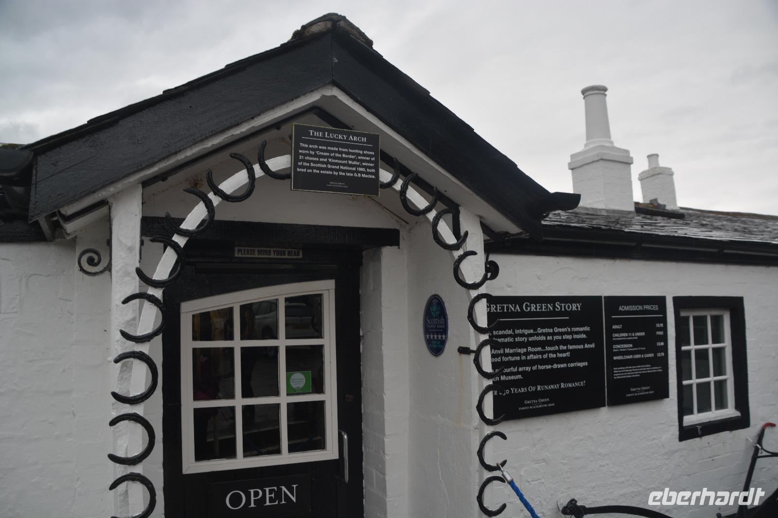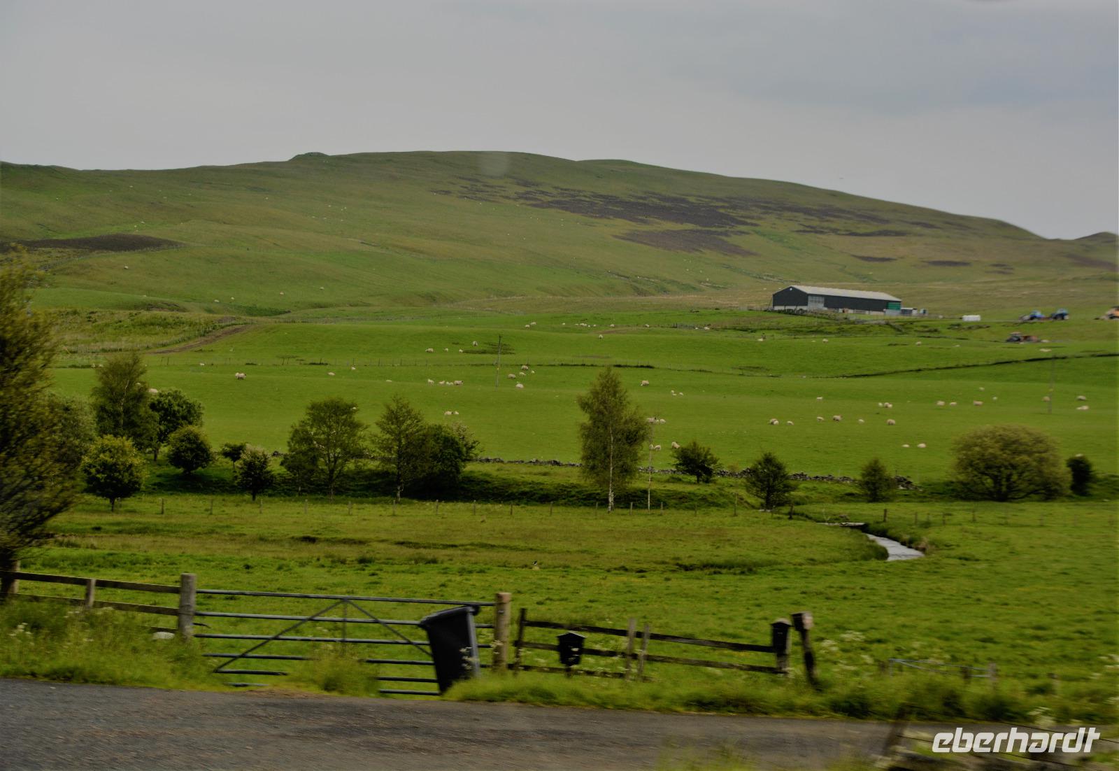 Heute sieht der Himmel auch nicht vielversprechender aus als gestern. Trotzdem lassen wir und unsere Laune nicht verderben, denn wir haben alle die richtige Kleidung eingepackt. Wir fahren durch die zauberhafte Landschaft des Lake District und kommen sehr rechtzeitig in Bowness an. Wir fahren bei Regen los und die Landschaft sieht ein wenig wie in den vielen englischen Romanen aus, die oft etwas Mystisches und Unheimliches in ihrer Handlung zum Thema machen. Wir starten pünktlich und glauben nach 15 Minuten, wir wären schon am Zielort und alle müssen aussteigen. Doch nachdem wir an Land gegangen sind entpuppt sich Ambleside als ein anderer Ort und wir wollen schnell wieder an Bord, doch unser Schiff ist weg. Auf Nachfrage wird uns gesagt, dass das Boot in einer Minute kommen und uns nach Ambleside bringen wird. Das Schiff, welches kommt ist noch kleiner als unser Schiff, das uns hierher gebracht hat. Aber da alle von uns schwimmen können (es wurde extra nachgefragt) macht uns das nichts aus. In dieser kleinen Nussschale fahren wir unserem Zielhafen entgegen. Unser Fahrer wartet dann schon in Ambleside und führt uns zum Bus. Es beginnt immer mal wieder heftig zu regnen. Aber wir sind im trockenen Bus und machen jetzt eine kleine Panoramafahrt durch den Lake-Distrikt, der ein Produkt der letzten Eiszeit vor ca. 15000 Jahren ist. Ein Nationalpark der besonders geschützt wird wie alle Nationalparks. Wiesen, Wasserfälle und Schafe begleiten unseren Weg. Manche dieser kuscheligen Tiere sind bunt und in manchmal schrillen Farben markiert. Jeder Bauer soll doch seine Schafe wiederfinden. Frühzeitig kommen wir in Gretna Green an und wir bekommen tatsächlich eine vorgezogene Heiratszeremonie. Unser Brautpaar aus der Gruppe ist glücklich und der Brautvater (auch jemand aus der Gruppe) freut sich über seinen neuen Schwiegersohn. Viele echte Hochzeiten gibt es heutzutage in Gretna Green und heute gab es schon 5. Mittlerweile gibt es 2 Räume dafür, da an manchen Feiertagen parallel getraut wird. Ein nettes kleines Museum zeigt Dinge die in Verbindung mit diesen Hochzeiten stehen. Ein Hochzeitsdress für Männer, ein schottischer Kilt (Schottenrock), ist auch dabei. Im Bus essen wir noch die Hochzeitskekse die uns Eberhardt-Reisen spendiert und ein Kaffee schmeckt auch dazu. Dann aber fahren wir zu unserem Hotel in einem Stadtteil bei Edinburgh und einige gehen noch ein wenig am Meer spazieren das in der Nähe vom Hotel liegt. Das Abendessen lassen wir uns hinterher schmecken. Am Abend lugt sogar die Sonne eine wenig heraus.