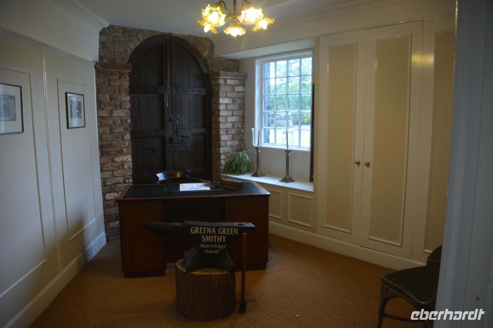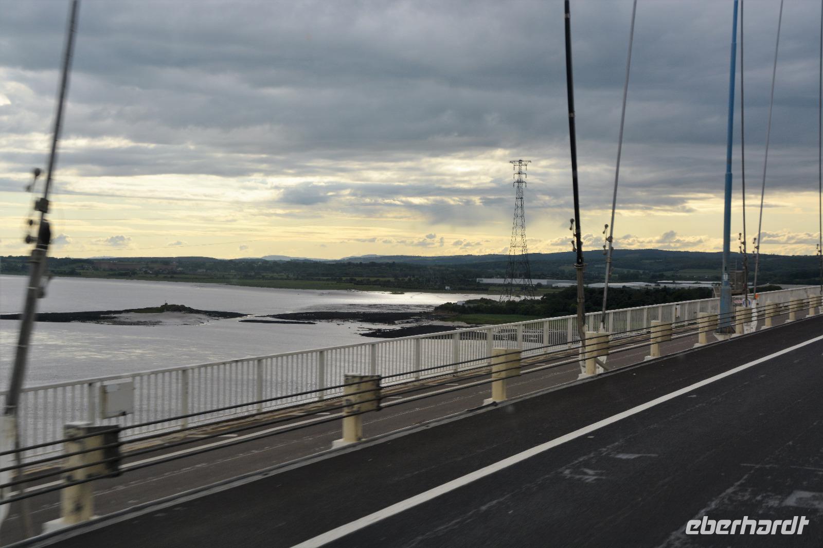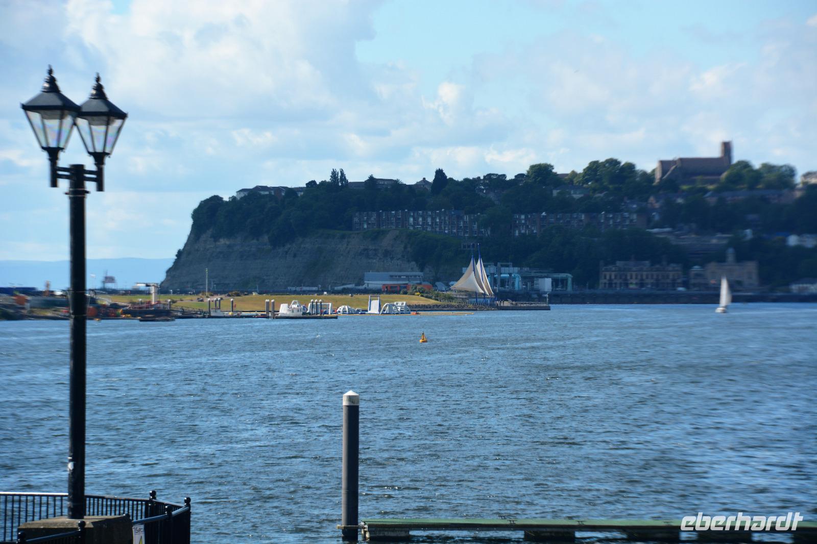 Heute sieht der Himmel auch nicht vielversprechender aus als gestern. Trotzdem lassen wir und unsere Laune nicht verderben, denn wir haben alle die richtige Kleidung eingepackt. Wir fahren durch die zauberhafte Landschaft des Lake District und kommen sehr rechtzeitig in Bowness an. Wir fahren bei Regen los und die Landschaft sieht ein wenig wie in den vielen englischen Romanen aus, die oft etwas Mystisches und Unheimliches in ihrer Handlung zum Thema machen. Wir starten pünktlich und glauben nach 15 Minuten, wir wären schon am Zielort und alle müssen aussteigen. Doch nachdem wir an Land gegangen sind entpuppt sich Ambleside als ein anderer Ort und wir wollen schnell wieder an Bord, doch unser Schiff ist weg. Auf Nachfrage wird uns gesagt, dass das Boot in einer Minute kommen und uns nach Ambleside bringen wird. Das Schiff, welches kommt ist noch kleiner als unser Schiff, das uns hierher gebracht hat. Aber da alle von uns schwimmen können (es wurde extra nachgefragt) macht uns das nichts aus. In dieser kleinen Nussschale fahren wir unserem Zielhafen entgegen. Unser Fahrer wartet dann schon in Ambleside und führt uns zum Bus. Es beginnt immer mal wieder heftig zu regnen. Aber wir sind im trockenen Bus und machen jetzt eine kleine Panoramafahrt durch den Lake-Distrikt, der ein Produkt der letzten Eiszeit vor ca. 15000 Jahren ist. Ein Nationalpark der besonders geschützt wird wie alle Nationalparks. Wiesen, Wasserfälle und Schafe begleiten unseren Weg. Manche dieser kuscheligen Tiere sind bunt und in manchmal schrillen Farben markiert. Jeder Bauer soll doch seine Schafe wiederfinden. Frühzeitig kommen wir in Gretna Green an und wir bekommen tatsächlich eine vorgezogene Heiratszeremonie. Unser Brautpaar aus der Gruppe ist glücklich und der Brautvater (auch jemand aus der Gruppe) freut sich über seinen neuen Schwiegersohn. Viele echte Hochzeiten gibt es heutzutage in Gretna Green und heute gab es schon 5. Mittlerweile gibt es 2 Räume dafür, da an manchen Feiertagen parallel getraut wird. Ein nettes kleines Museum zeigt Dinge die in Verbindung mit diesen Hochzeiten stehen. Ein Hochzeitsdress für Männer, ein schottischer Kilt (Schottenrock), ist auch dabei. Im Bus essen wir noch die Hochzeitskekse die uns Eberhardt-Reisen spendiert und ein Kaffee schmeckt auch dazu. Dann aber fahren wir zu unserem Hotel in einem Stadtteil bei Edinburgh und einige gehen noch ein wenig am Meer spazieren das in der Nähe vom Hotel liegt. Das Abendessen lassen wir uns hinterher schmecken. Am Abend lugt sogar die Sonne eine wenig heraus.