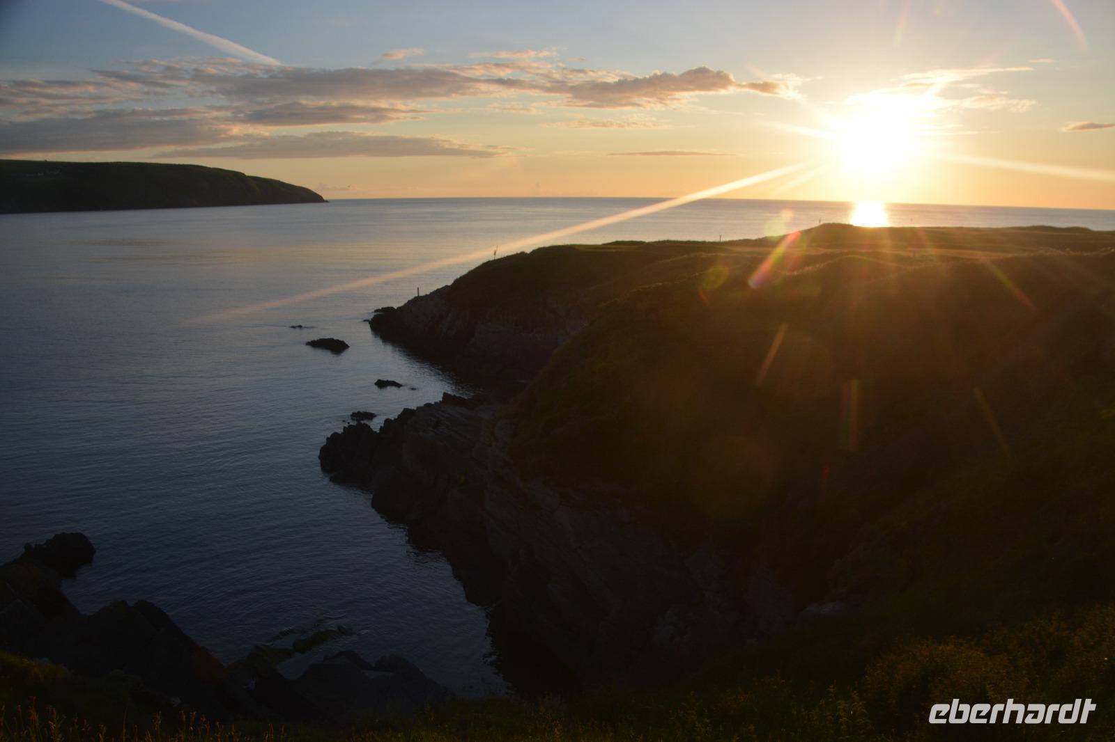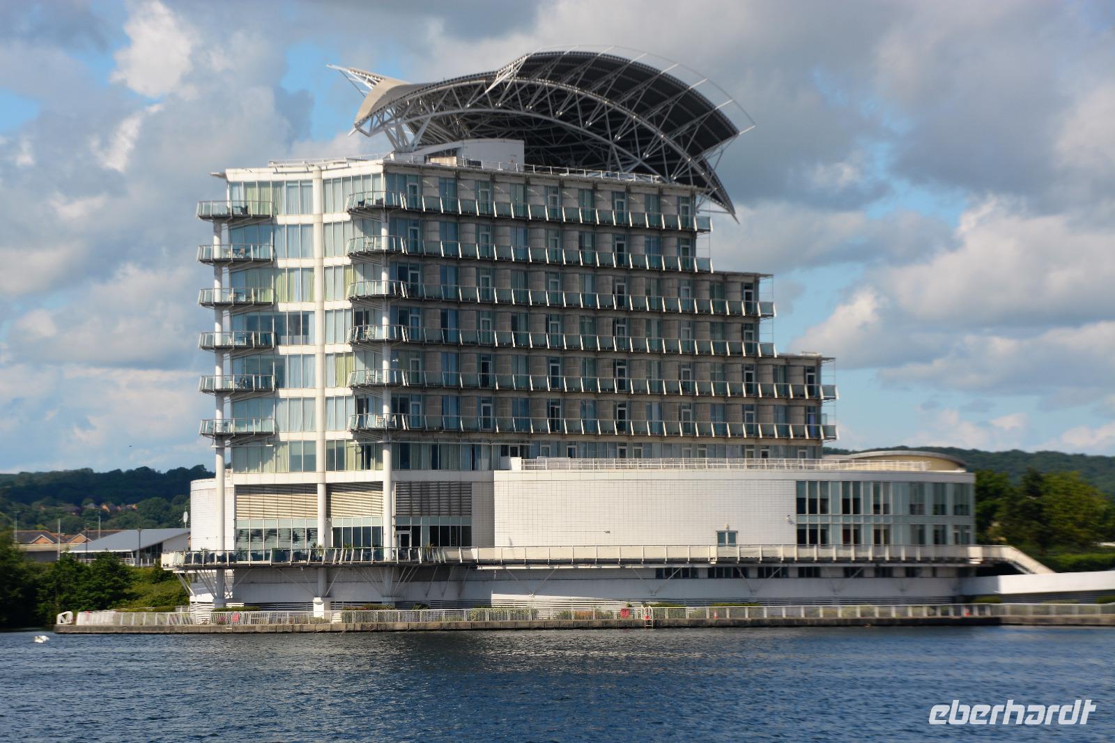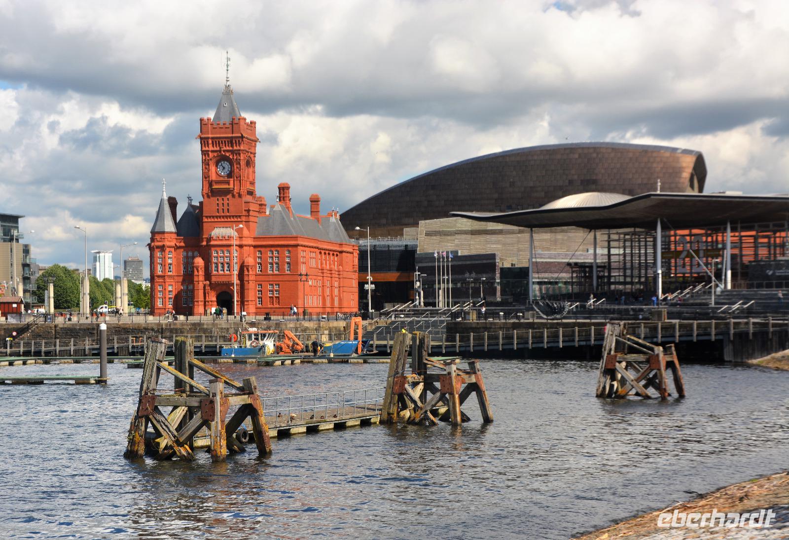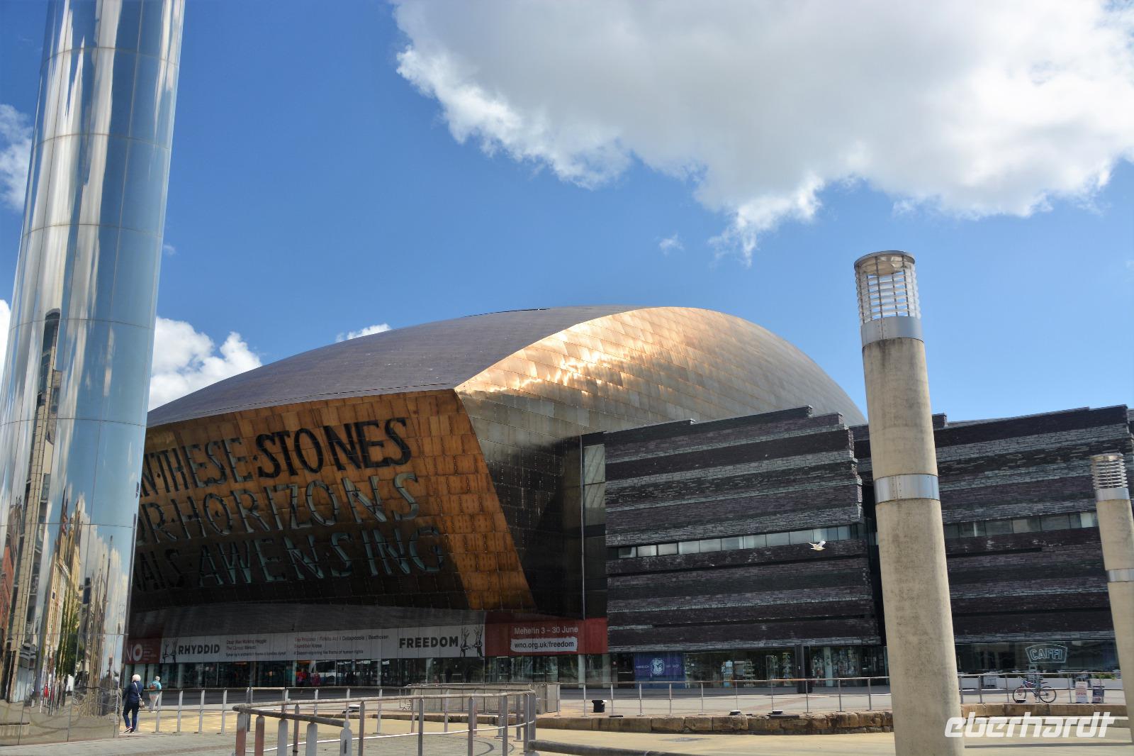 Heute verspricht ein schöner Tag zu werden und wir verlassen optimistisch unser Hotel. Wir fahren nicht weit Cardiff, der Hauptstadt von Wales. Am Nationalmuseum treffen wir unseren Stadtführer Tony der uns sein Cardif zeigen möchte. Wir spazieren erst einmal ein wenig in dieser Gegen und erfahren etwas über die Waliser, ihre Politik und ihre Kultur. Cardiffs Verwaltungskomplex gruppert sich um den Grünanlagen des Alexandra Gartens. Wir fahren entlang des Schlosses und weiter durch die Innenstadt vorbei am Millenium Stadium. Weiter geht es in Richtung Cardiff Bay wo wir ebenfalls aussteigen. Wir besichtigen den neuen Stadtteil mit dem Millenium Center, einer Spielstätte für Opern, Musicals und Konzerte. Es hat eine interessante Architektur. Eine Skulptur erinnert an die Opfer des Meeres. Die norwegische Kirche wurde seinerzeit für Seeleute gebaut, die hier am Hafen ihr Vergnügen suchten. Im letzten Jahrhundert war hier das Rotlichtviertel und viele Damen warteten auf Kundschaft. Die Skulptur welche an den Antarktisforscher Captain Scott erinnern soll ist schon ein wenig restaurierungsbedürftig. Nun aber wird es Zeit weiterzufahren, wartet doch der wunderschöne Botanische Garten von Wales auf uns. Es wird immer wärmer und wir freuen uns über dieses Sonnenwetter. Gerade richtig um in die Botanik zu gehen. Wir lassen unseren Bus am Parkplatz und jeder kann individuell seinen Interessen nachgehen. Es gibt ein riesiges Gewächshaus für Pflanzen aus dem Mittelmeerraum und ähnlichen Klimaten, wie z.B. Südafrika, ein Schmetterlingshaus mit frei umherfliegenden Schmetterlinge, einen Kräutergarten und viele andere bunte blühende Überraschungen. Auch erfährt man etwas über die verschiedenen Gesteinsarten von Wales und die Auswirkungen auf die Zusammensetzung der Erdschichten. Danach nehmen wir einen kleinen Mittagsimbiss am Bus und fahren weiter in die niedliche Stadt Tenby. Diese Stadt profitierte von ihrem sicheren Hafen und wurde durch eine Stadtmauer von den Normannen befestigt. Auch gibt es einen Sandstrand und so werden viele Reisende angezogen. Wir bummeln individuell durch dieses hübsche Städtchen. Vom Castle hat man einen schönen Blick über die Bucht und sogar Cornwall ist von Weitem zu sehen. Nach diesem schönen Spaziergang gönnen sich einige noch ein Eis, welches hier besonders gut schmeckt. Nach diesem schönen Aufenthalt blicken wir alle erwartungsvoll unserem Hotel entgegen. Erst einmal aber müssen wir noch eine gute Stunde durch die walisische Landschaft fahren. Das Hotel liegt schön über einer Bucht mit einer wunderbaren Aussicht. Das Abendessen schmeckt uns und danach lässt der Sonnenuntergang die Landschaft noch einmal in einem ganz besonderem Licht erscheinen. Ein schöner Tag in Wales geht dem Ende zu.