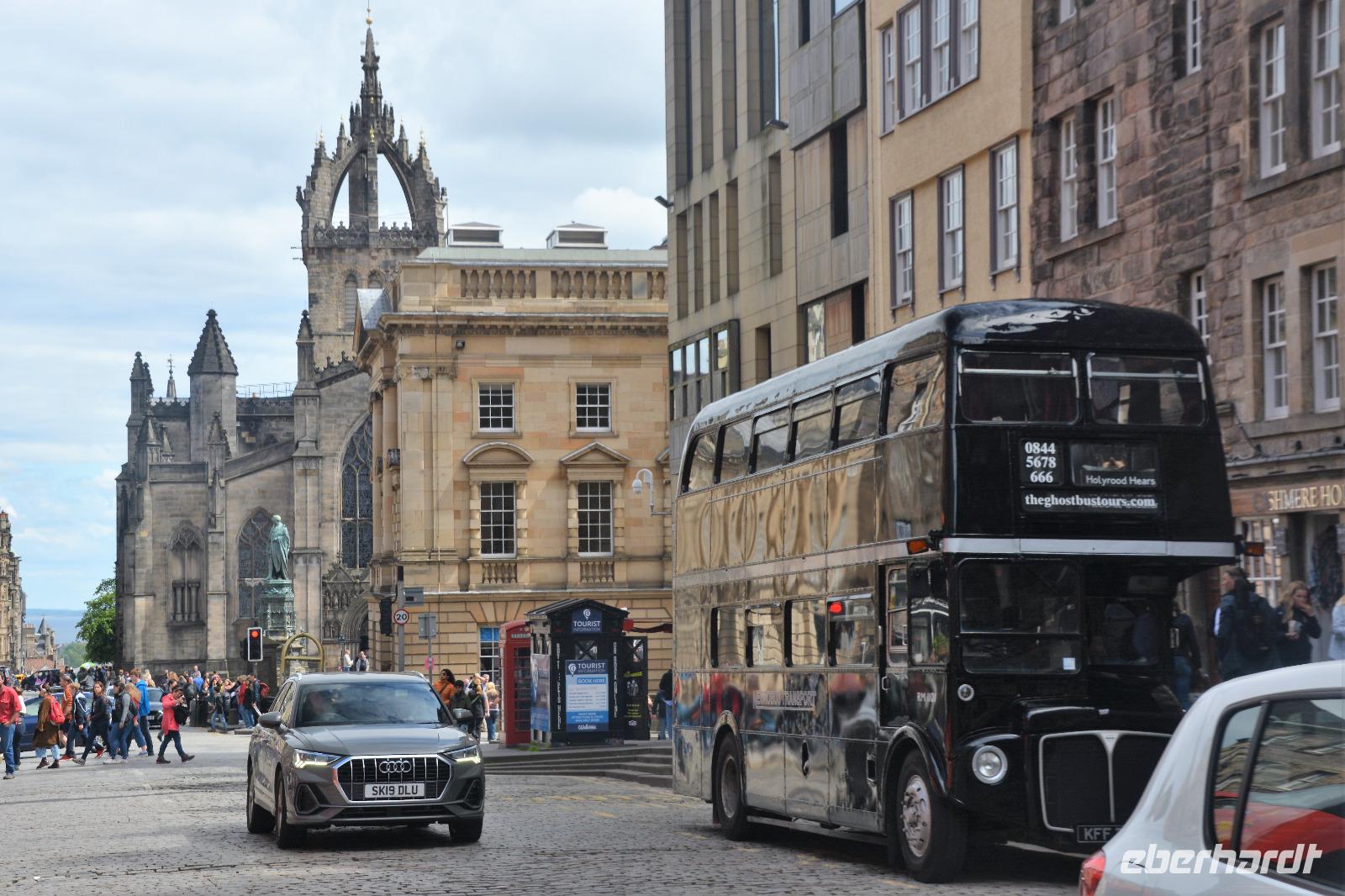 Die Nacht war für uns heute etwas unruhig, denn es gab 2 mal Feueralarm der wohl nach Aussage des Hotels von einen Föhn ausgelöst wurde. Nun von uns war es niemand und viele haben beim zweiten Mal erst einmal abgewartet. Das Frühstück schmeckt trotzdem und so wind wir gestärkt für das was kommt.Der heutige Tag steht ganz im Zeichen von Edinburgh, die heimliche Hauptstadt von Schottland (die Richtige ist Glasgow). Wir treffen unsere Stadtführerin in der Stadt. Eine zugereiste junge Österreicherin mit wallendem roten Haar. Lustig gekleidete Menschen durchqueren die Stadt und wir fragen nach dem Anlass. Unsere Führerin weiss Bescheid: Es sind die sog. "Moonwalker" die in der Nacht etliche Kilometer zurückgelegt haben. Es handelt sich um eine Wohltätigkeitsveranstaltung. Die sog. "Walker" werden gesponsert und der Erlös kommt einer Organisation zugute. Wir fahren vorbei an einem College in dem nur diejenigen hingehen können die es sich leisten können, da es nicht ganz günstig ist. Tony Blair und Ian Flemming haben es besucht, wogegen James Bond Darsteller Sean Connery als Milchmann dort gearbeitet hat. Nun er hat es ja doch noch zu etwas gebracht. Wir fahren zum Firth of Forth, zum Hafen. Dort sehen wir einen wunderbaren Leuchtturm und die Attraktion schlechthin: Die königliche Yacht "Britannia", die besichtigt werden kann und wir sehen sie wenigstens von außen. Wir erfahren, dass die schottische Polizei keine Waffen trägt und sich besonders auf Deeskalation versteht und ausgebildet ist ... uns ist das sehr sympathisch. Wir begegnen dem wohl berühmtesten Hund Edinburghs: dem "Greyfriars Bobby" - der nach dem Tod seines Herren nicht das Haus verlies und wohl von den Anwohnern regelmäßig gefüttert wurde, seinem Herr über den Tod hinaus ein treuer Hund (oder war es das Futter der Anwohner?) Auch unsere Reiseleiterin ist da skeptisch aber originell ist die Bronzeskulptur schon, können aus ihr doch Menschen und Hunde Wasser trinken, da es ein Brunnen ist. Endlich sind wir am Burgberg von Edinburgh. Wir bekommen noch die einzelnen Gebäude erklärt bevor wir uns alleine auf den Weg machen, um die Innenräume zu besichtigen. Ab jetzt ist Freizeit für alle und am späten Nachmittag treffen wir uns um zurück in unser Hotel zu fahren.