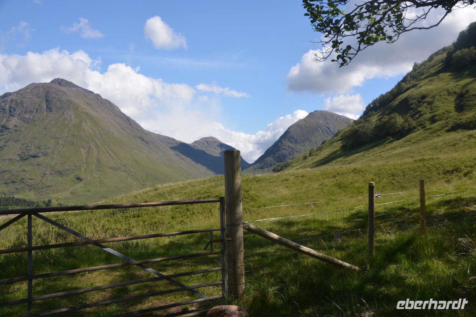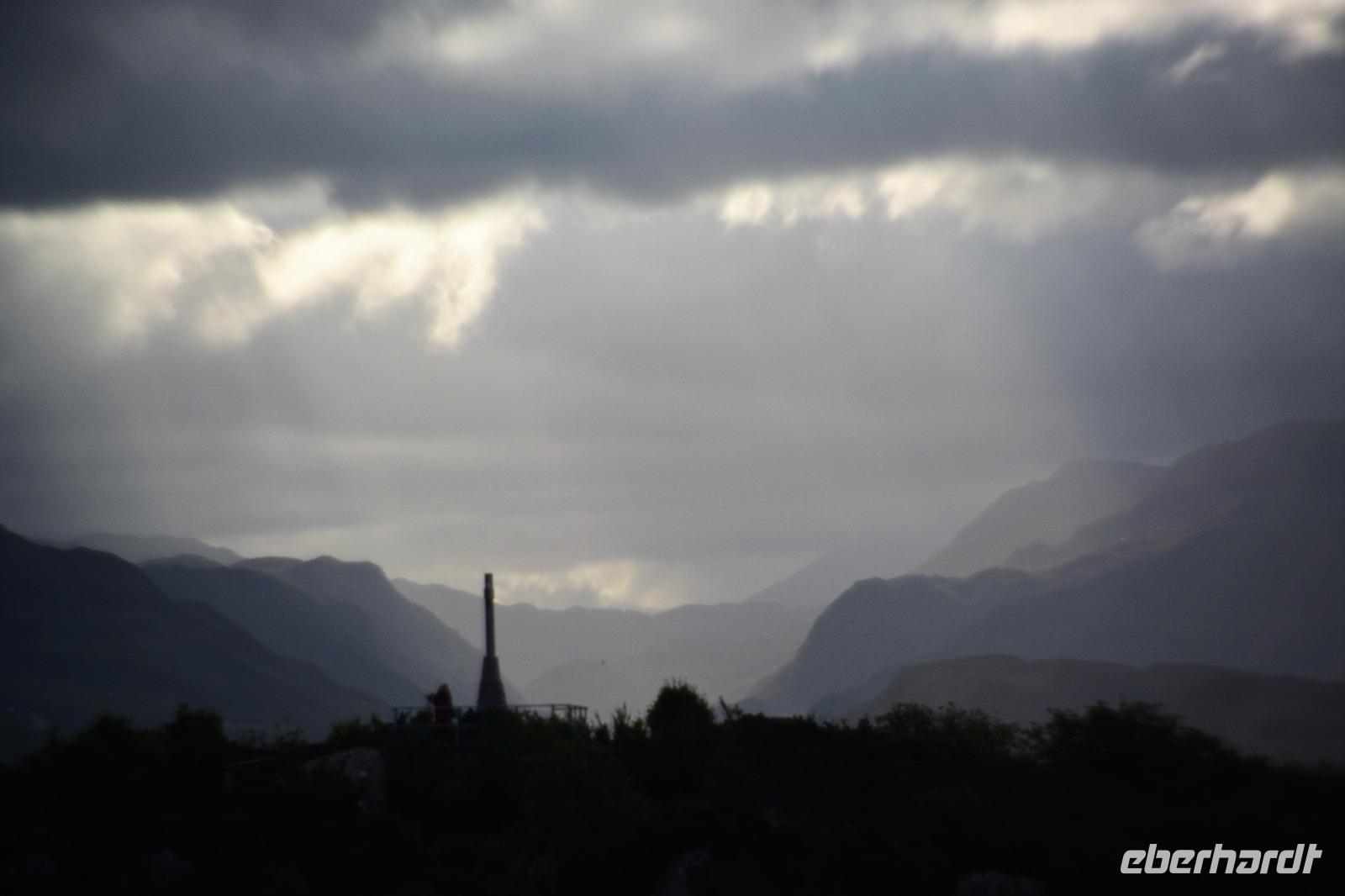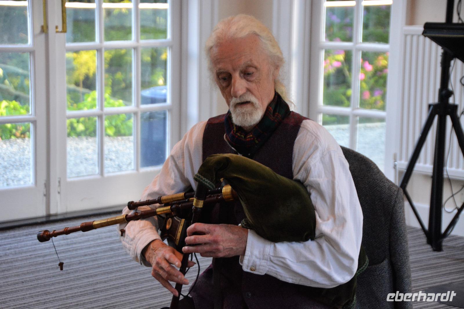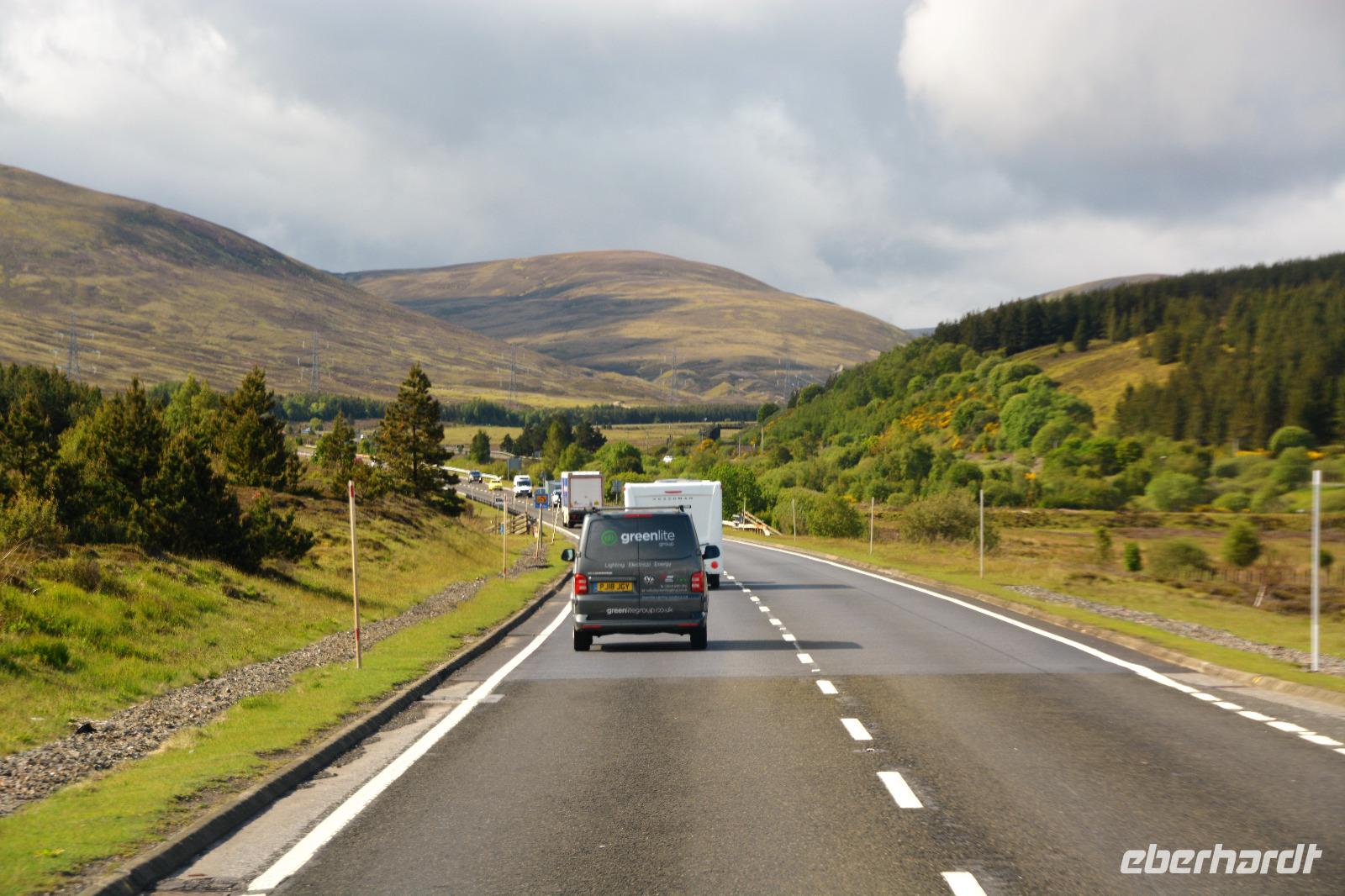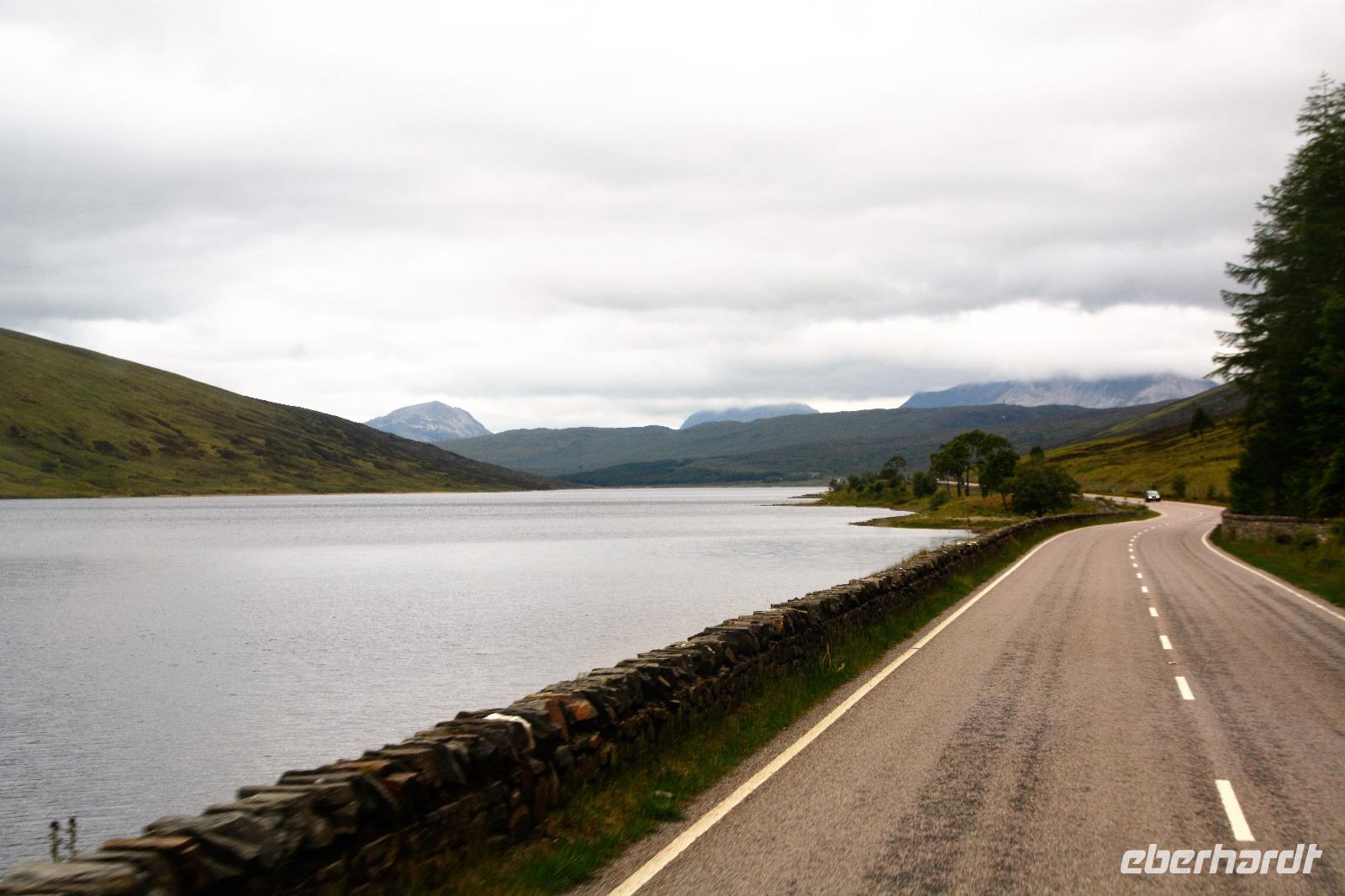 Heute geht es etwas früher los, da wir eine lange Strecke zurückzulegen haben und die Straßen sich ziemlich durch die Landschaft schlängeln. Wir fahren über die "Skye Bridge", die im Jahr 1995 eröffnet wurde und zu Beginn durch ihre hohen Mautgebühren zu vielen Kontroversen führte. Das war mit dem Kauf der Brücke durch die schott. Exekutive mit 27 Mio. Pfund erledigt. Heute fährt man ohne Zahlung hinüber auf das Festland. Die Brücke hat eine maximale Spannweite von 250 m und ist insgesamt 5oo m lang. So sind wir wieder auf dem Festland und werfen noch einmal einen Blick zurück zur einsamen Insel Skye. Gleich sind wir am Silean Donan Castle welches der Stammsitz des Clans der MacRae gehört. So stellt man sich eine schottische Burg vor. Trutzig beherrscht sie die Szenerie. Sie liegt wie es scheint auf einer Insel, gibt es doch eine kleine Brücke zu ihr. Bei Flut könnte man nicht trockenen Fusses zu ihr gelangen, bei Ebbe schon - könnten wir, wenn das Schloss schon geöffnet hätte. Aber wir sind zu früh und so fahren wir weiter. Wir fahren durch die heute sehr feuchte schottiscche Landschaft. Dunkle Wolken lassen nicht Gutes ahnen aber das Wetter ändert sich hier ständig. Wir fahren durch schöne Heidelandschaft zum Loch Maree und finden vor unserem nächsten Haltepunkt eine Möglichkeit zur Befriedigung einiger dringender Bedürfnisse. Gut dass wir gehalten haben, denn an der folgenden "Beinn Eight" Center sind die Toilettenanlagen kaputt.Wir machen hier eine längere Pause zum Spazieren und schauen: es gibt ein kleines Museum und wir können durch eine Kamera Vögel an Futterröhren beobachten. Ein schöner Weg führt zu durch einen dichten Wald zu einem Aussichtspunkt und es herrscht eine friedliche Atmosphäre. Bald geht es weiter in Richtung Gairloch. Die Fotostopps sind wegen dem regnerischen Wetter heute nicht so zahlreich, wir passieren Gairloch und fiebern unserem Highlight von heute entgegen, dem "Inverewe Garten" am Loch Ewe. Er soll einer der nörlichsten botanischen Gärten weltweit sein und er liegt im Golfstrom, der Meeresstrom aus dem Golf von Mexiko der das Klima Westeuropas und besonders einiger Gebiet im Nordwesten Europas maßgeblich beeinflusst. Es wird nicht zuviel versprochen. Der Inverewe Garten wurde von Osgood Mackenzie und seiner Tochter angelegt. Sie verwandelten wohl ein ziemlich ödes Gebiet in ein Paradies. Das Klima und auch architektonische Rafinesse sorgen für ein besonders Klima und die Bedingungen sorgen dafür dass sich Pflanzen aus Australien, Neuseeland und sogar Tasmanien hier wohl fühlen. Man wandelt unter Urwaldriesen. Das Haus der Mackenzies kann besichtigt werden und man hat das Gefühl, man würde von den Bewohnern gleich begrüßt. Liebevoll wurden Souvenirs aus der ganzen Welt zusammengetragen und man bekommt ein Gefühl für die Wohnkultur der wohlhabenden Schotten des 19. Jahrhunderts.Wir müssen leider weiter und machen noch eine kleine Wanderung in der "Corrieshalloch Gorge" zu einem Wasserfall. Eine wackelige Hängebrücke gehört auch dazu. Wir überstehen alles gut und so langsam freuen wir uns auf ein nettes Hotel. Es geht noch ein wenig durch schottische Landschaft und schließlich kommen wir in Beauly im "Lovat Arms Hotel" an. Ein niedliches Hotel mit unverwechselbarem britischen Charme. Schottenkaros, Viktorianisches und sogar einige Himmelbetten erwarten uns. Und da ist auch ein leibhaftiger Kamin. Das Essen schmeckt vorzüglich und so beenden wir einen fast perfekten Tag (warum fast? nun die Sonne hätte schon ein klein wenig mehr scheinen können!)