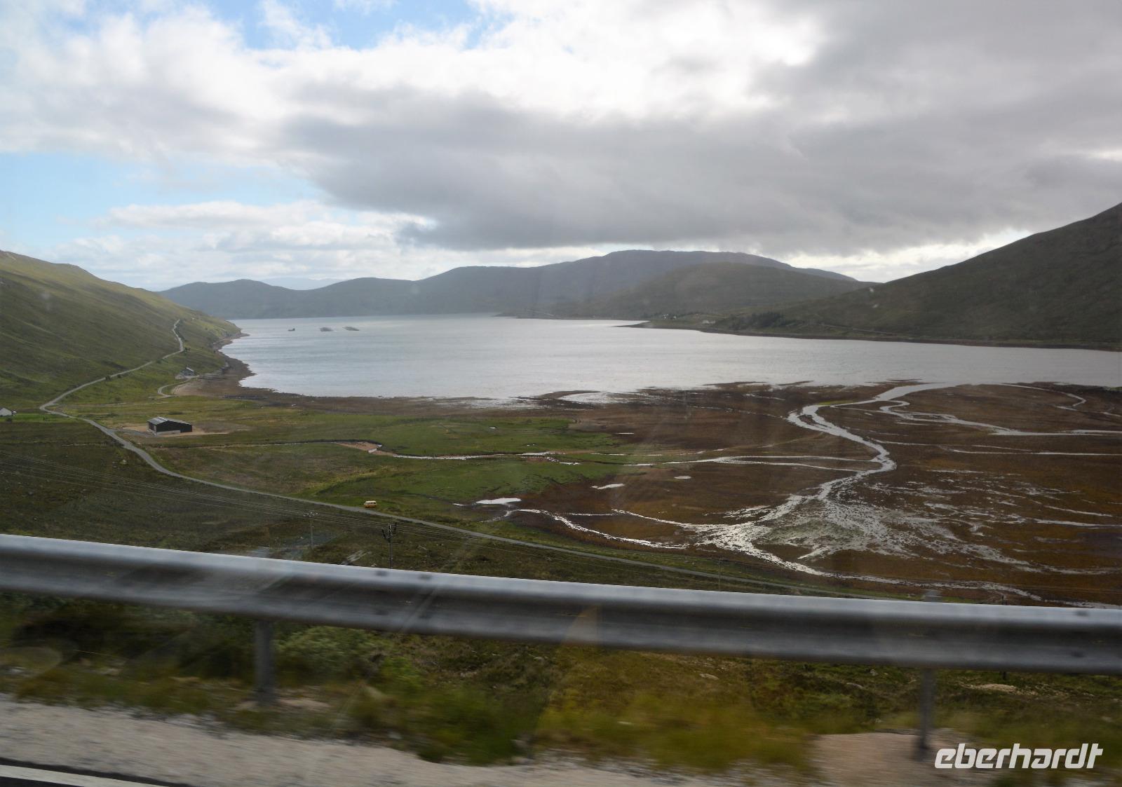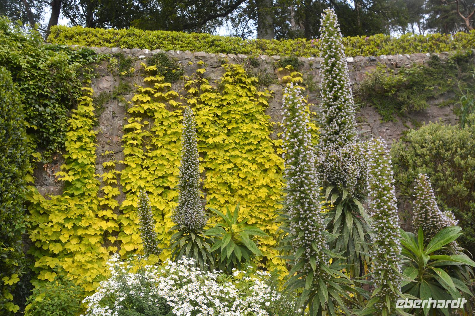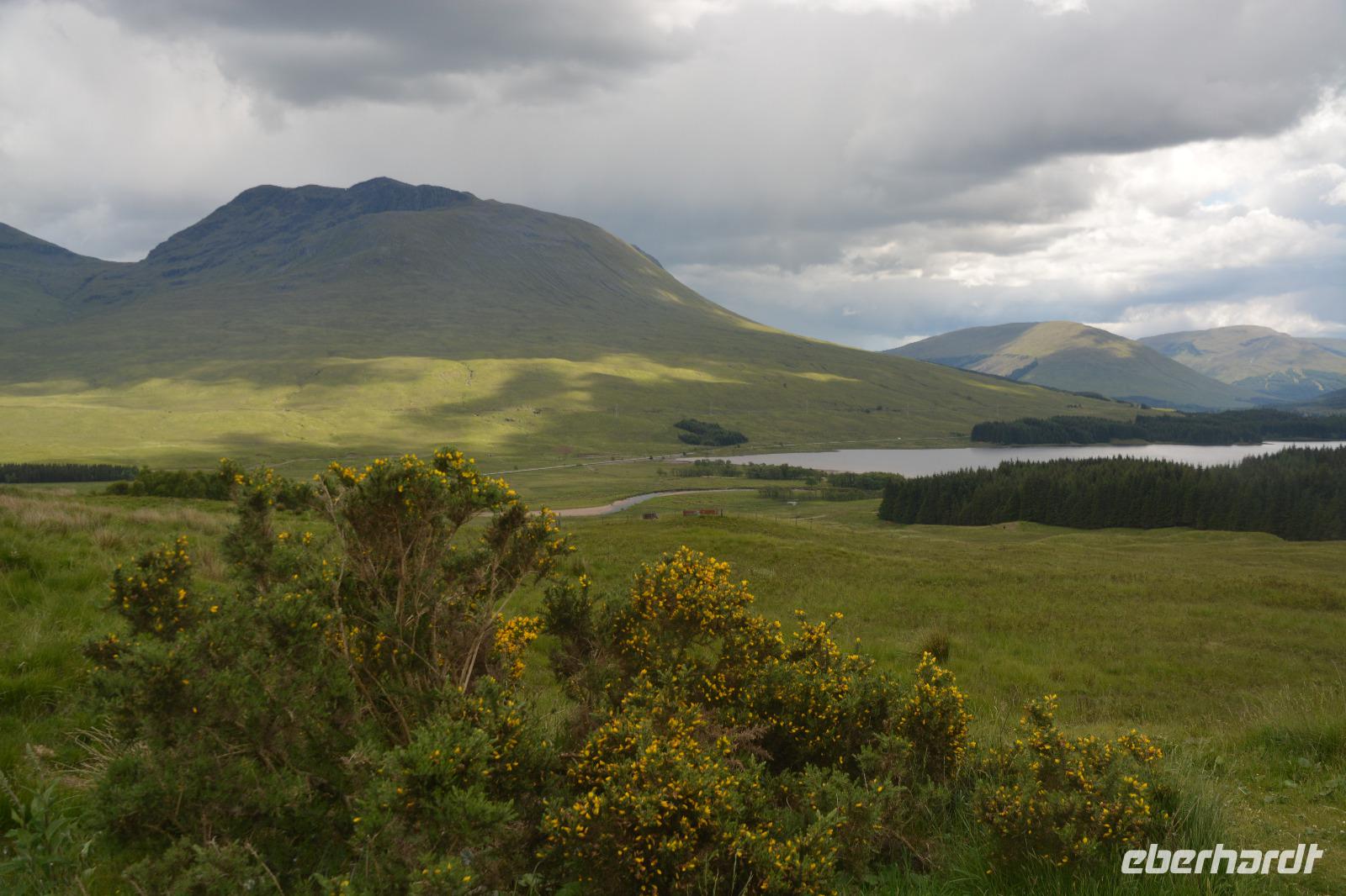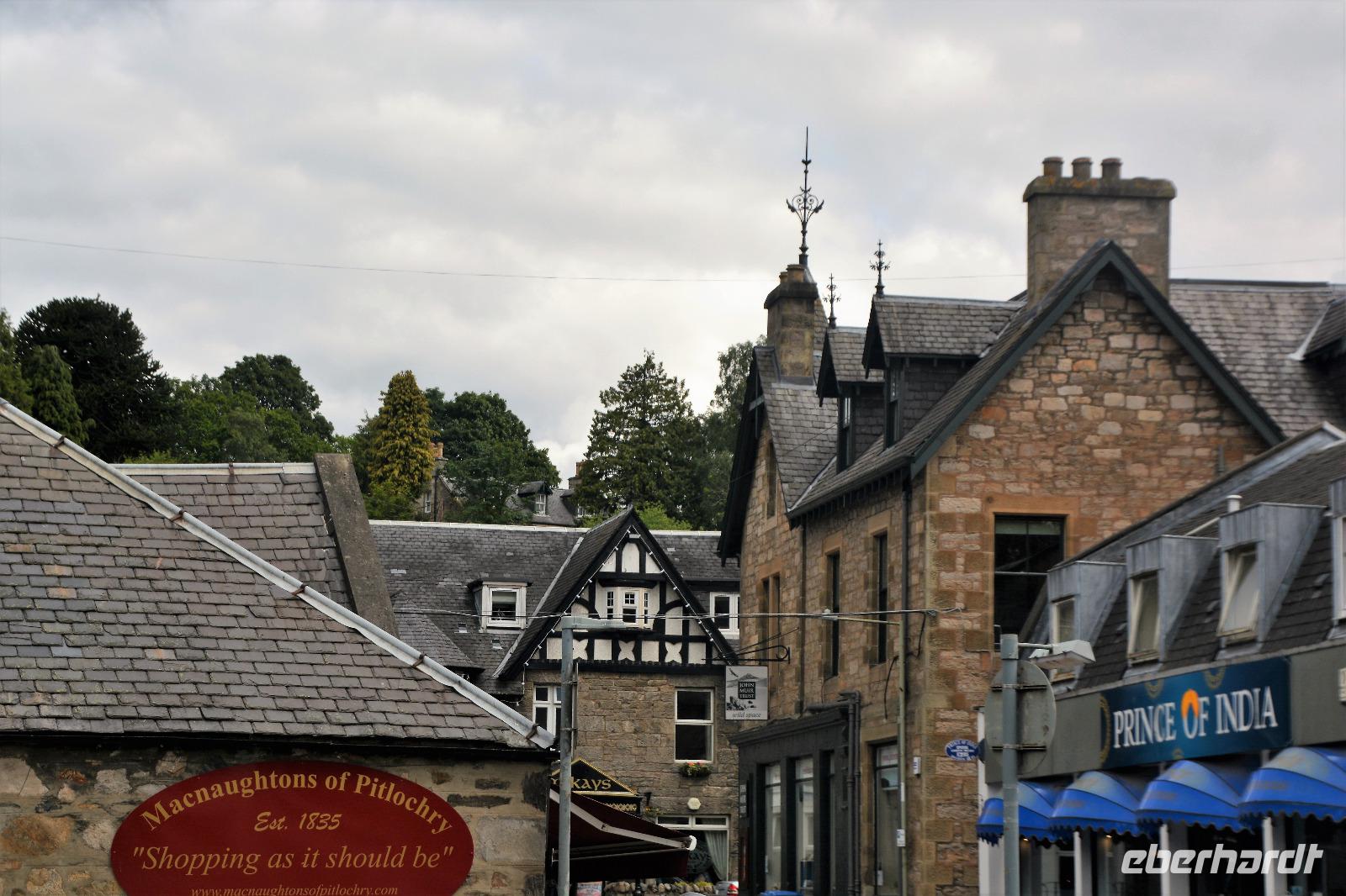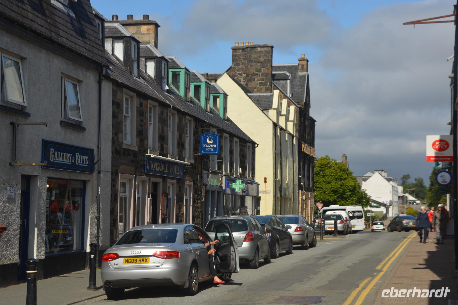 Heute geht es etwas früher los, da wir eine lange Strecke zurückzulegen haben und die Straßen sich ziemlich durch die Landschaft schlängeln. Wir fahren über die "Skye Bridge", die im Jahr 1995 eröffnet wurde und zu Beginn durch ihre hohen Mautgebühren zu vielen Kontroversen führte. Das war mit dem Kauf der Brücke durch die schott. Exekutive mit 27 Mio. Pfund erledigt. Heute fährt man ohne Zahlung hinüber auf das Festland. Die Brücke hat eine maximale Spannweite von 250 m und ist insgesamt 5oo m lang. So sind wir wieder auf dem Festland und werfen noch einmal einen Blick zurück zur einsamen Insel Skye. Gleich sind wir am Silean Donan Castle welches der Stammsitz des Clans der MacRae gehört. So stellt man sich eine schottische Burg vor. Trutzig beherrscht sie die Szenerie. Sie liegt wie es scheint auf einer Insel, gibt es doch eine kleine Brücke zu ihr. Bei Flut könnte man nicht trockenen Fusses zu ihr gelangen, bei Ebbe schon - könnten wir, wenn das Schloss schon geöffnet hätte. Aber wir sind zu früh und so fahren wir weiter. Wir fahren durch die heute sehr feuchte schottiscche Landschaft. Dunkle Wolken lassen nicht Gutes ahnen aber das Wetter ändert sich hier ständig. Wir fahren durch schöne Heidelandschaft zum Loch Maree und finden vor unserem nächsten Haltepunkt eine Möglichkeit zur Befriedigung einiger dringender Bedürfnisse. Gut dass wir gehalten haben, denn an der folgenden "Beinn Eight" Center sind die Toilettenanlagen kaputt.Wir machen hier eine längere Pause zum Spazieren und schauen: es gibt ein kleines Museum und wir können durch eine Kamera Vögel an Futterröhren beobachten. Ein schöner Weg führt zu durch einen dichten Wald zu einem Aussichtspunkt und es herrscht eine friedliche Atmosphäre. Bald geht es weiter in Richtung Gairloch. Die Fotostopps sind wegen dem regnerischen Wetter heute nicht so zahlreich, wir passieren Gairloch und fiebern unserem Highlight von heute entgegen, dem "Inverewe Garten" am Loch Ewe. Er soll einer der nörlichsten botanischen Gärten weltweit sein und er liegt im Golfstrom, der Meeresstrom aus dem Golf von Mexiko der das Klima Westeuropas und besonders einiger Gebiet im Nordwesten Europas maßgeblich beeinflusst. Es wird nicht zuviel versprochen. Der Inverewe Garten wurde von Osgood Mackenzie und seiner Tochter angelegt. Sie verwandelten wohl ein ziemlich ödes Gebiet in ein Paradies. Das Klima und auch architektonische Rafinesse sorgen für ein besonders Klima und die Bedingungen sorgen dafür dass sich Pflanzen aus Australien, Neuseeland und sogar Tasmanien hier wohl fühlen. Man wandelt unter Urwaldriesen. Das Haus der Mackenzies kann besichtigt werden und man hat das Gefühl, man würde von den Bewohnern gleich begrüßt. Liebevoll wurden Souvenirs aus der ganzen Welt zusammengetragen und man bekommt ein Gefühl für die Wohnkultur der wohlhabenden Schotten des 19. Jahrhunderts.Wir müssen leider weiter und machen noch eine kleine Wanderung in der "Corrieshalloch Gorge" zu einem Wasserfall. Eine wackelige Hängebrücke gehört auch dazu. Wir überstehen alles gut und so langsam freuen wir uns auf ein nettes Hotel. Es geht noch ein wenig durch schottische Landschaft und schließlich kommen wir in Beauly im "Lovat Arms Hotel" an. Ein niedliches Hotel mit unverwechselbarem britischen Charme. Schottenkaros, Viktorianisches und sogar einige Himmelbetten erwarten uns. Und da ist auch ein leibhaftiger Kamin. Das Essen schmeckt vorzüglich und so beenden wir einen fast perfekten Tag (warum fast? nun die Sonne hätte schon ein klein wenig mehr scheinen können!)