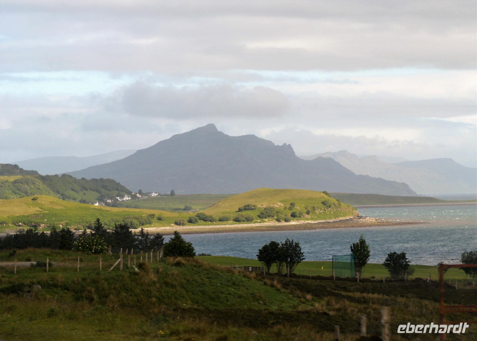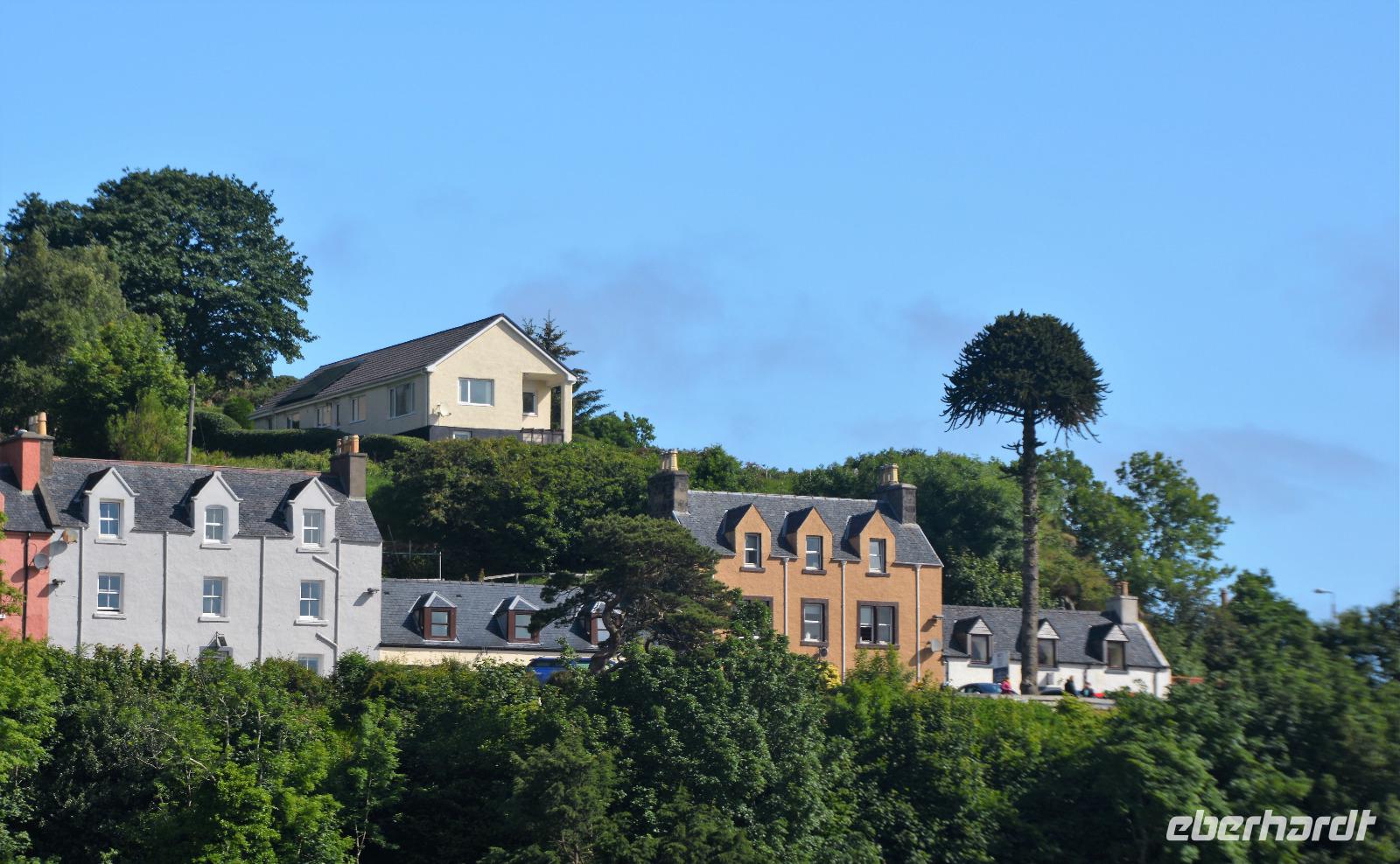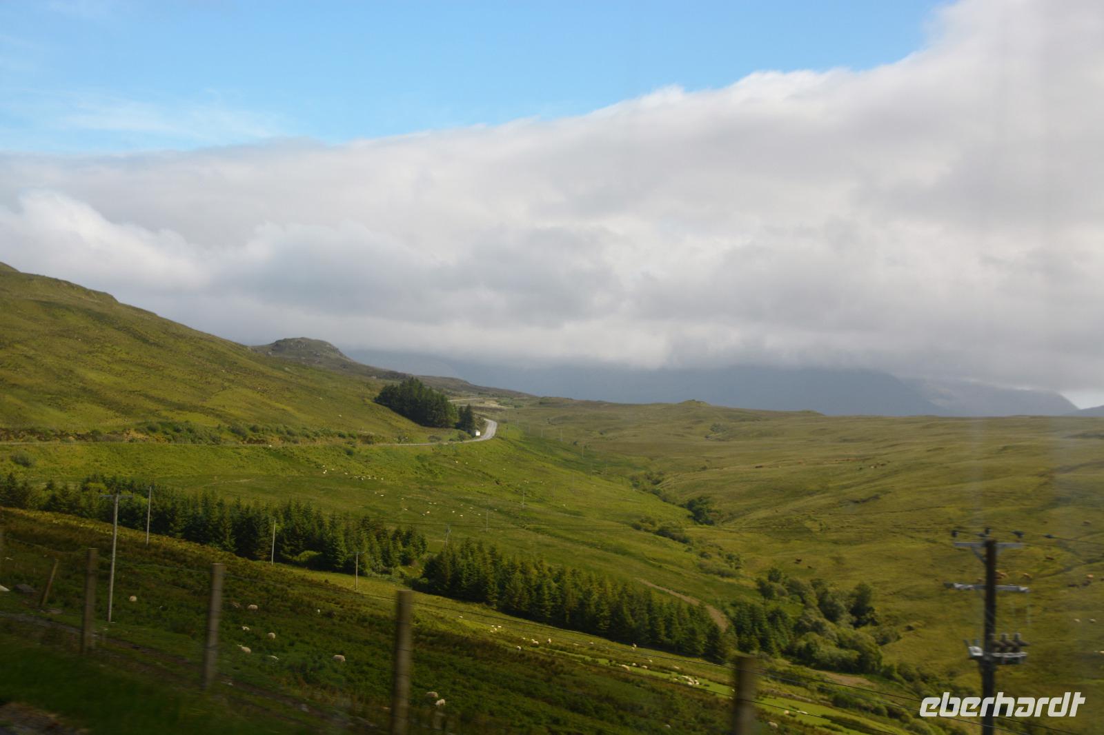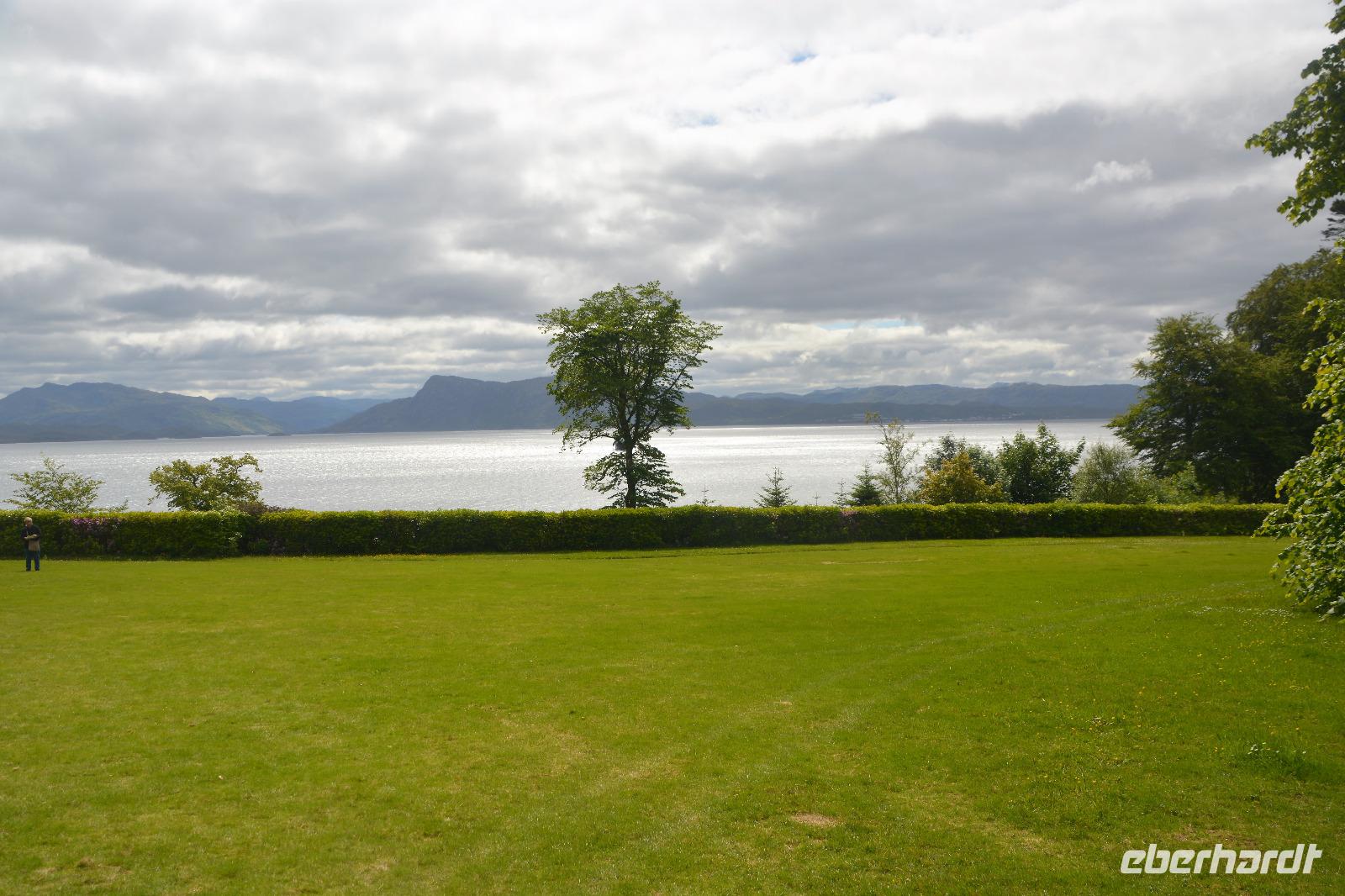 Früh müssen wir heute aufstehen. Der bestellte Weckruf funktioniert und alle sind pünktlich beim Frühstück. Es gibt ein wenig Verwirrung in der Küche, was sich später als Mißverständnis herausstellt. Wir werden aber alle satt und bald sitzen wir in unserem Bus und sind gespannt auf die Isle of Skye, ein Vorposten Europas. Wir hoffen auf ein wenig Sonnenstrahlen und merken bald, dass ein eisiger Wind von Norden weht. Wir kommen pünktlich an der Fähre in Mallaig an und haben sogar noch ein wenig Zeit uns die Füsse zu vertreten, wenn nur der Wind nicht so eisig wäre. Ist nicht Juni? Das Wetter bleibt verhältnismäßig stabil und nach einer ruhigen Überfahrt kommen wir auf der Insel an. Da es im Ort in dem wir mit unserer Fähre ankommen wirklich nur das "Armadale Castle" mit Garten gibt, versuche wir den Besuch ein wenig vorzuziehen und schon jetzt die Anlage zu besuchen. Da es zur Zeit nicht viele Besucher gibt ist das ohne Probleme möglich und wir genießen einen wunderbaren Vormittag sogar mit Sonne in dieser schönen Anlage, die von dem Clan der Mac Donald erbaut wurde und es war jemand des MacDonald Clans der eine Stiftung zum Erhalt der Anlage ins Leben rief. Wir genießen diese schöne Anlage und bewundern die prachtvollen Gewächse die diesen Garten zu einer Augenweide machen. Araucarien die ihre Heimat in Südamerika (Chile, Argentinien) haben aber auch andere prachtvolle Bäume und auch Blühpflanzen können wir in uns aufnehmen. Ein interessantes Museum und Souvenirshop sind auch vorhanden und hier finden einige von uns nette Mitbringsel oder Erinnerungsstücke. Nach einem Mittagsimbiß und Kaffee fahren wir weiter in Richtung Hotel und kündigen unser früheres Kommen an. Auf dem Weg dorthin gibt es noch einige nette Fotomotive und wir halten dafür an. Schließlich aber freuen sich alle auf ein früheres Ankommen, denn die letzte Nacht war kurz. Unser Zimme sind denn auch bezugsfertig und wir können uns ein wenig ausruhen. Am Abend treffen wir uns dann für ein abwechslungsreiches Abendessen. Noch ein letztes Getränk und der Tag geht in Ruhe zu Ende. Wir freuen uns auf morgen.