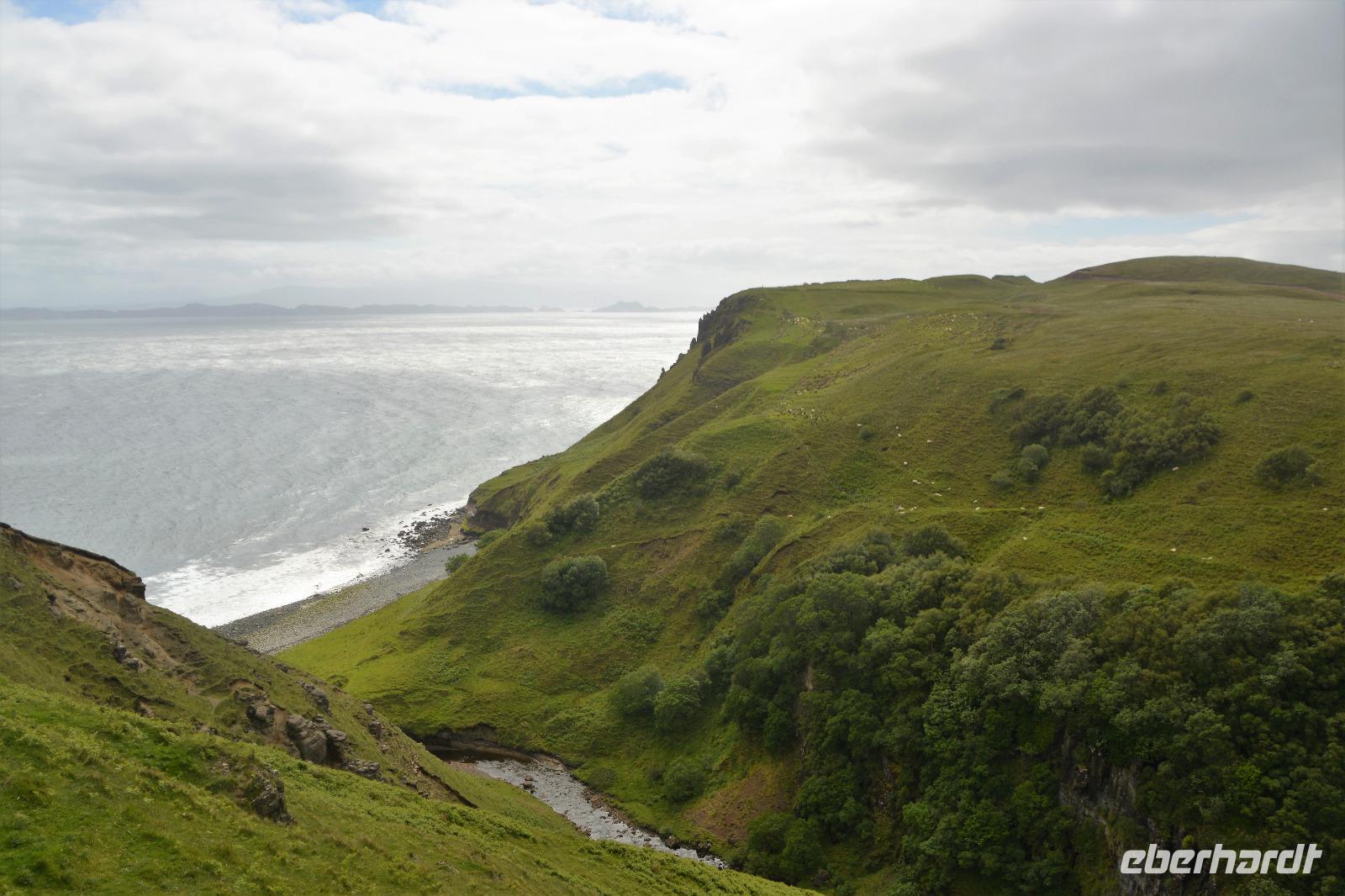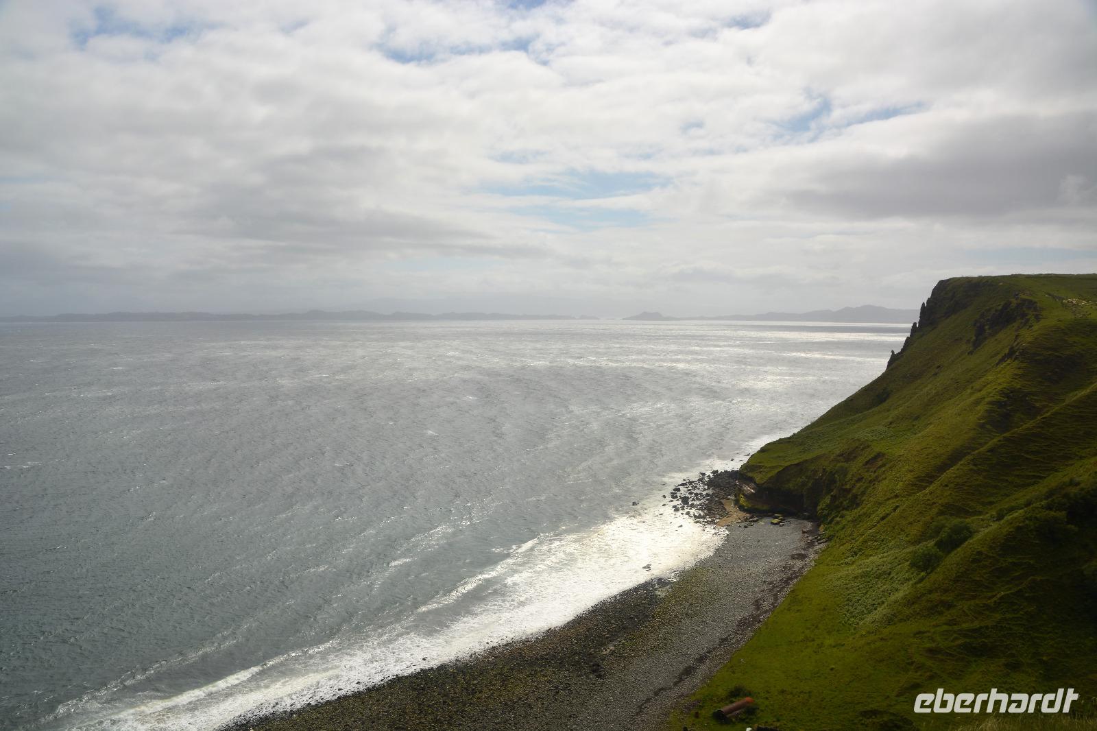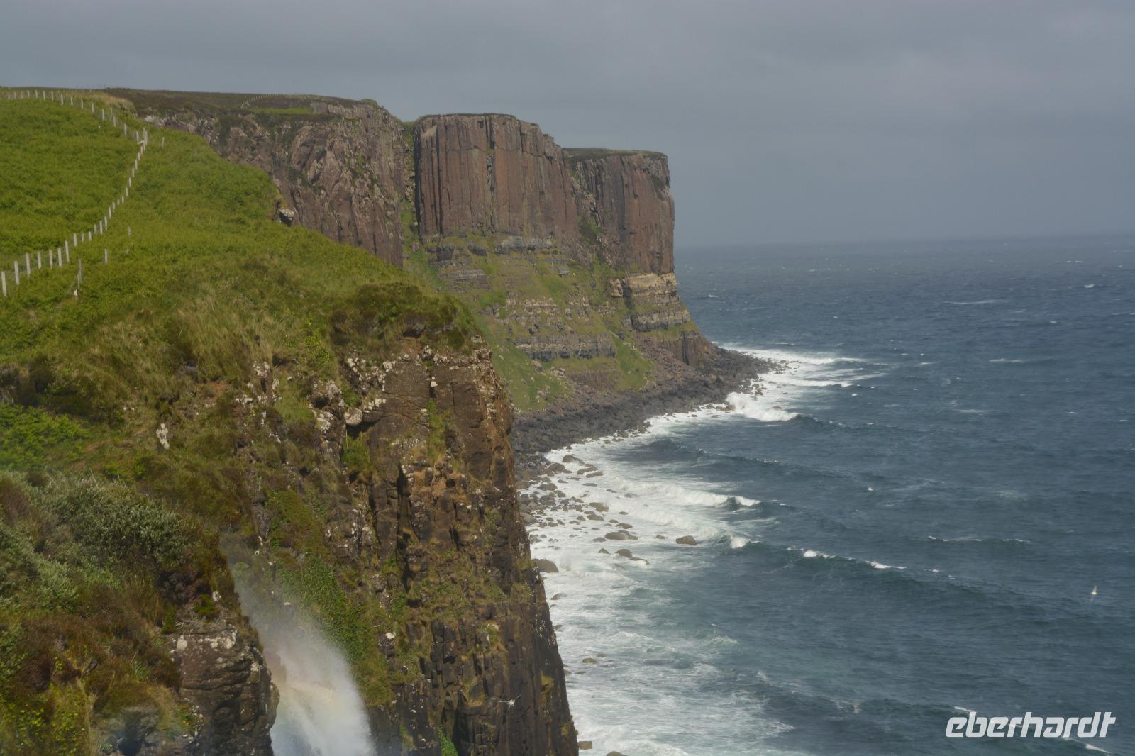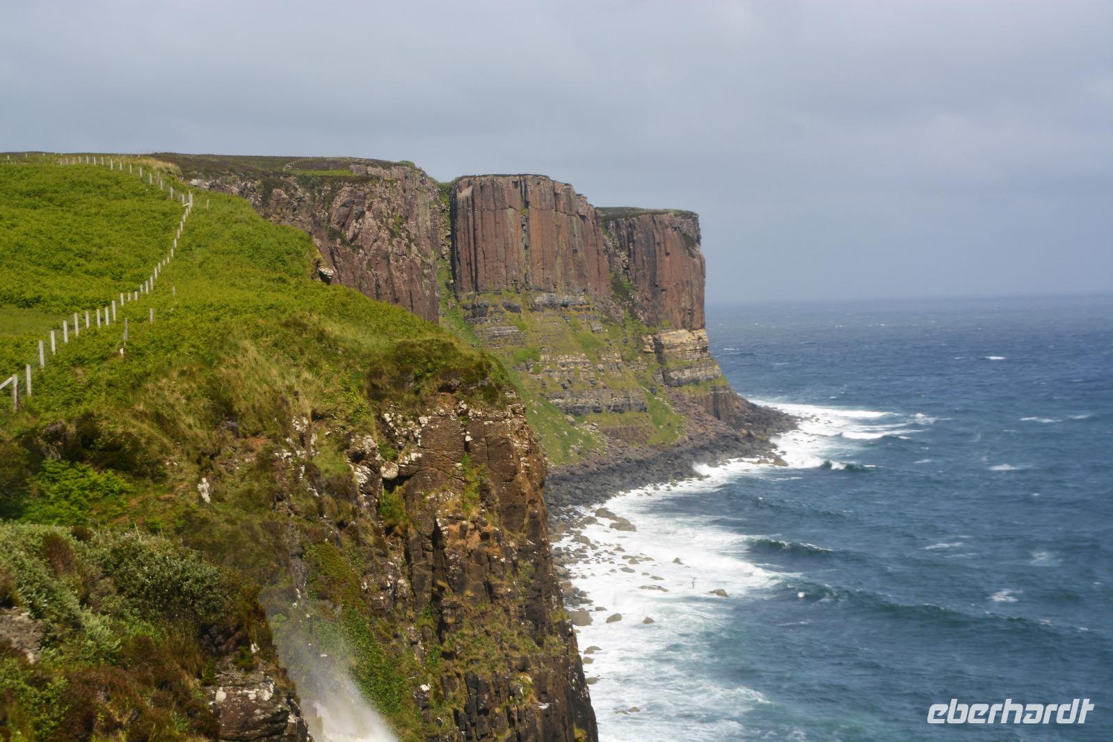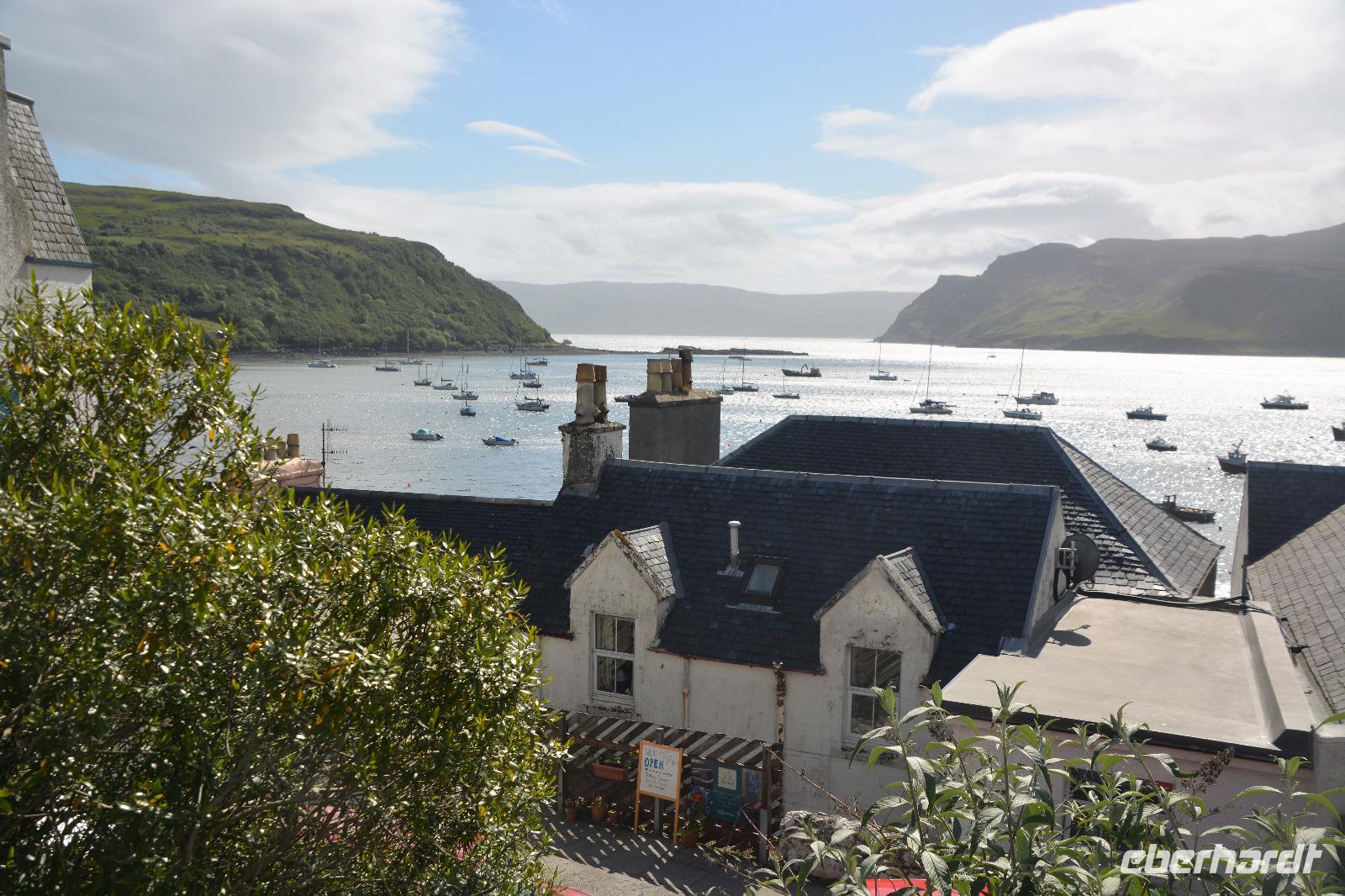 Früh müssen wir heute aufstehen. Der bestellte Weckruf funktioniert und alle sind pünktlich beim Frühstück. Es gibt ein wenig Verwirrung in der Küche, was sich später als Mißverständnis herausstellt. Wir werden aber alle satt und bald sitzen wir in unserem Bus und sind gespannt auf die Isle of Skye, ein Vorposten Europas. Wir hoffen auf ein wenig Sonnenstrahlen und merken bald, dass ein eisiger Wind von Norden weht. Wir kommen pünktlich an der Fähre in Mallaig an und haben sogar noch ein wenig Zeit uns die Füsse zu vertreten, wenn nur der Wind nicht so eisig wäre. Ist nicht Juni? Das Wetter bleibt verhältnismäßig stabil und nach einer ruhigen Überfahrt kommen wir auf der Insel an. Da es im Ort in dem wir mit unserer Fähre ankommen wirklich nur das "Armadale Castle" mit Garten gibt, versuche wir den Besuch ein wenig vorzuziehen und schon jetzt die Anlage zu besuchen. Da es zur Zeit nicht viele Besucher gibt ist das ohne Probleme möglich und wir genießen einen wunderbaren Vormittag sogar mit Sonne in dieser schönen Anlage, die von dem Clan der Mac Donald erbaut wurde und es war jemand des MacDonald Clans der eine Stiftung zum Erhalt der Anlage ins Leben rief. Wir genießen diese schöne Anlage und bewundern die prachtvollen Gewächse die diesen Garten zu einer Augenweide machen. Araucarien die ihre Heimat in Südamerika (Chile, Argentinien) haben aber auch andere prachtvolle Bäume und auch Blühpflanzen können wir in uns aufnehmen. Ein interessantes Museum und Souvenirshop sind auch vorhanden und hier finden einige von uns nette Mitbringsel oder Erinnerungsstücke. Nach einem Mittagsimbiß und Kaffee fahren wir weiter in Richtung Hotel und kündigen unser früheres Kommen an. Auf dem Weg dorthin gibt es noch einige nette Fotomotive und wir halten dafür an. Schließlich aber freuen sich alle auf ein früheres Ankommen, denn die letzte Nacht war kurz. Unser Zimme sind denn auch bezugsfertig und wir können uns ein wenig ausruhen. Am Abend treffen wir uns dann für ein abwechslungsreiches Abendessen. Noch ein letztes Getränk und der Tag geht in Ruhe zu Ende. Wir freuen uns auf morgen.