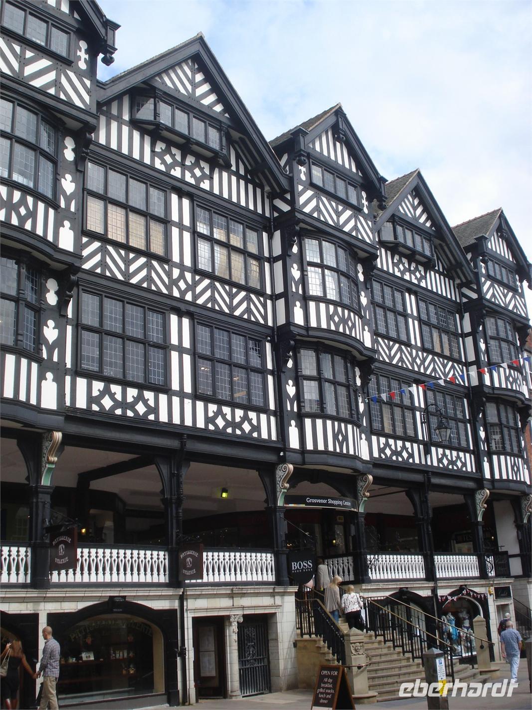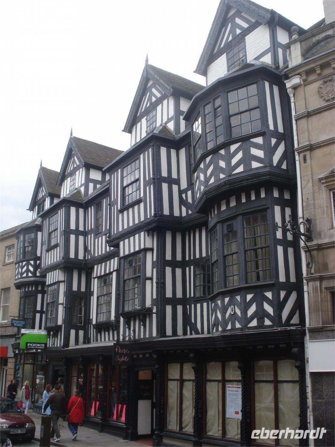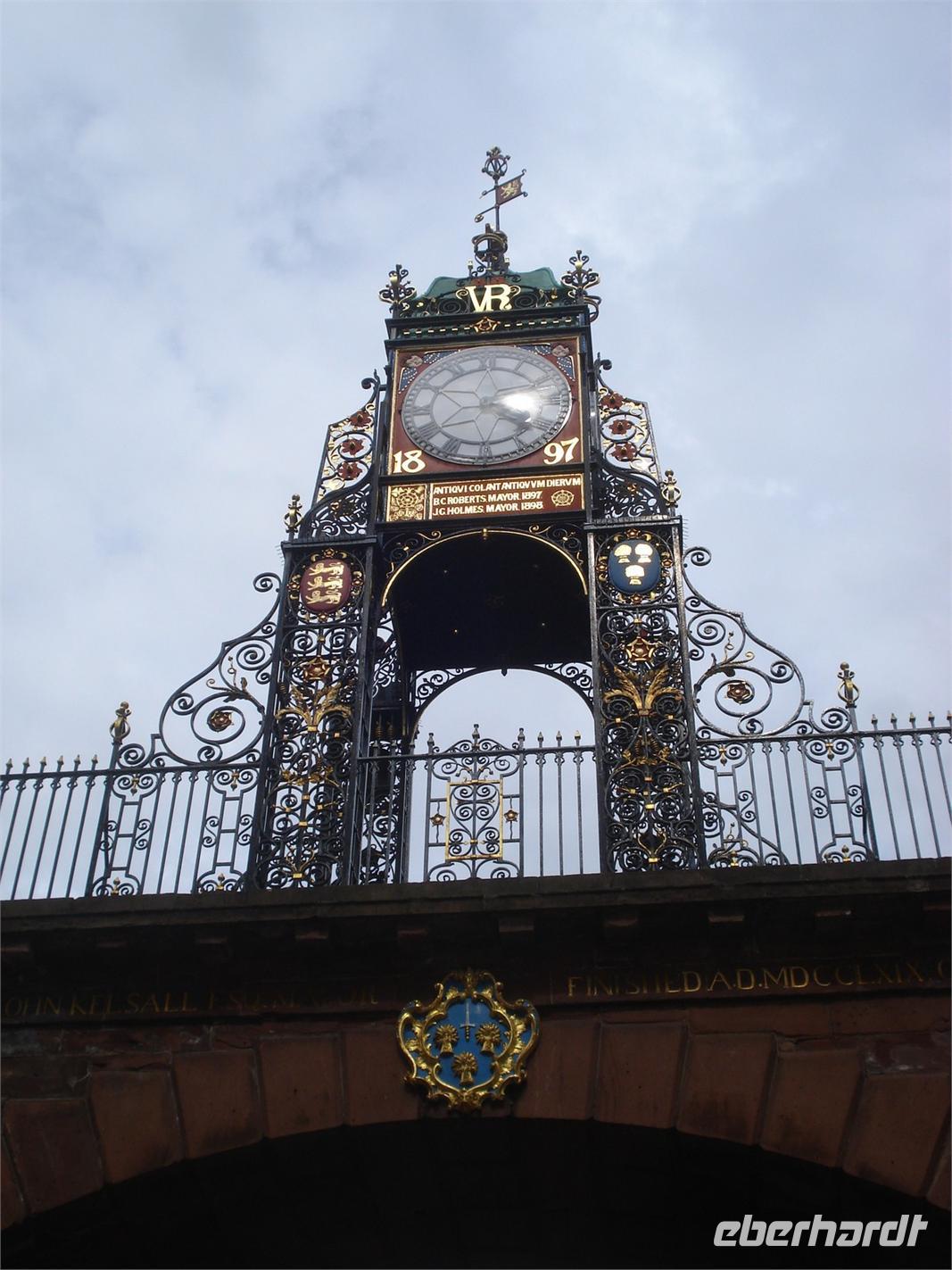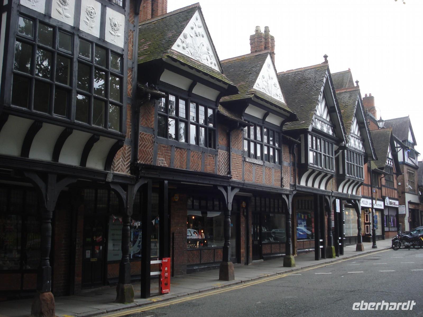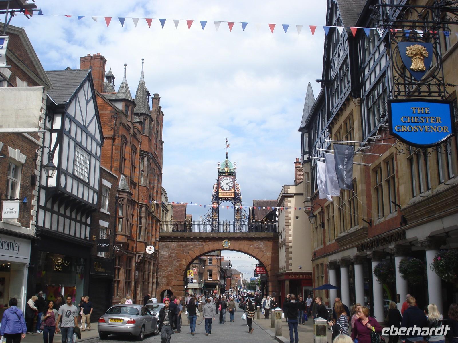 Unsere Mittagspause verbrachten wir im wunderschönen Tudorstädtchen Shrewsbury an einer Schlinge des Flusses Severn. Die Stadt spielte eine wichtige Rolle in den Kriegen der englischen Könige gegen die Waliser. In der Geburtsstadt von Charles Darwin sahen wir die Old Market Hall am Square Platz sowie die schmucken Gassen der Altstadt. Ein weiterer Höhepunkt dieser Reise erwartete uns am Nachmittag. Bei einem sehr abwechslungsreichen Stadtrundgang mit unseren örtlichen Stadtführern besichtigten wir Chester. Zwei Besonderheiten machen Chester zu einer der sehenswertesten Städte Nordenglands: die Fachwerkarkaden, Rows genannt sowie die gut erhaltene Stadtmauer. Chester bietet in England die einzige Möglichkeit, einen kompletten Rundgang auf einer mittelalterlichen Stadtmauer durchzuführen. Wir bummelten einen Teil dieser Stadtmauer entlang und genossen die Aussicht auf den Fluss Dee sowie die Umgebung. Beeindruckt waren wir von den zweigeschossigen Arkadengängen, The Rows. Diese Konstruktion ist in England trotz des feuchten Klimas eine Seltenheit. Fasziniert waren wir auch von filigran verzierten Uhr zum 60jährigen Jubiläum der Queen Victoria am Eastgate.
