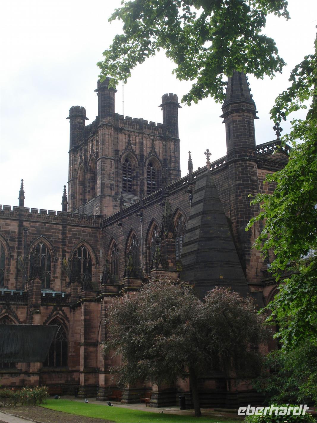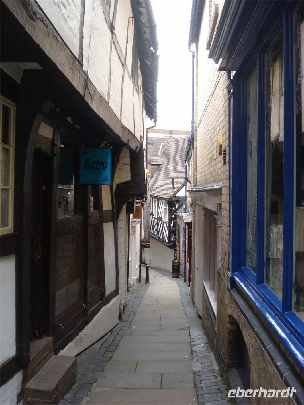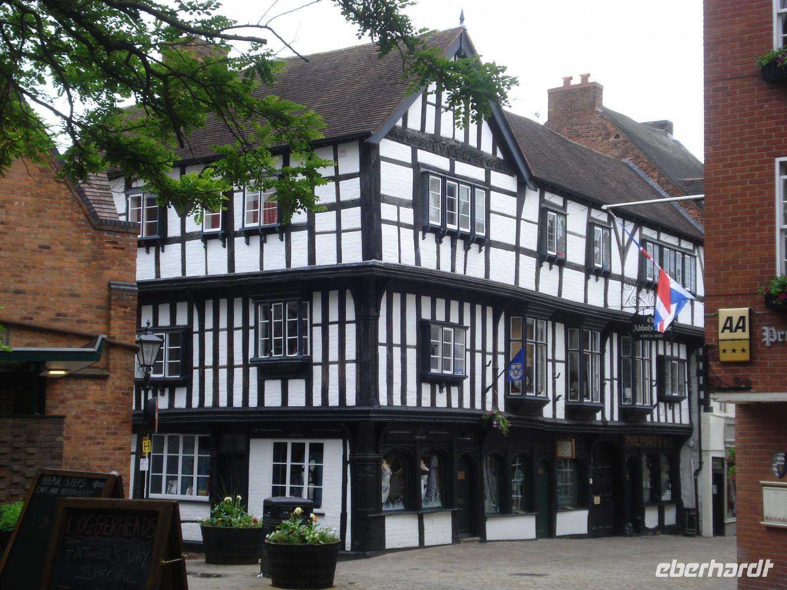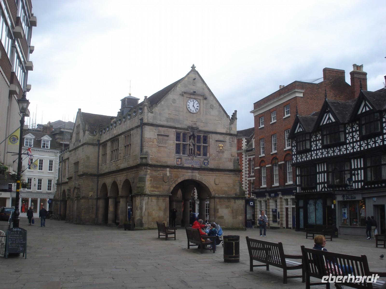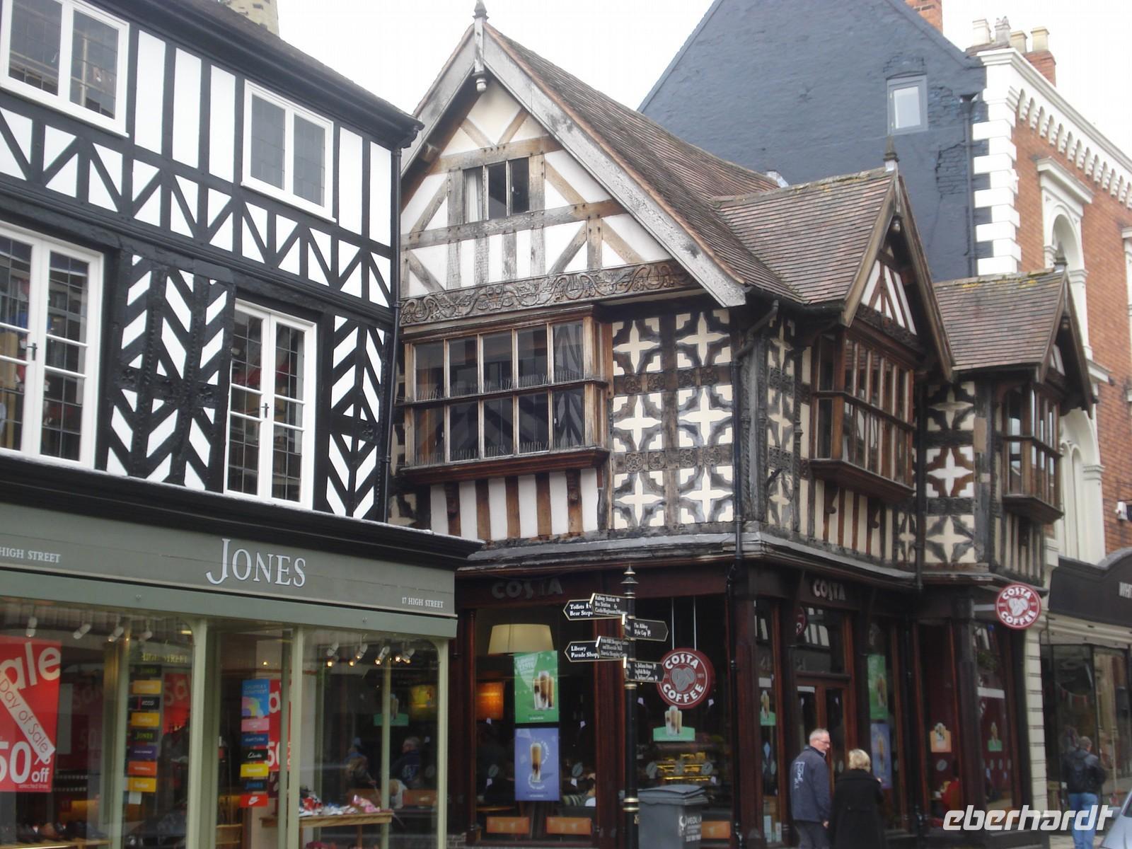 Unsere Mittagspause verbrachten wir im wunderschönen Tudorstädtchen Shrewsbury an einer Schlinge des Flusses Severn. Die Stadt spielte eine wichtige Rolle in den Kriegen der englischen Könige gegen die Waliser. In der Geburtsstadt von Charles Darwin sahen wir die Old Market Hall am Square Platz sowie die schmucken Gassen der Altstadt. Ein weiterer Höhepunkt dieser Reise erwartete uns am Nachmittag. Bei einem sehr abwechslungsreichen Stadtrundgang mit unseren örtlichen Stadtführern besichtigten wir Chester. Zwei Besonderheiten machen Chester zu einer der sehenswertesten Städte Nordenglands: die Fachwerkarkaden, Rows genannt sowie die gut erhaltene Stadtmauer. Chester bietet in England die einzige Möglichkeit, einen kompletten Rundgang auf einer mittelalterlichen Stadtmauer durchzuführen. Wir bummelten einen Teil dieser Stadtmauer entlang und genossen die Aussicht auf den Fluss Dee sowie die Umgebung. Beeindruckt waren wir von den zweigeschossigen Arkadengängen, The Rows. Diese Konstruktion ist in England trotz des feuchten Klimas eine Seltenheit. Fasziniert waren wir auch von filigran verzierten Uhr zum 60jährigen Jubiläum der Queen Victoria am Eastgate.