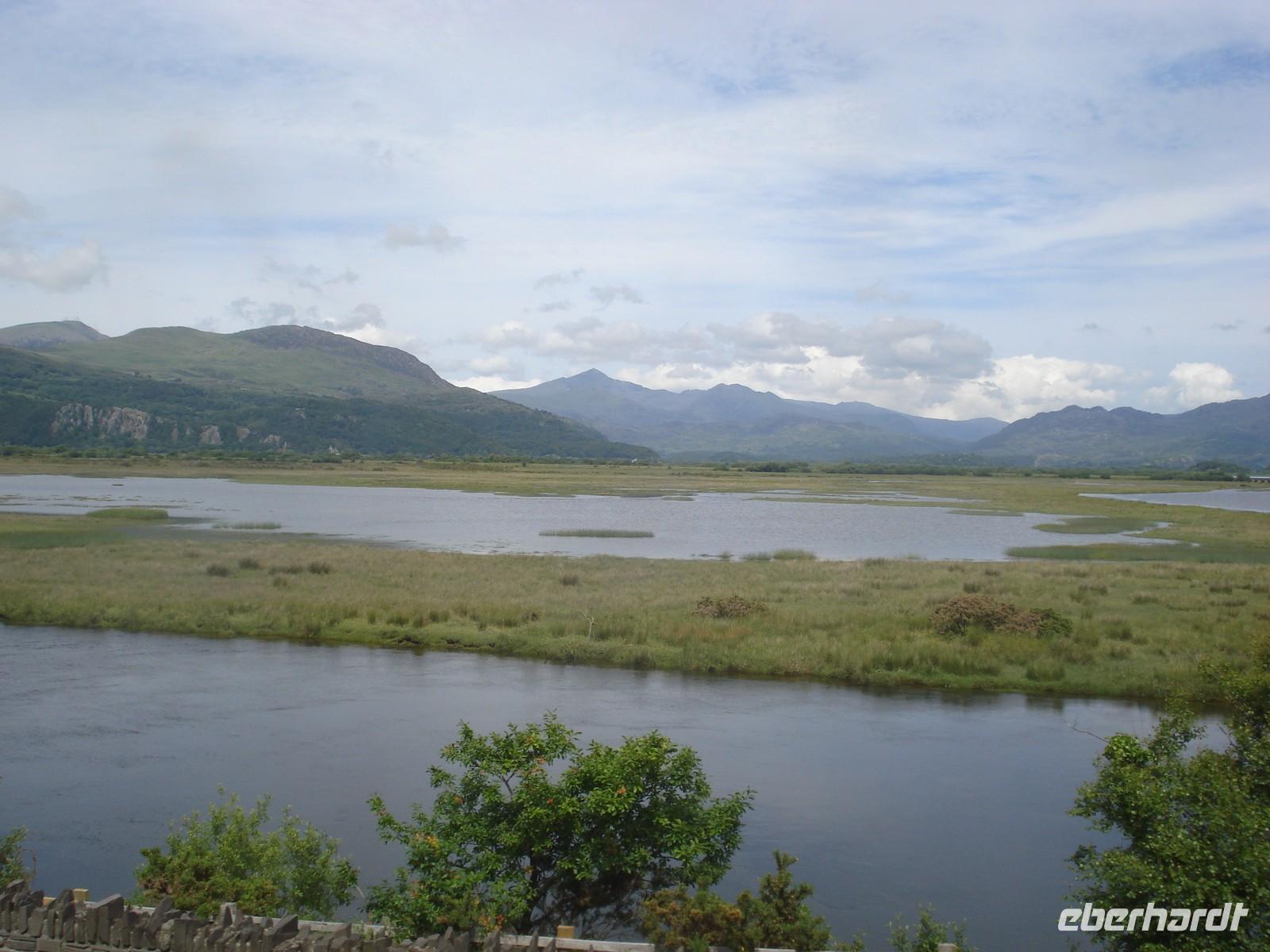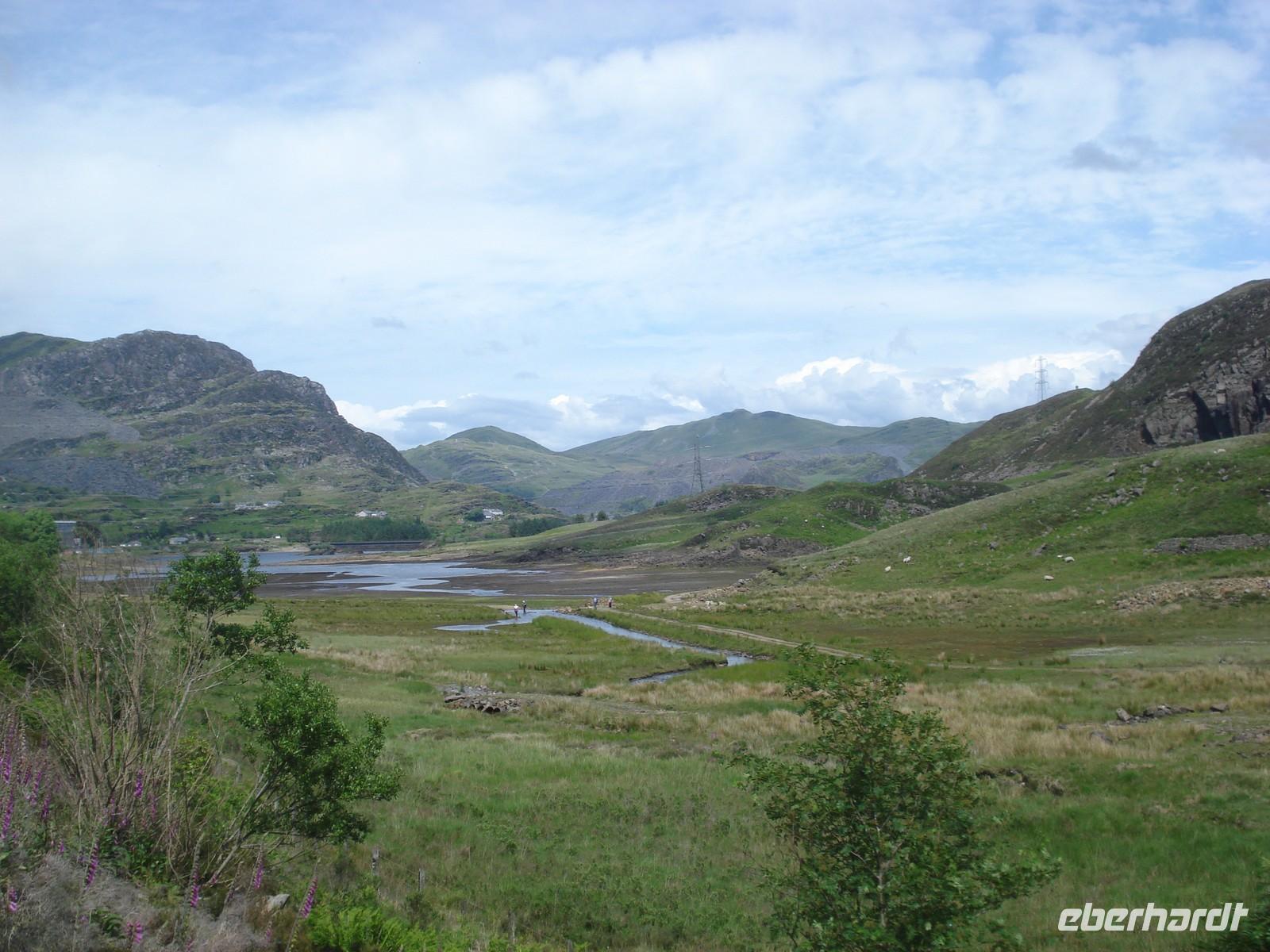 Unser Hotel war mit der deutschen Pünktlichkeit zum Montagmorgen ziemlich überfordert und servierte uns das englische Frühstück etwas verspätet. Gestärkt umrundeten wir heute das unvergleichlich majestätische Snowdon Gebirgsmassiv in Wales. An der Nordküste entlang unternahmen wir einen kleinen Abstecher auf die benachbarte Insel Anglesey. Die Meerenge der Menai Strait überqueten wir über die Britannia Bridge und besuchten den Ort mit den 58 Buchstaben Llanfair P.G. Stefanie überraschte uns mit der walisischen Aussprache dieses längsten amtlichen Ortsnamens. Mehrmalige Versuche unsererseits scheiterten klaglos.