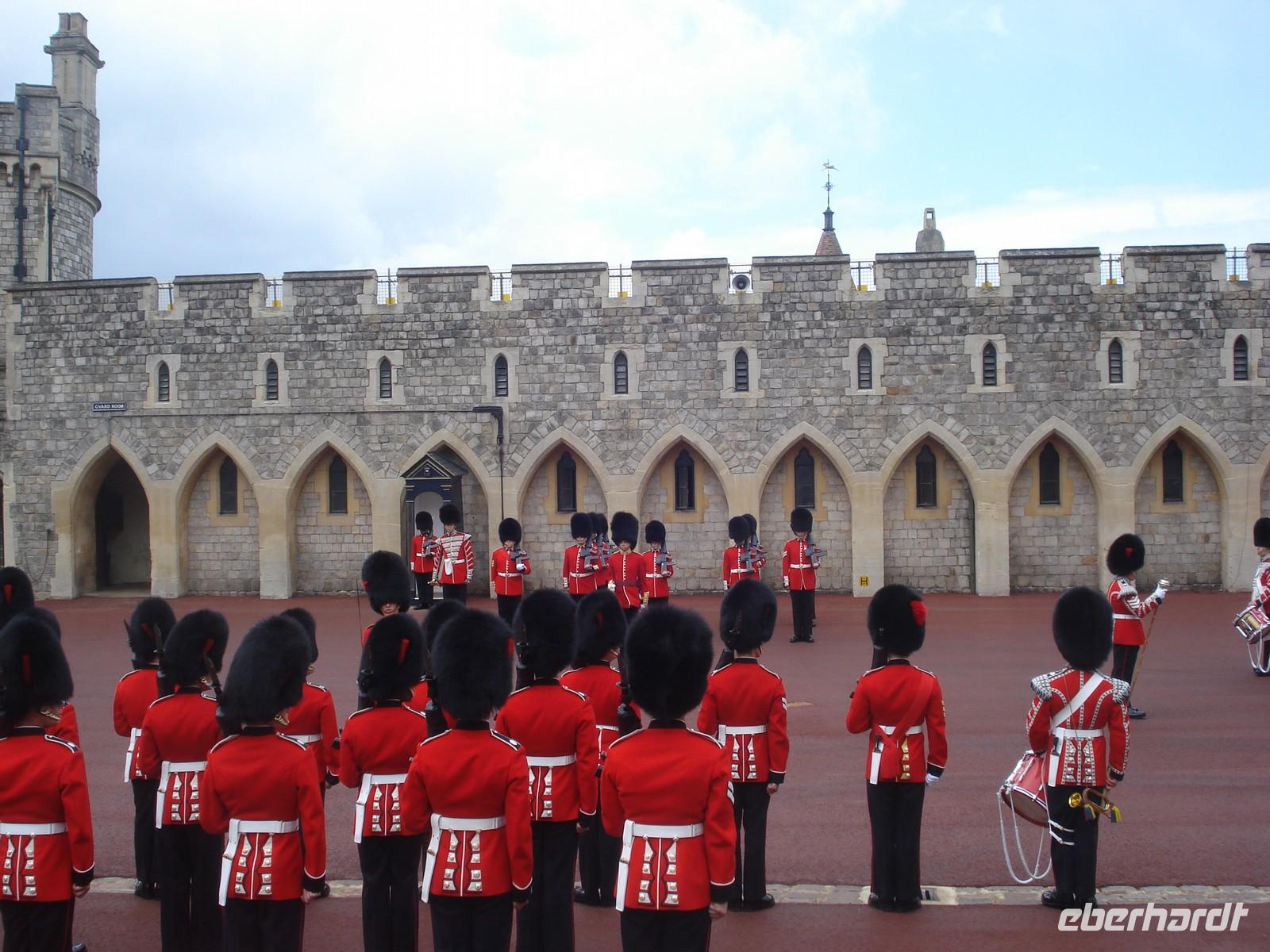 Nach dem reichhaltigen Frühstücksbuffet starteten wir zu unserem ersten Ziel Windsor. Das Städtchen am Südufer der Themse wird beherrscht von dem Schloss, seit über 900 Jahren Sommerresidenz der Königlichen Familie. Windsor Castle gilt als eine der schönsten Residenzen der Welt und als größte noch bewohnte Burg. Während unserer Besichtigung bewunderten wir die Staatsgemächer, das Puppenhaus der Königin, ein Meisterwerk der Handwerkskunst sowie die mächtigen Mauern der Burganlage. Die Zeremonie der Wachablösung ließen wir uns natürlich auch nicht entgehen. Der Ort Windsor zeigt mit seinen Fachwerkhäuser sowie verwinkelten Gassen noch immer ein malerisches mittelalterliches Bild.
