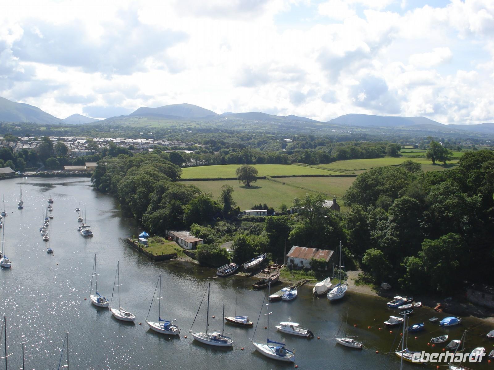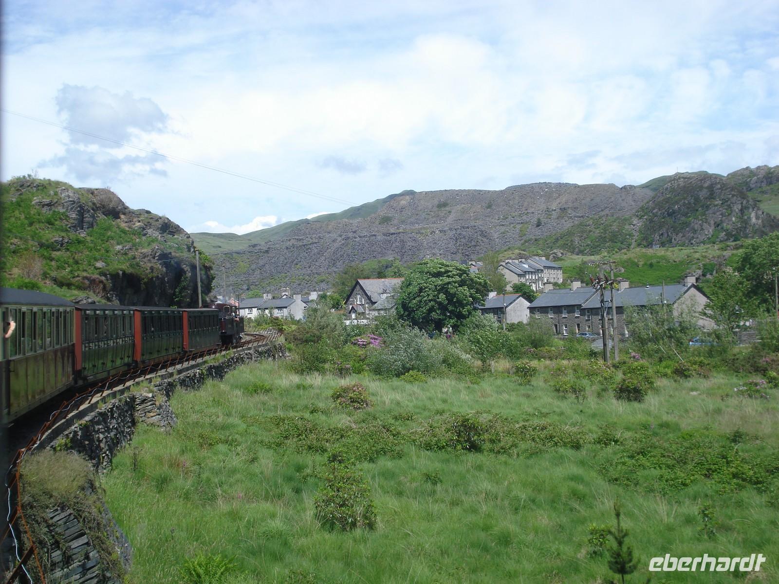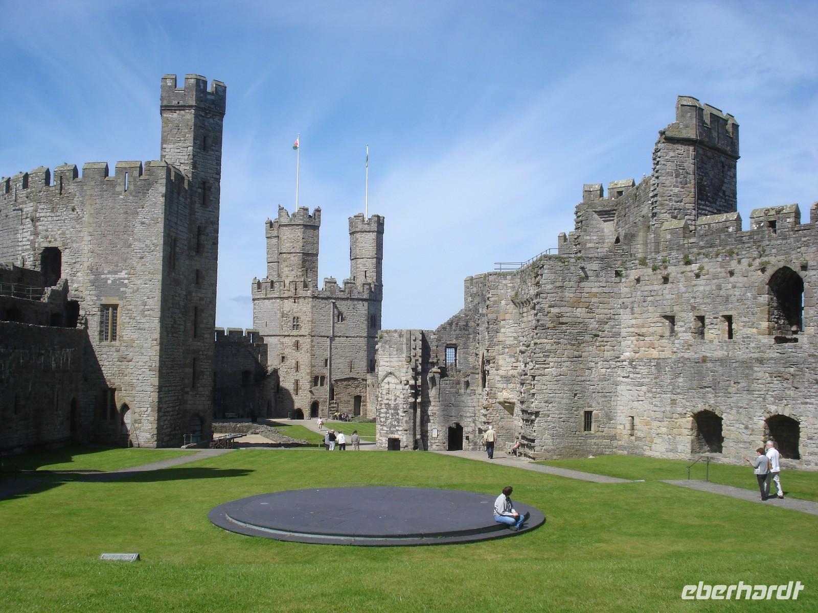 Unser nächstes Ziel war Caernarfon. Die von Türmen bekrönte Burg liegt strategisch günstig an der Menai Strait, der Meerenge zur Insel Anglesey. Bereits die Römer errichteten hier ein Lager, die Normannen erbauen ein hölzernes Fort und unter Eduard I. entstand der heute noch bestehende Bau. Hier wurde 1284 der erste Prinz von Wales, Edwarde of Caernarfon, der spätere Eduard II. geboren. Seit 1301 wird dem ältesten Sohn des britischen Monarchen der Titel Prinz of Wales verliehen. Über die Investitur von Prinz Charles zum Prince of Wales 1969 informierte uns eine Ausstellung im Adlerturm. Von diesem genossen wir auch eine phantastische Aussicht auf die gesamte Burganlage, Stadtmauer sowie die Küste. Im Anschluss fuhren wir nach Porthmadog. Mit der Ffestiniog Railway, einer 1836 in Betrieb genommenen Eisenbahn, mit der einst der Schiefer vom Steinbruck zur Küste transportiert wurde, fuhren wir nach Blaenau Ffestiniog. Wir genossen einen schönen Blick auf den Mount Snowdon, zahlreiche Seen und herrliche Wälder. In Betws-y-Coed besuchten wir die Miniausgabe der Golden-Gate-Bridge. Unseren letzten Stopp legten wir im Conwy ein. Hier wurde Stefanie´s fahrerisches Können wieder auf die Probe gestellt.