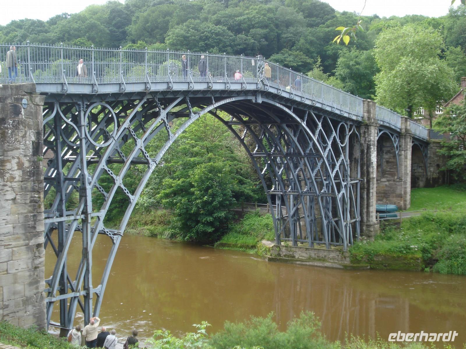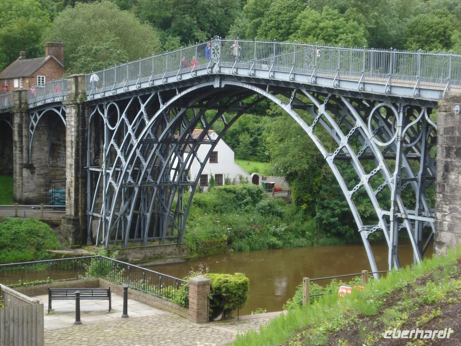 Wir bummelten über die erste Eisenbrücke der Welt. Dank der fünf Rundbögen ist sie ein sehr elegantes, leicht wirkendes Bauwerk, das den Severn in 30.60 m Spannweite überspannt.