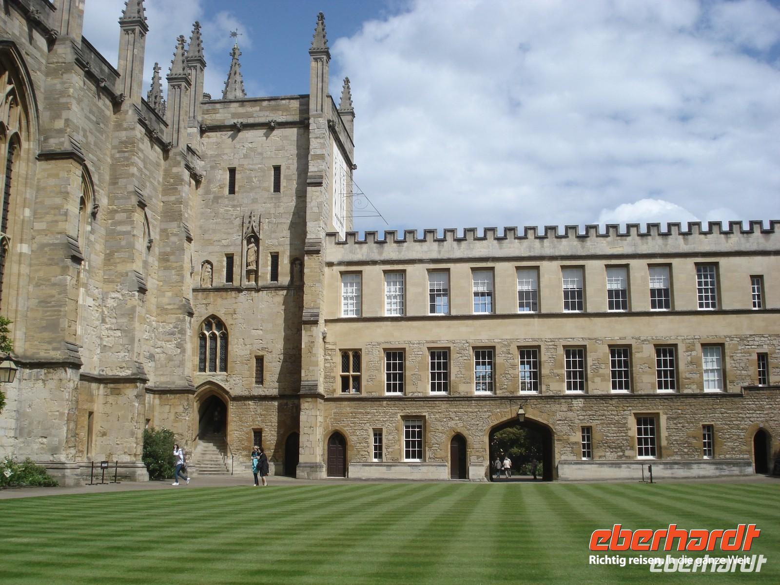 Am Nachmittag führte uns unsere Weiterreise in eine der ältesten und berühmtesten Universitätsstädte Oxford. Unsere Gruppe wurde auf die beiden charmanten Stadtführerinnen Jane und Ursula aufgeteilt, sodass in kleinen Gruppen entspannt den Ausführungen lauschen konnten. Zuerst sahen wir das Sheldonian Theatre, welches als Festsaal bei der Verleihung von akademischen Graden dient. Natürlich besuchten wir auch eines der zahlreichen Colleges. Das festungsartig aussehende New College ist entgegen seinem Namen eines der ältesten und wurde 1379 vom Bischof von Winchester gegründet. Der Große Hof ist der Inbegriff von englischem Perpendicular Style und die Hall die älteste in Oxford. Im Garten konnten wir die schönsten Überreste der Oxforder Stadtmauer bewundern. In der Bodleian Bibliothek erhält ein Exemplar von jedem, in Großbritannien gedruckten Buch. Vorbei am Rundbau der Radcliffe Camera, einem Lesesaal der Bodleian Bibliothek erreichten wir die turbulente überdachte viktorianische Markthalle sowie die Fußgängerzone. Nach einer kurzen Zeit zur freien Verfügung setzten wir unsere Reise nach Honiley ins Brook Hotel fort. Dieses Hotel sollte für die kommenden zwei Nächte unser Domizil sein.
