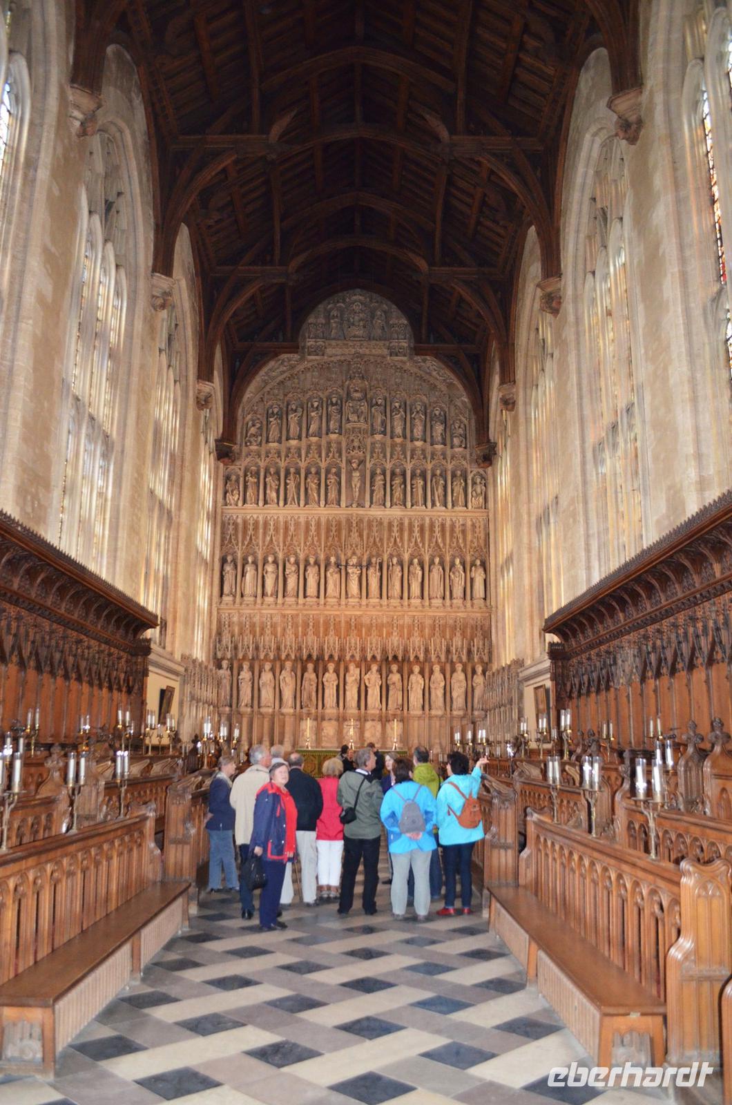Die Stadtführung führten wir in zwei kleinen Gruppen durch, dabei leisteten wir uns den Eintritt in das sehr sehenswerte New College mit seinem sehenswerten. Speisesaal, dem schönen Park an der alten Stadtmauer, der Kirche und dem Kreuzgang. Dann ging es weiter zur Universität, zur Innenstadt mit weiteren Colleges und der schönen alten Markthalle sowie der Fußgängerzone. Vom Ashmolon Museum holte uns unser Bus dann zur abendlichen Fahrt nach Holiney ab und brachte uns in das schöne englische Brook Holiney Court Hotel.