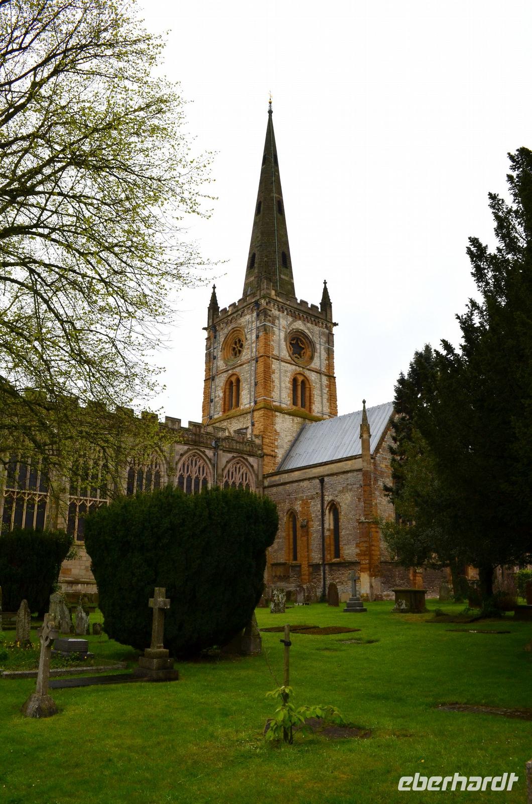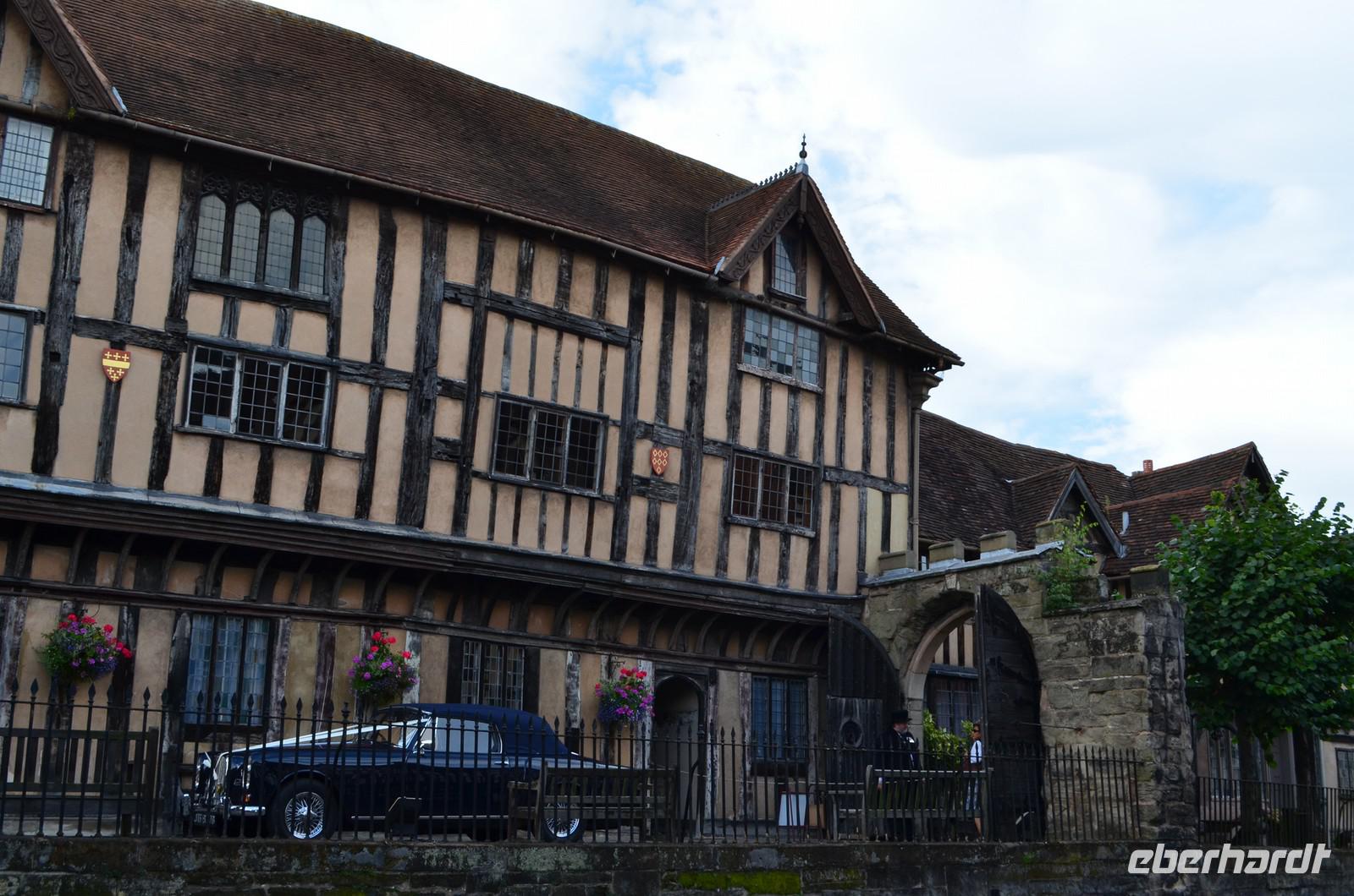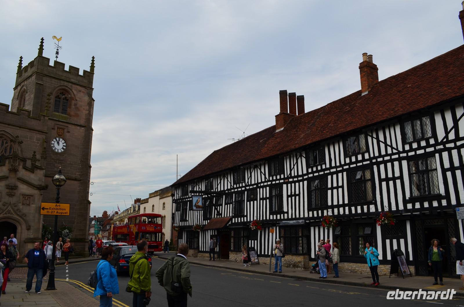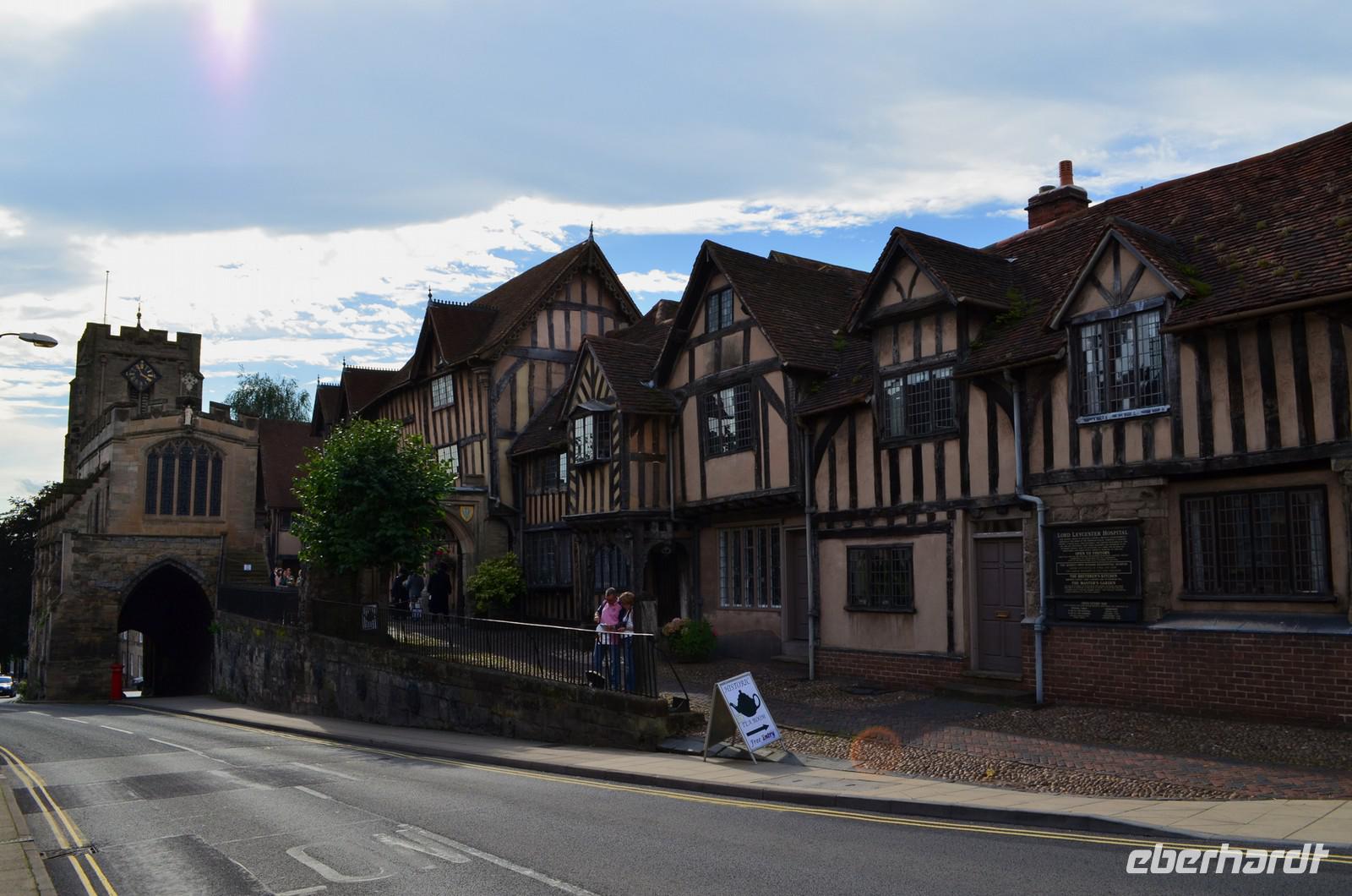 Am späten Vormittag dann die Ankunft auf dem Parkplatz am Besucher- und Freizeitzentrum in Stratford-upon-Avon. Von hier laufen wir gemeinsam in die Stadt, vorbei am Glowell Memorial und dann mit Stadtplänen aus der Info ausgestattet weiter in die Fußgängerzone zum Geburts- und Elternhaus von William Shakespeare. Von hier durch die romantischen Gassen zum Royal Shakespeare Theatre und zum Swan Theatre - danach weiter zur Trinity Church. Leider konnten wir das Grab Shakespeares nicht besichtigen, da für eine Hochzeit die Kirche gerade geschlossen war. Wenigstens ist ein kurzer Blick in den Innenraum möglich. Von der Kirche danach zurück in die Stadt, zum New Place, zu Nash's House und zur Guild Hall.