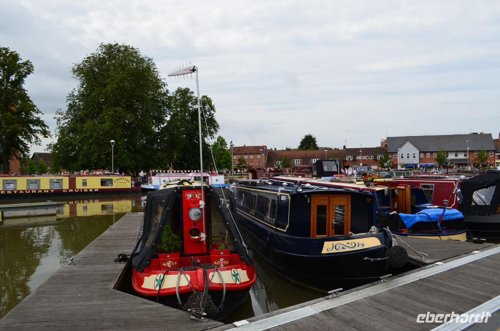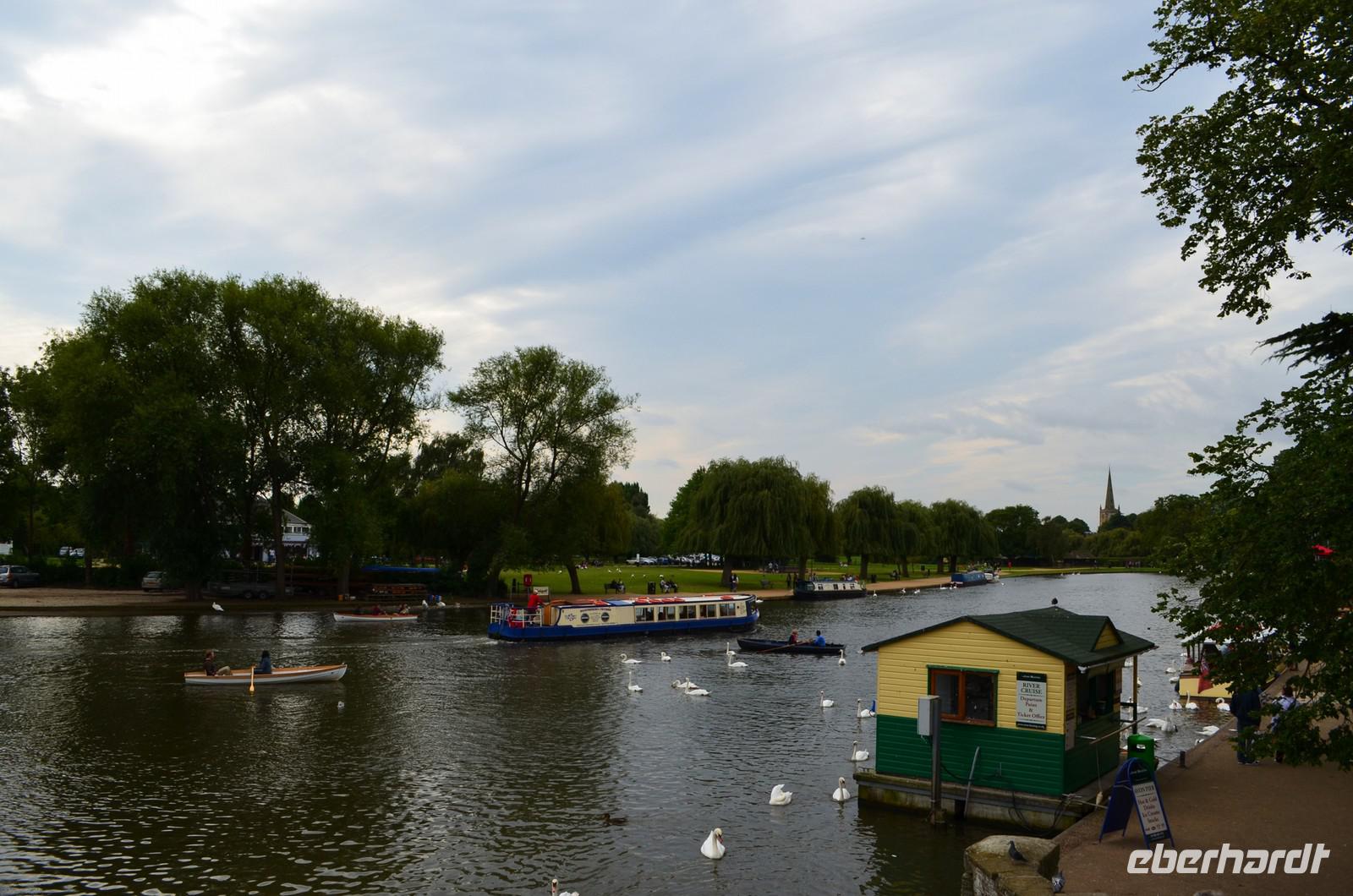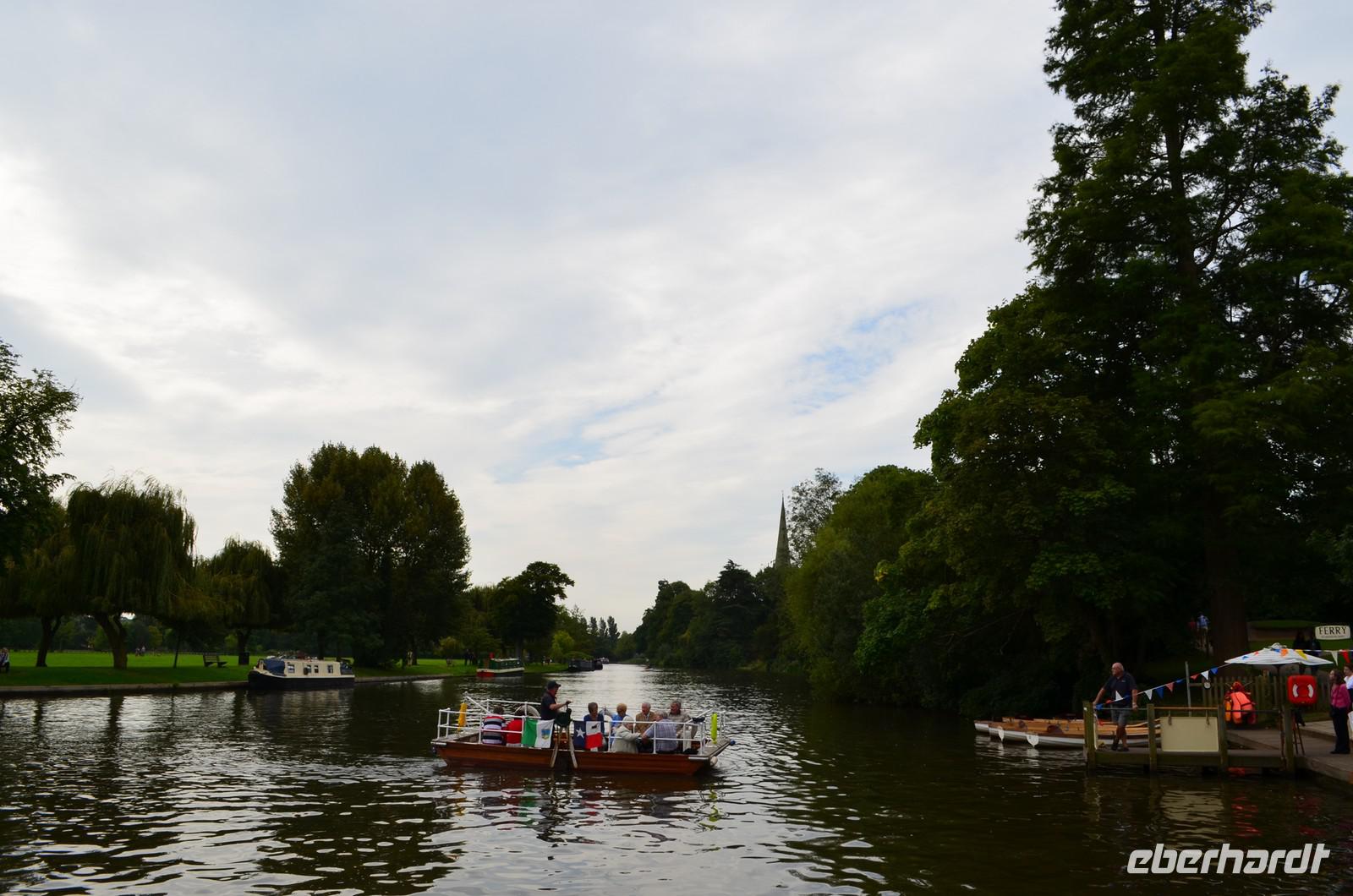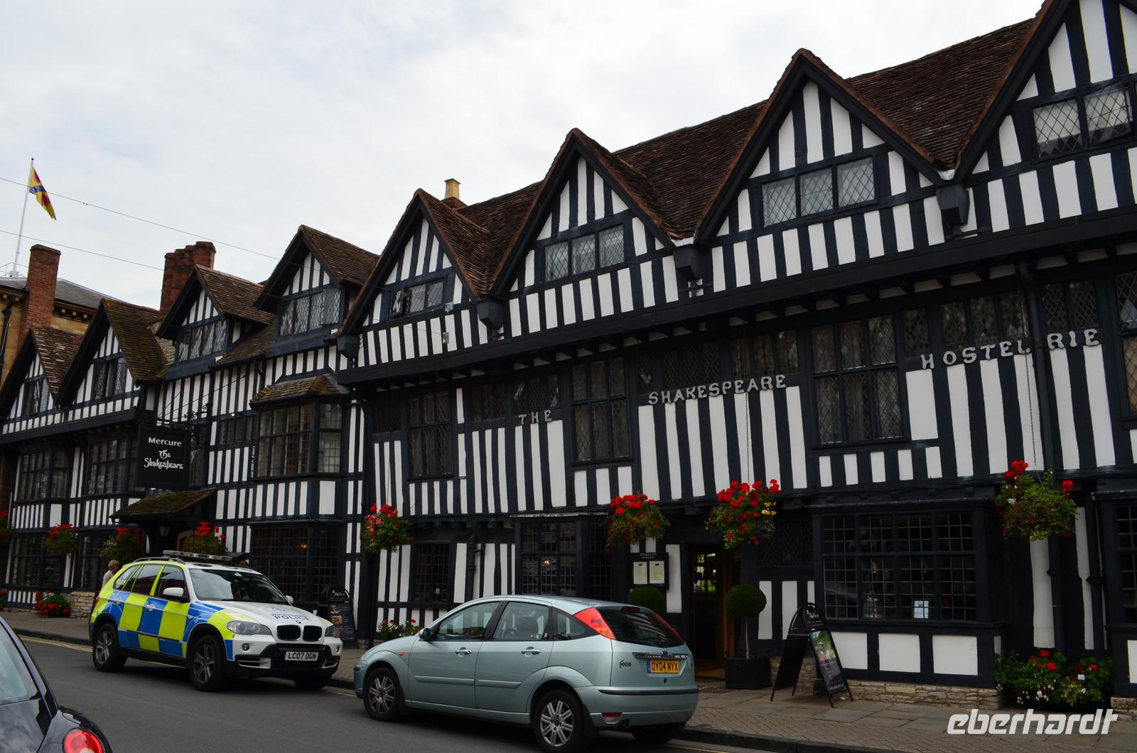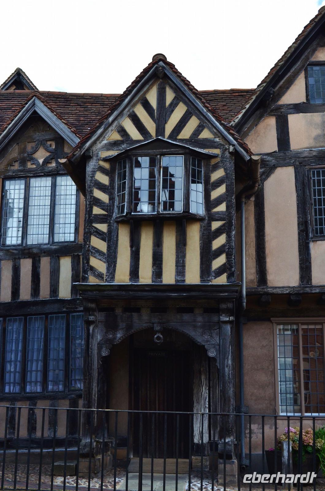 Am späten Vormittag dann die Ankunft auf dem Parkplatz am Besucher- und Freizeitzentrum in Stratford-upon-Avon. Von hier laufen wir gemeinsam in die Stadt, vorbei am Glowell Memorial und dann mit Stadtplänen aus der Info ausgestattet weiter in die Fußgängerzone zum Geburts- und Elternhaus von William Shakespeare. Von hier durch die romantischen Gassen zum Royal Shakespeare Theatre und zum Swan Theatre - danach weiter zur Trinity Church. Leider konnten wir das Grab Shakespeares nicht besichtigen, da für eine Hochzeit die Kirche gerade geschlossen war. Wenigstens ist ein kurzer Blick in den Innenraum möglich. Von der Kirche danach zurück in die Stadt, zum New Place, zu Nash's House und zur Guild Hall.