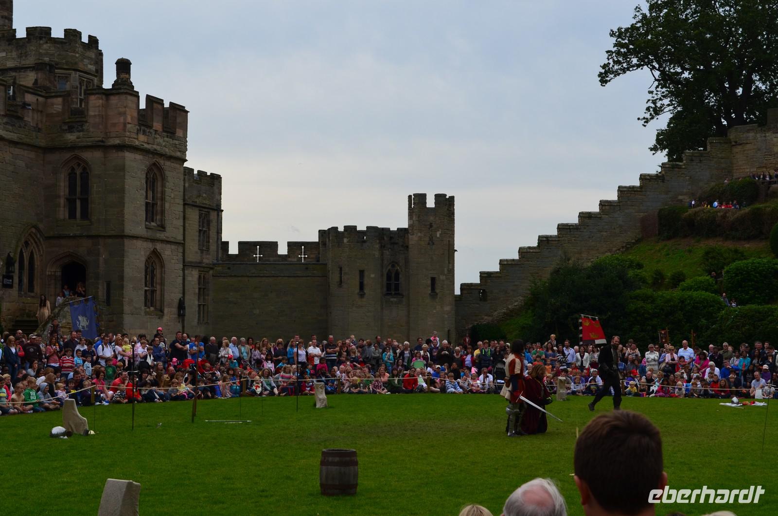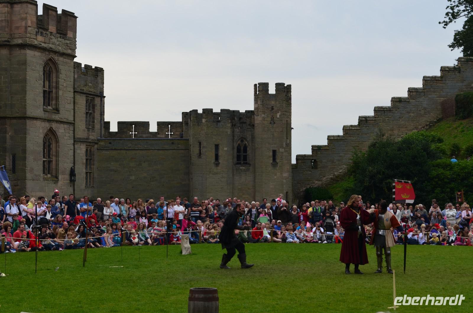 Ein gemeinsamer Spaziergang führt uns zum Schlossgelände, wo die Shows schon laufen - die Rittershow im Schlosshof, später dann die Raubvogel-Show und 16:30 Uhr die Trebuchet-Show - das Abfeuern einer Feuerkugel mit dieser großen Schleuder. Reich an Erlebnissen fahren wir zurück ins Hotel.