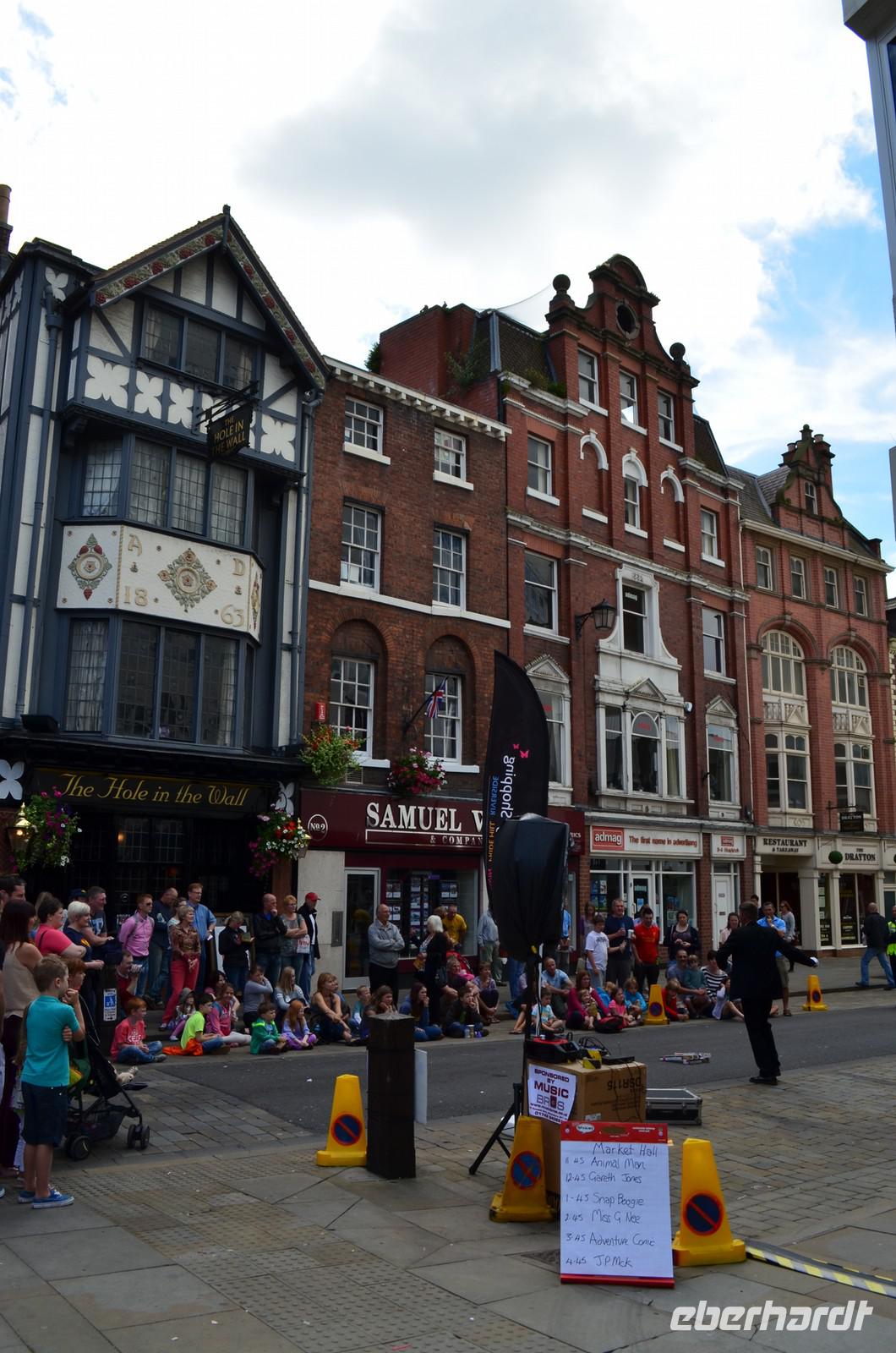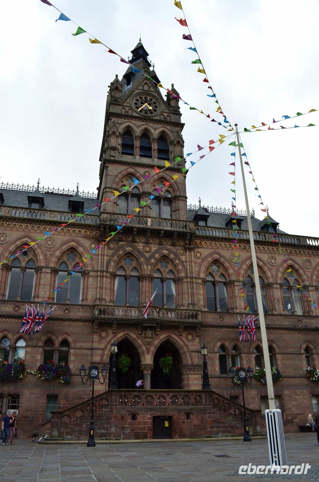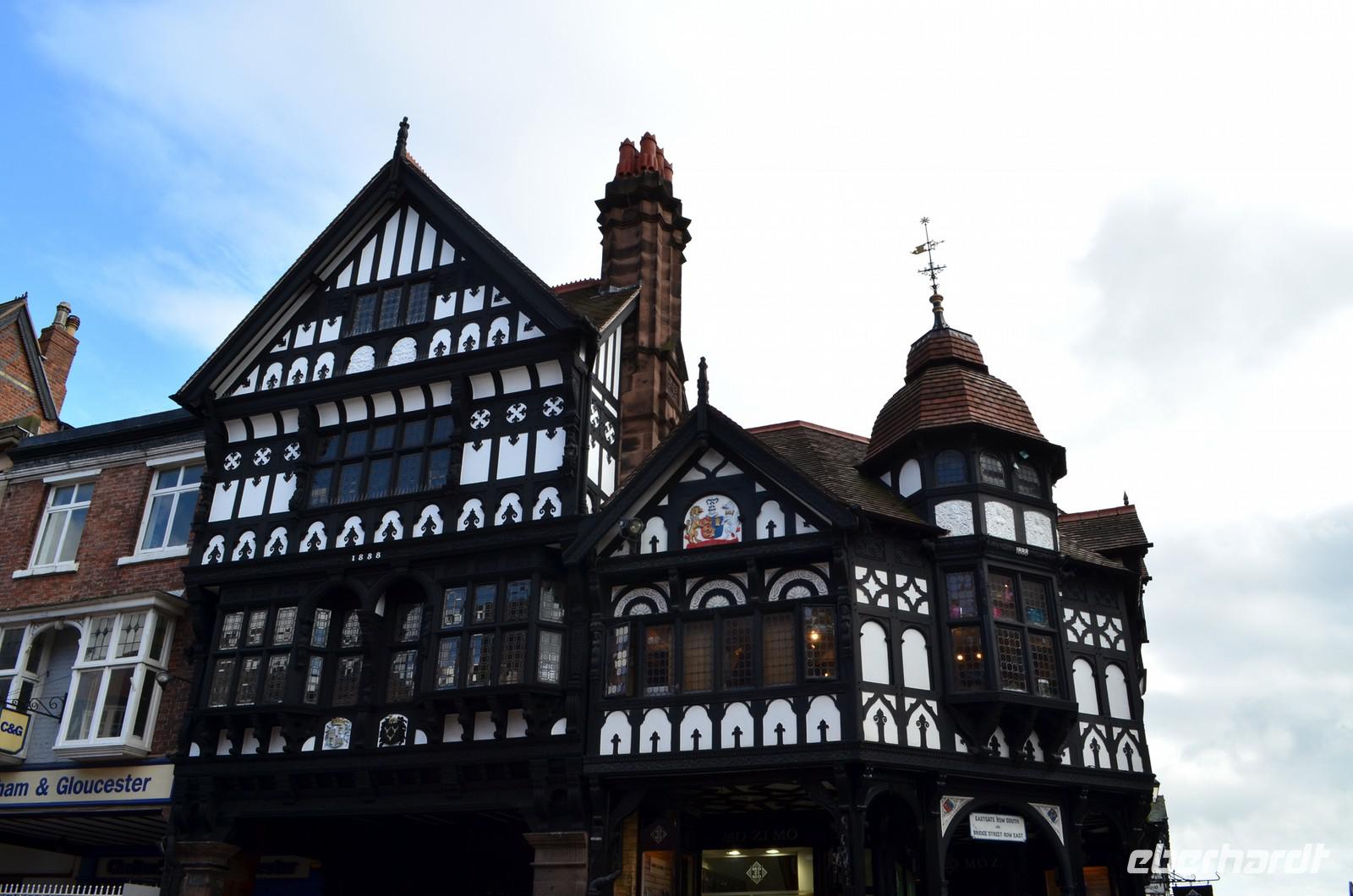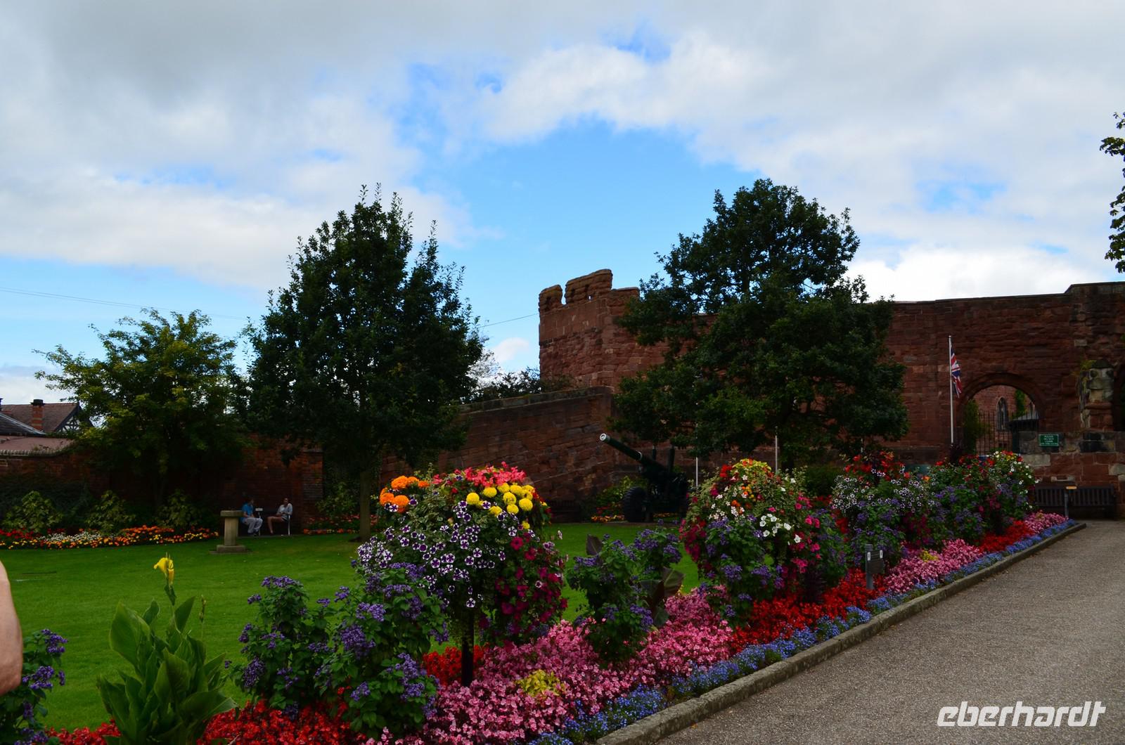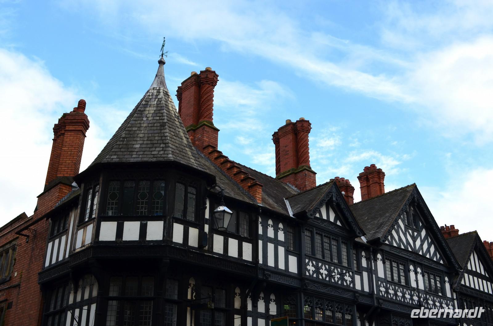 Über die Landstraße geht es weiter durch das Tal des Servern nach Shrewsbury, dieser wunderschönen historischen Stadt in der Schleife des Severn. Über 600 Gebäude stehen hier unter Denkmalschutz. Von der Gästeinformation im „Alten Haus" gehen wir gemeinsam durch die malerischen Gassen der Stadt, über den Marktplatz, zum Castle und durch die Fußgängerzone. Herrlicher Blumen-schmuck in den Straßen und im Schlossgarten lässt die Geburtsstadt und den Wirkungsort von Charles Darwin erstrahlen und macht der Stadt als mehrfache englische Blumenstadt alle Ehre. Am Nachmittag das nächste schöne Ziel - die Stadt Chester. Peter, unser Gästeführer empfängt uns hier herzlich und bei seinen Erzählungen und Erläuterungen befinden wir uns umgehend im Stadtrundgang. Wunderschönes Wetter und strahlender Sonnenschein taucht die Stadt während unseres Spazierganges in besonders schönes Licht. Castle, Stadtmauer, römische Ausgrabungen, die Kathedrale und das Rathaus sind nur einige der sehenswerten Stationen. Chester ist für seine „Rows", die aus dem Mittelalter stammenden Fachwerkkolonnaden, die in Stockwerkhöhe liegen, bekannt. Wir nutzen die Freizeit und genießen den Ausblick darauf aus einem der zahlreichen Cafés.