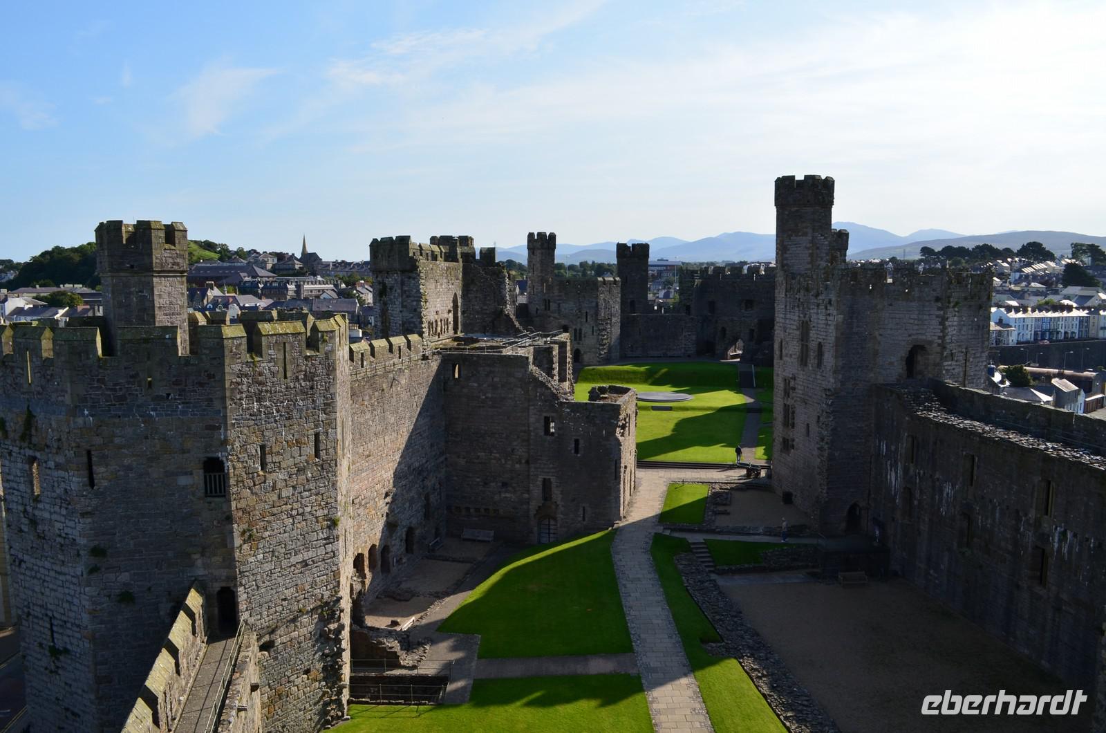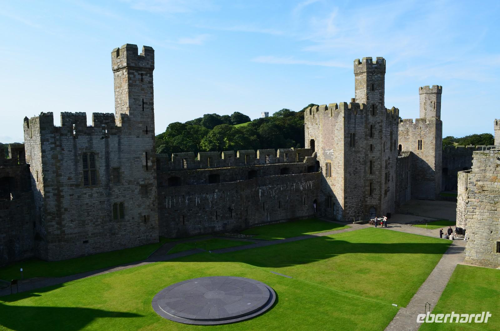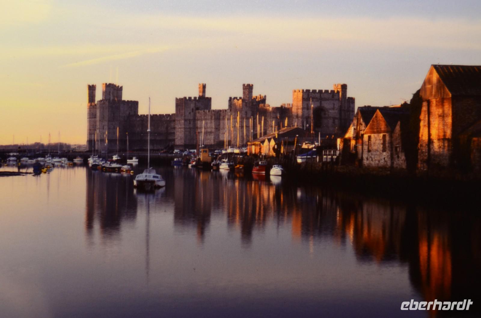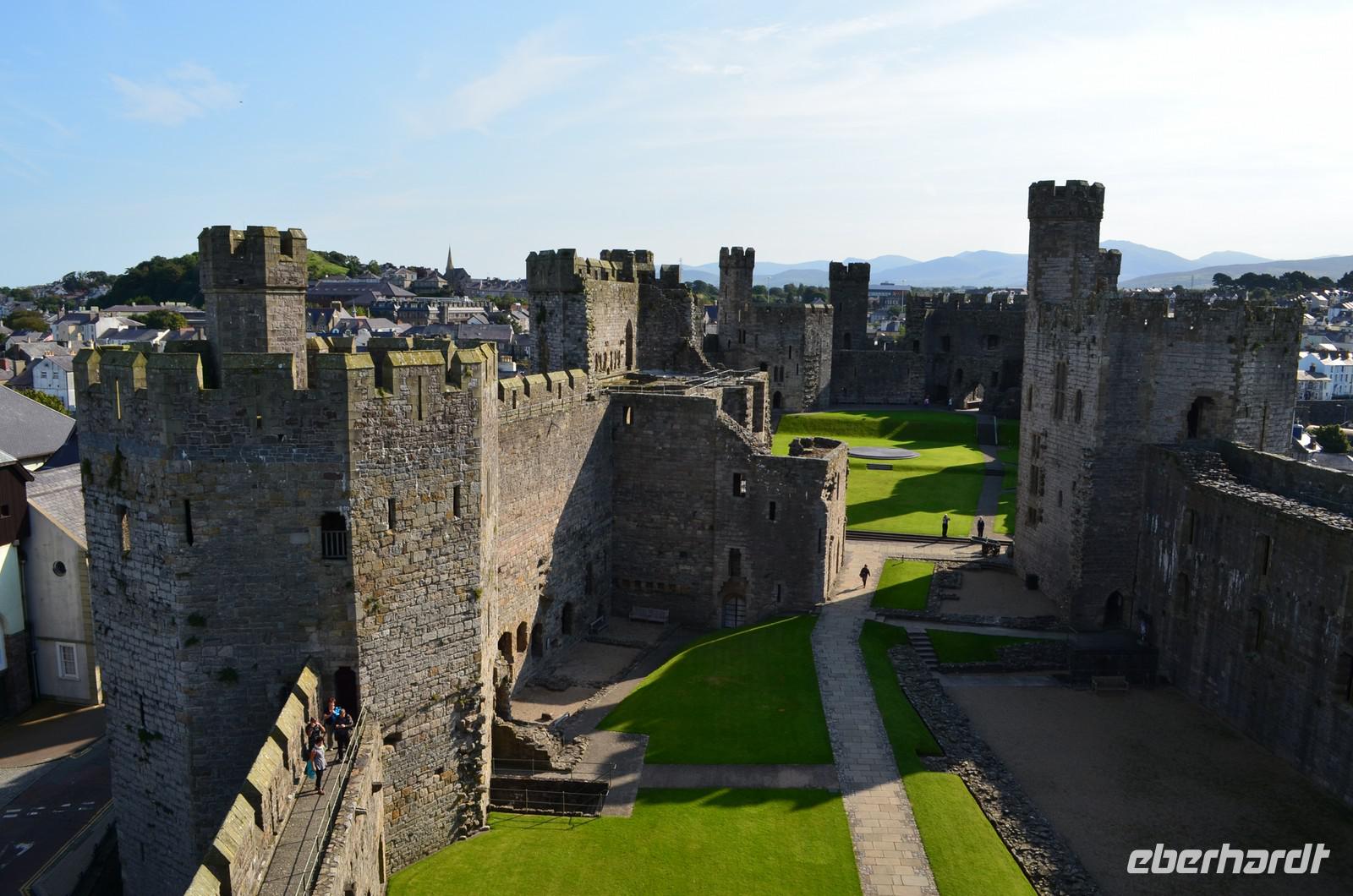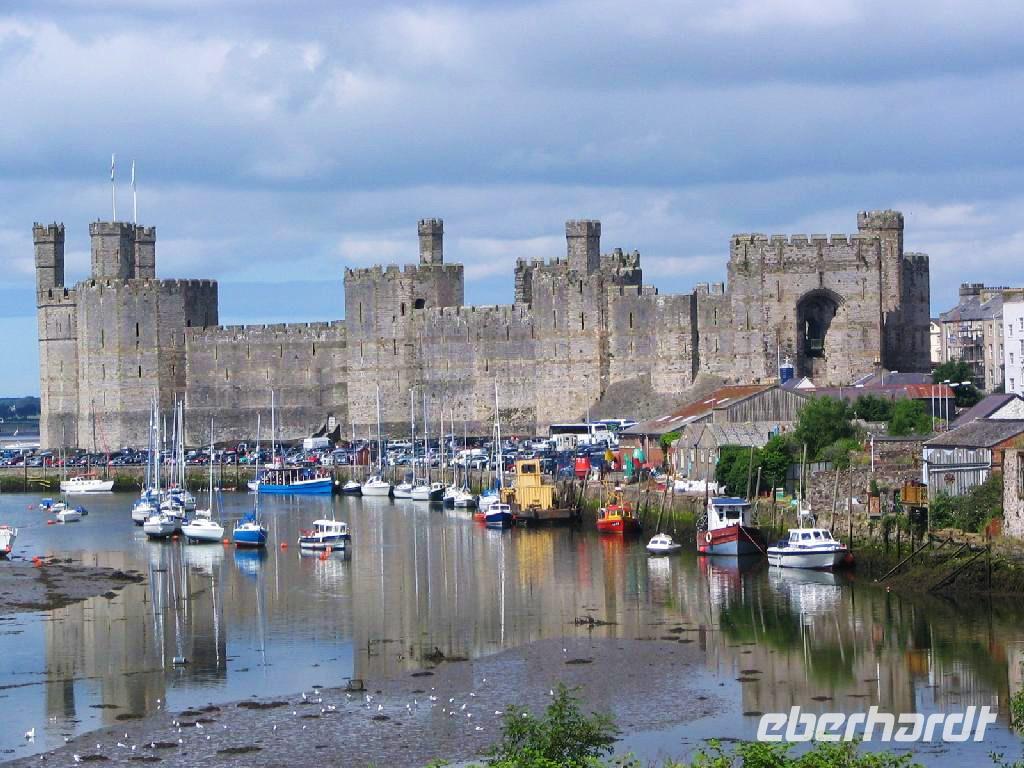 Wieder super Wetter und wir gehen heute auf Rundfahrt durch Nordwales. Auf der Küstenstraße kommen wir an den ersten Festungen des Eisernen Ringes vorbei, den der englische König Edward I. rings um Wales bauen ließ. Vorbei an Conwy fahren wir bis Caernarfon, der Stadt nahe am Übergang zur Insel Anglesey. Hier besichtigen wir heute das gut erhaltene Castle, in dem der Prinz of Wales gekrönt wird, zuletzt Prince Charles 1969.