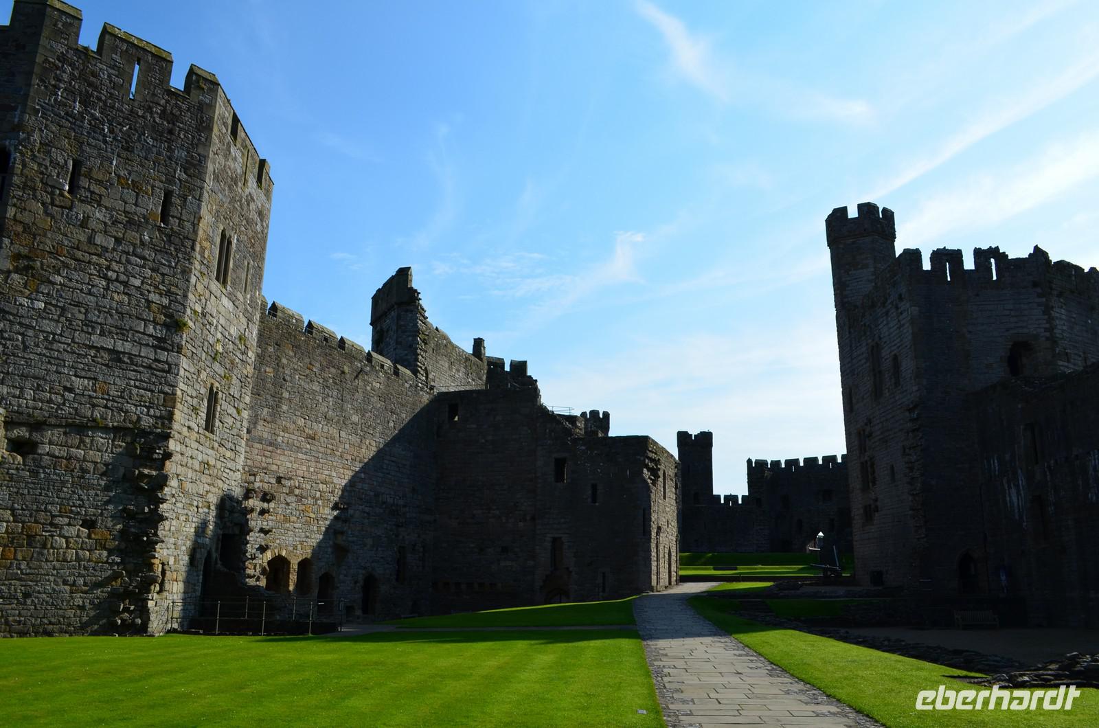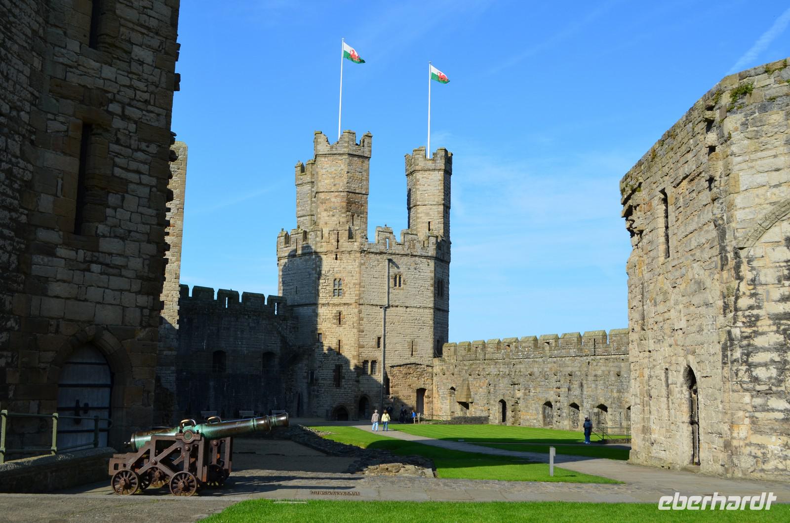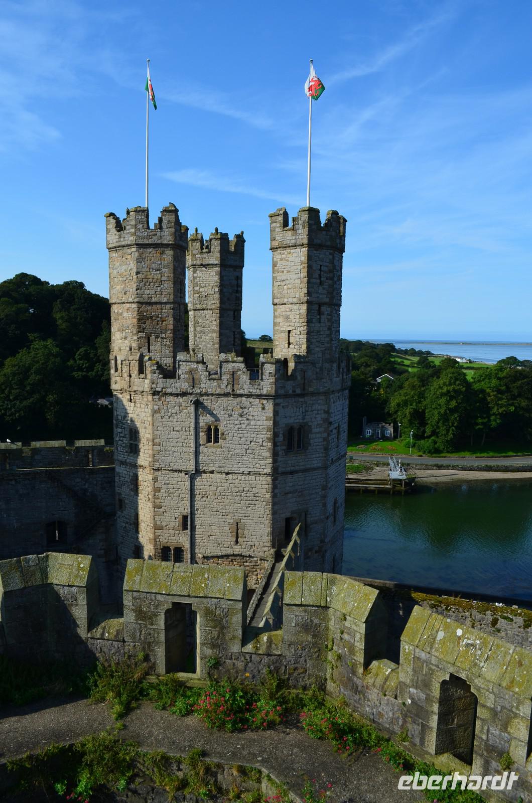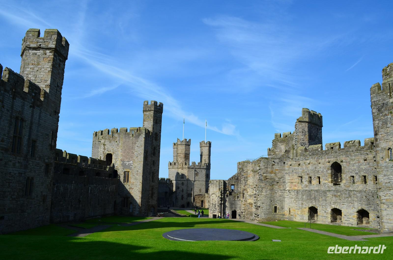 Wieder super Wetter und wir gehen heute auf Rundfahrt durch Nordwales. Auf der Küstenstraße kommen wir an den ersten Festungen des Eisernen Ringes vorbei, den der englische König Edward I. rings um Wales bauen ließ. Vorbei an Conwy fahren wir bis Caernarfon, der Stadt nahe am Übergang zur Insel Anglesey. Hier besichtigen wir heute das gut erhaltene Castle, in dem der Prinz of Wales gekrönt wird, zuletzt Prince Charles 1969.