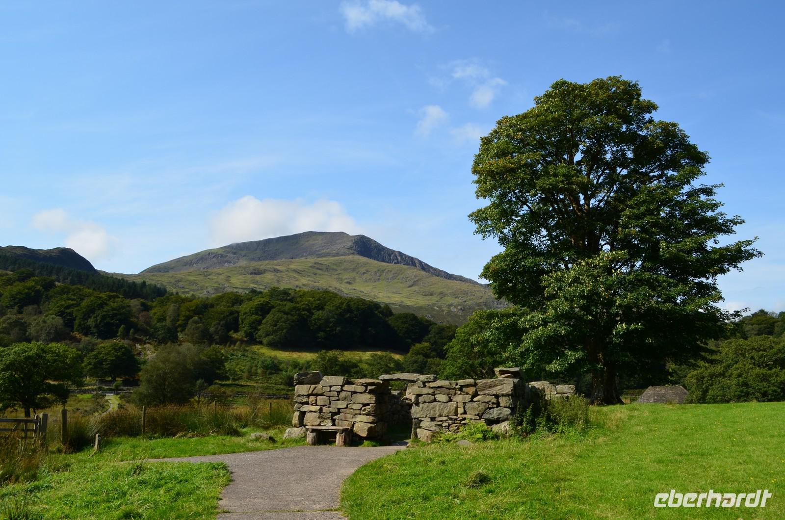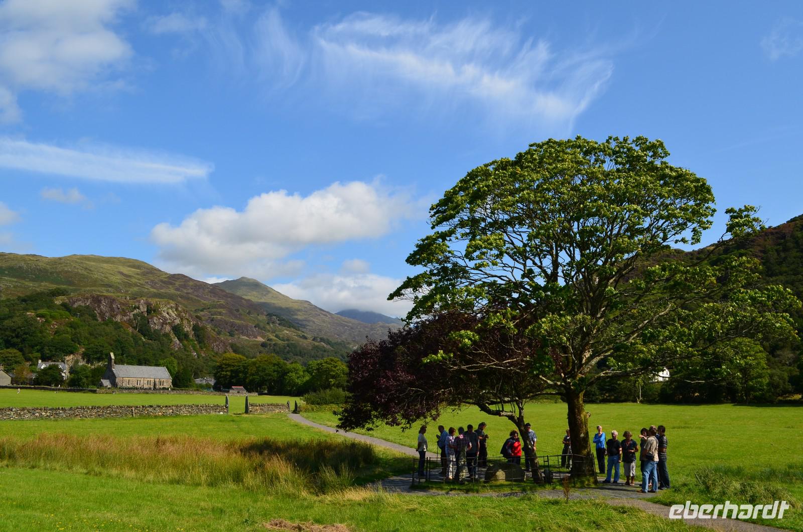 Snowdon Mountain und am Lynn Gwellyn und weiter bis Beddgelert, hier spazierten wir zum legendären Grab des Hundes und blicken in die wunderschöne Landschaft mit den Hängen voll blühender Heide.