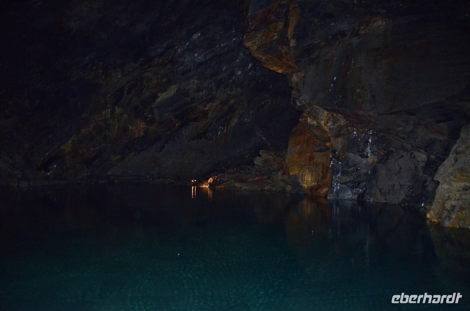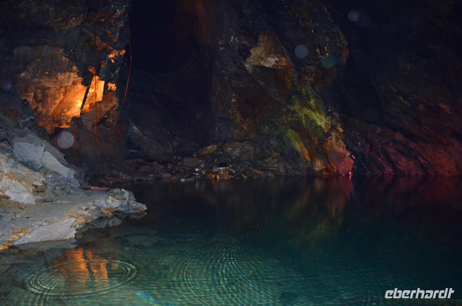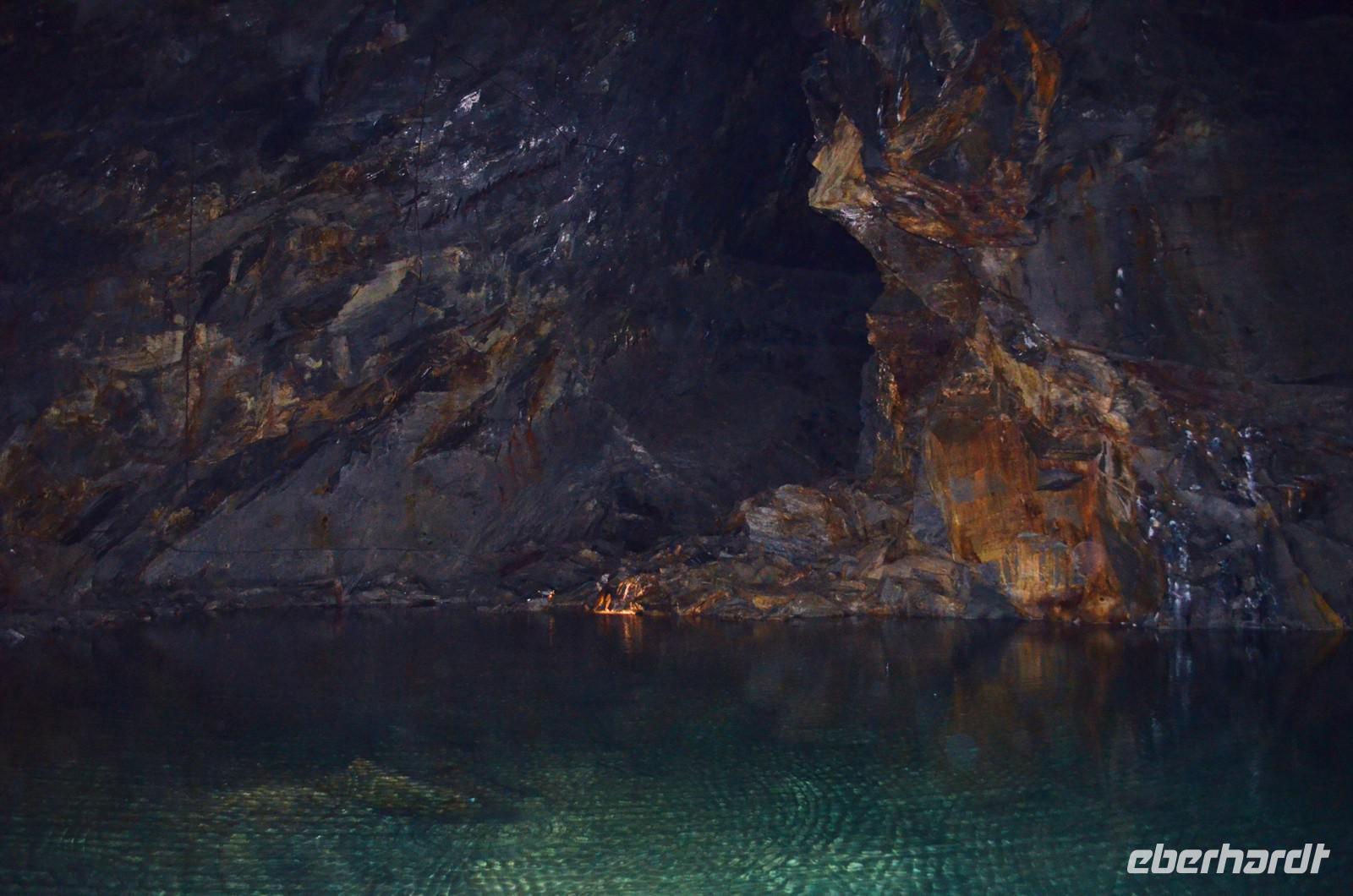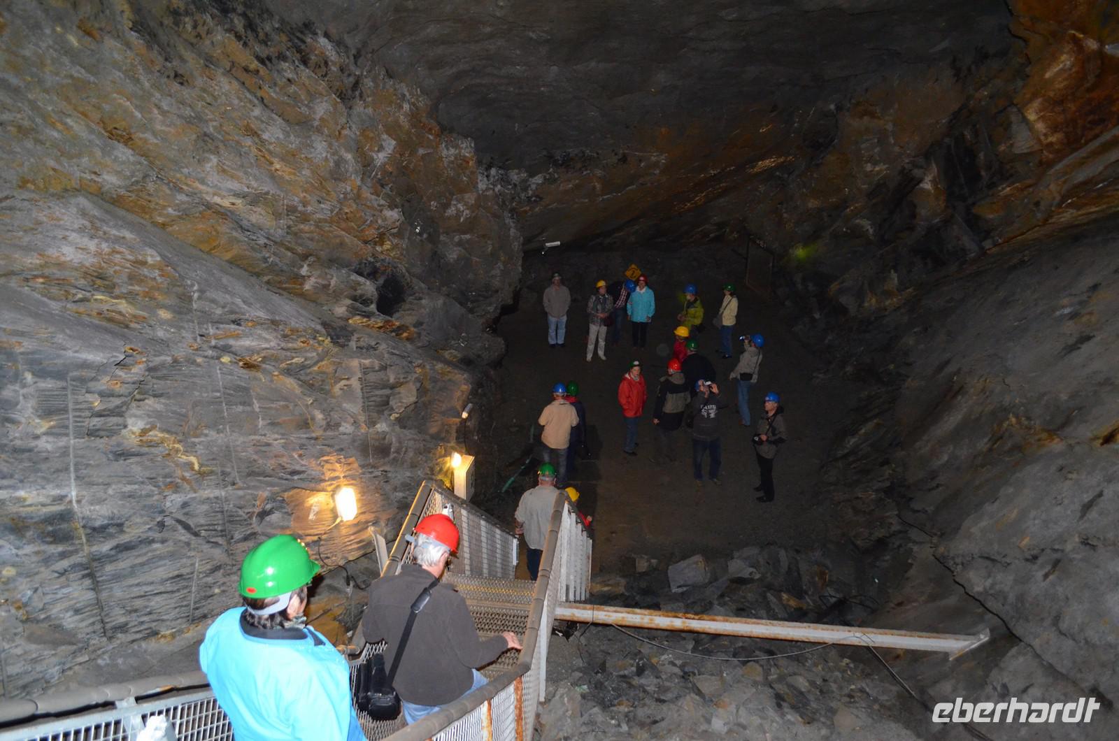 Am Nachmittag haben wir ein weiteres besonderes Abenteuer vor uns, den Besuch der Schiefermine Slate Llechwood Caverns. Mit der Minenbahn geht es hinein ins Bergwerk. Dem Steiger vor Ort schenke ich auf dessen Wunsch meinen eberhardt-Schlüsselanhänger.