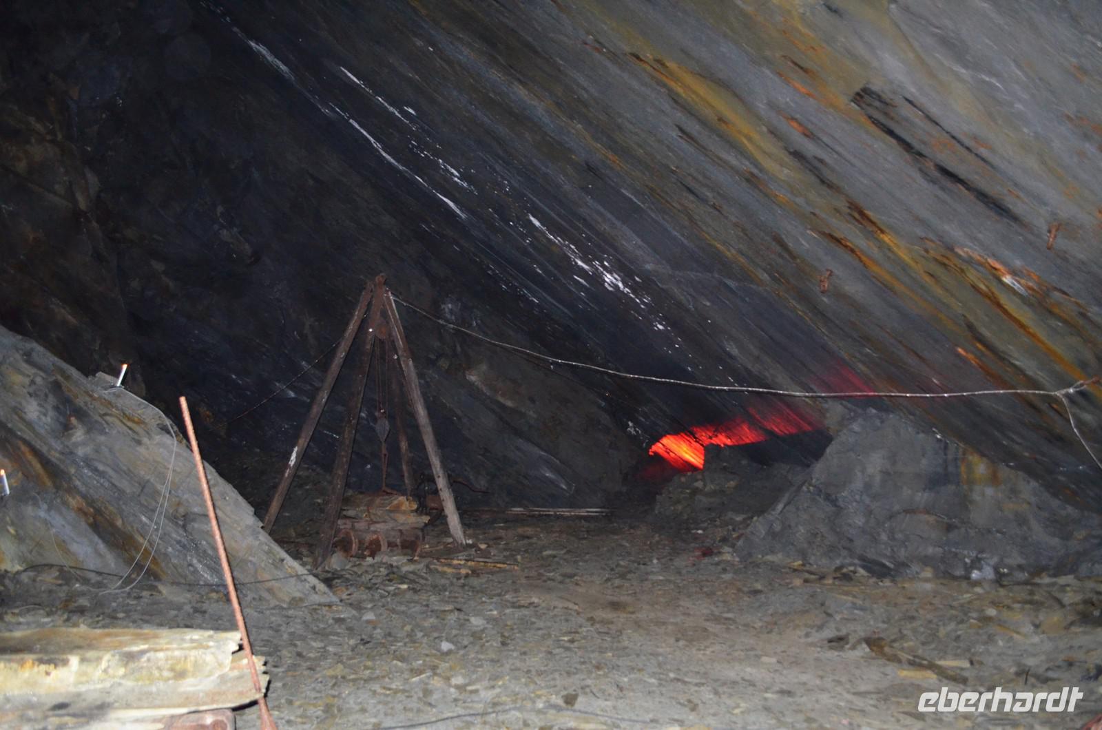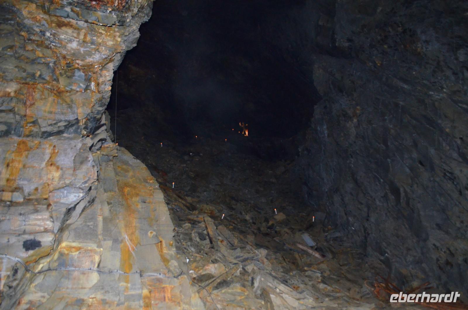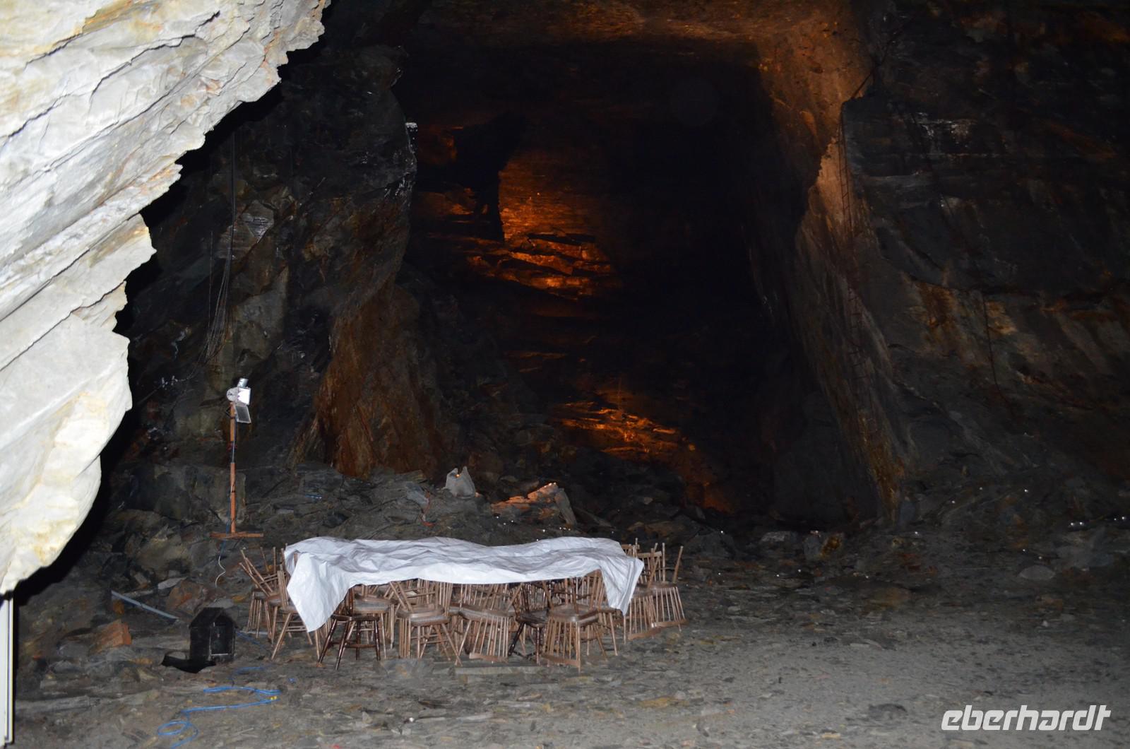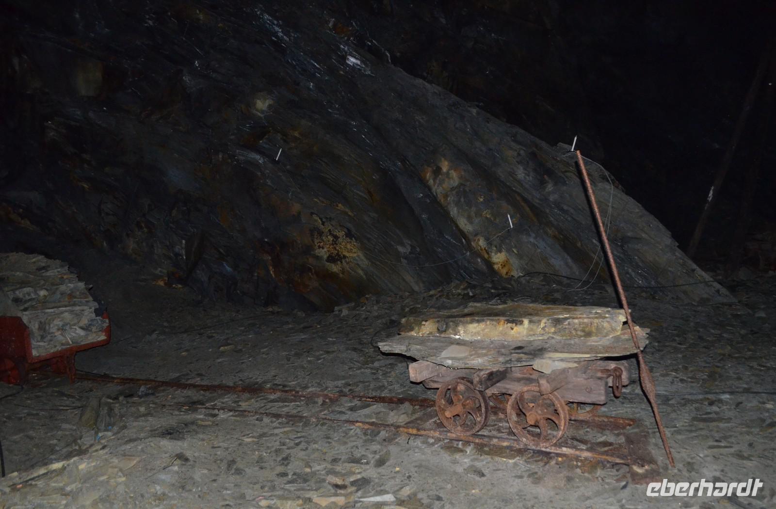 Am Nachmittag haben wir ein weiteres besonderes Abenteuer vor uns, den Besuch der Schiefermine Slate Llechwood Caverns. Mit der Minenbahn geht es hinein ins Bergwerk. Dem Steiger vor Ort schenke ich auf dessen Wunsch meinen eberhardt-Schlüsselanhänger.