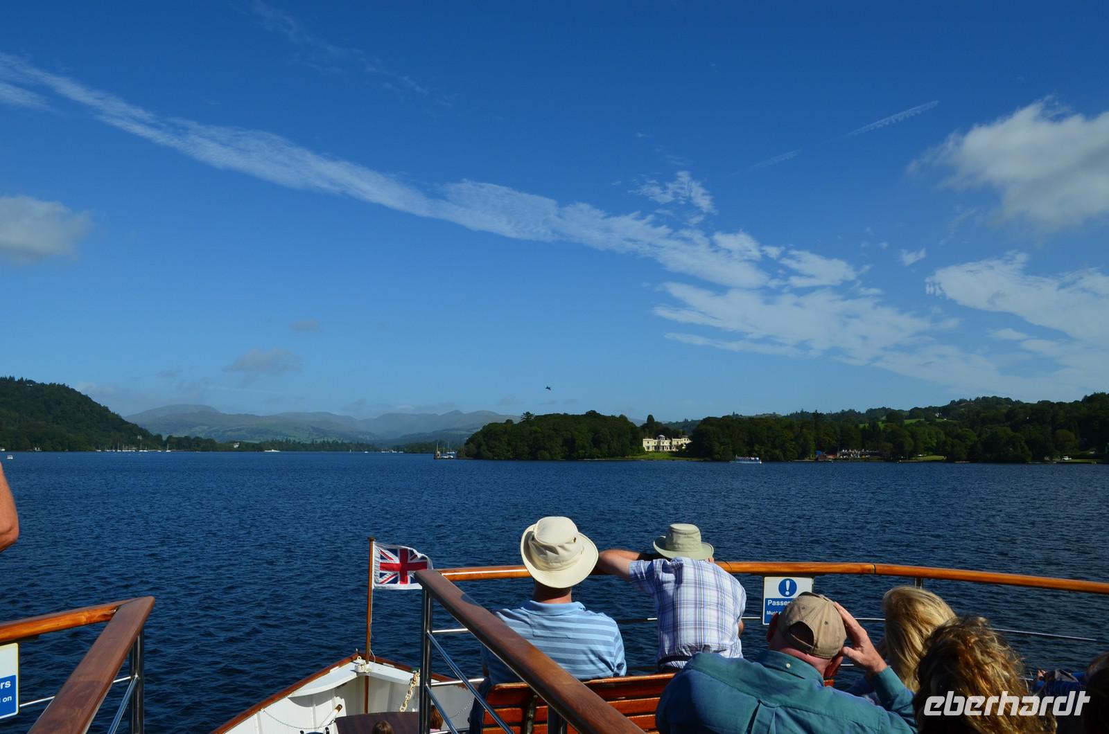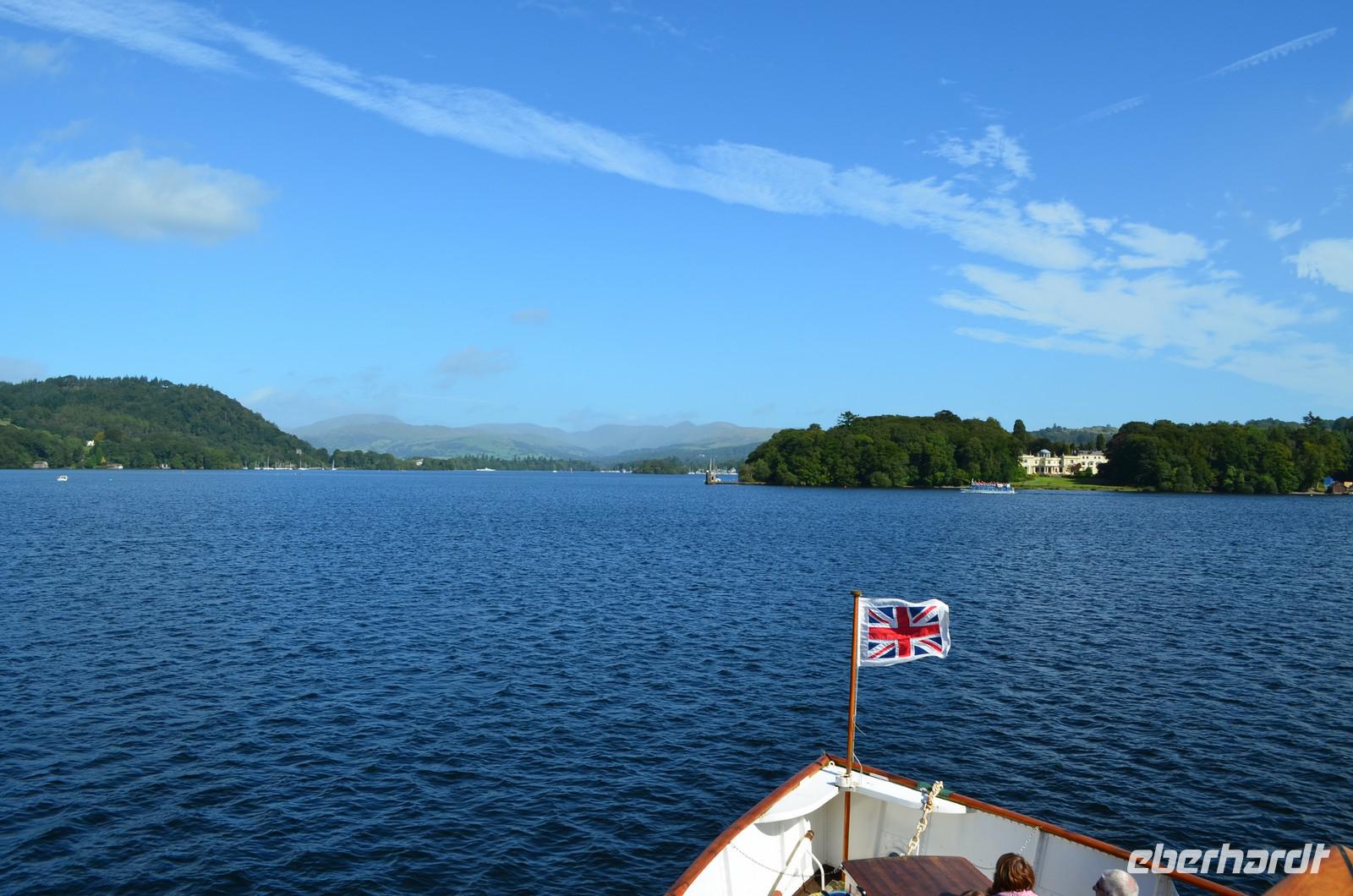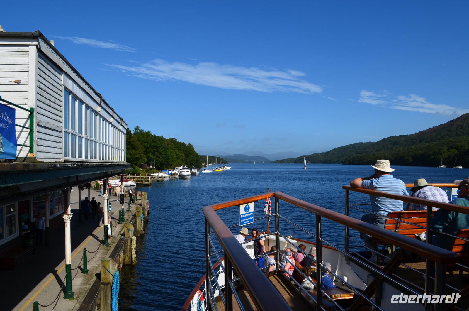 Am Lake Windermere, dem größten der Seen, angekommen bieten sich zuerst viele imposante Fotogelegenheiten: Der romantisch gelegene See, die Einfahrt des Nostalgie-Dampfzuges der Lakeside und Haverthwaite Steam Railway und schließlich das Ausflugsschiff der Lakecruises.