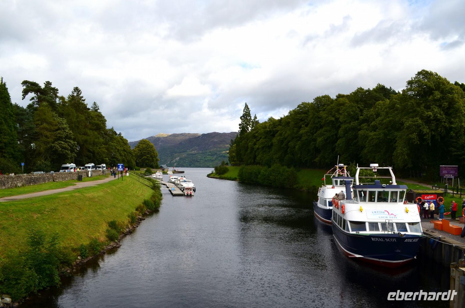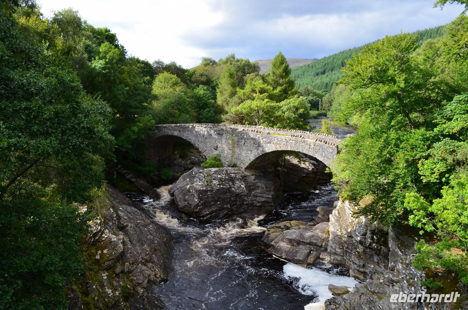 In Fort Augustus besichtigen wir die Staustufen des Caledonian Canals und danach noch die Schlucht mit der alten Brücke und Stromschnellen bei Invermoriston (The Old Smithy).