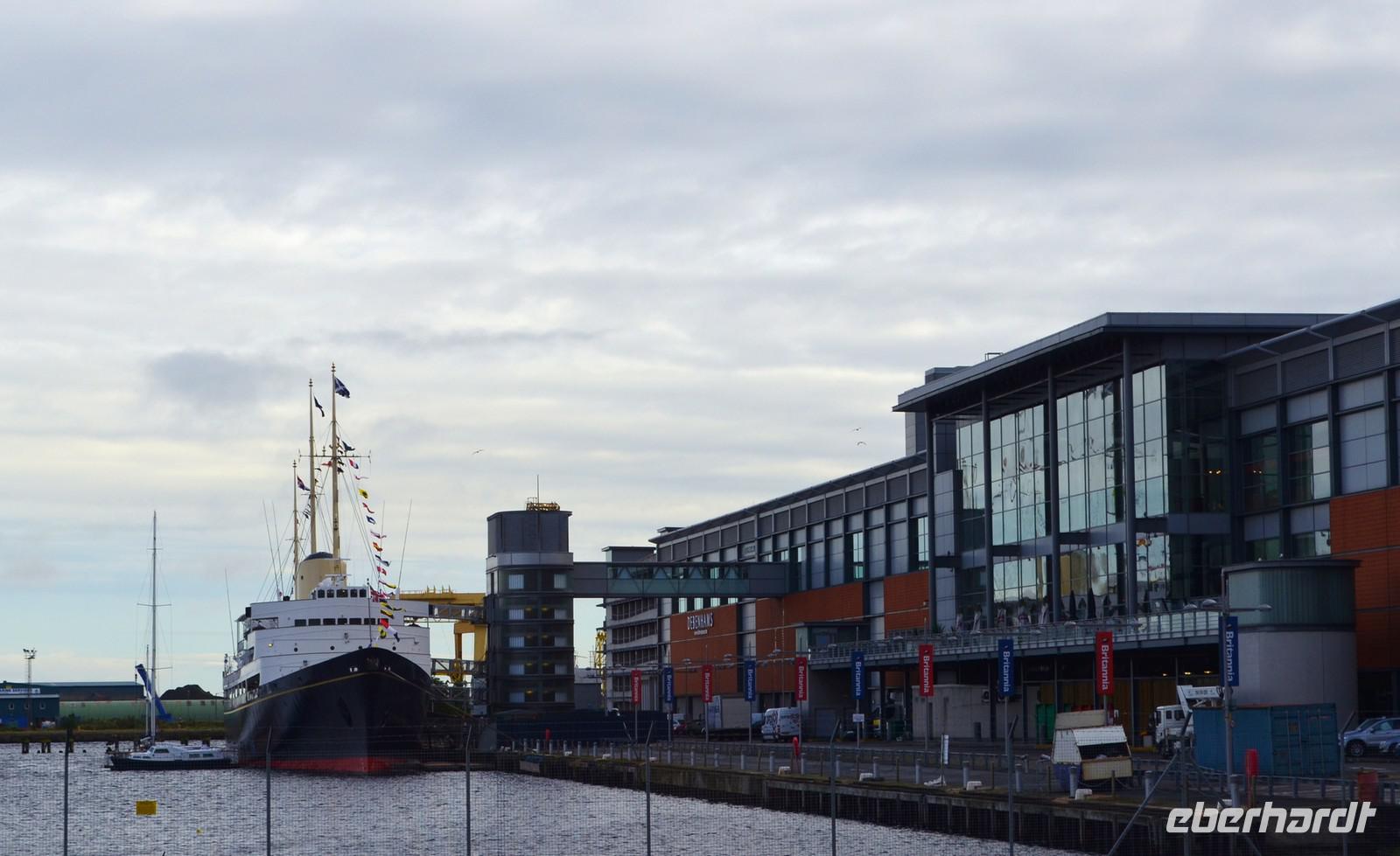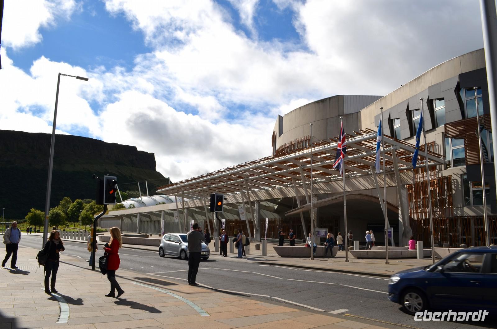 Wir frühstücken, das Wetter ist aufklarend und schließlich ist wunderschöner Sonnenschein. Wir machen mit Kareen unsere Stadtrundfahrt durch das schöne Edinburgh. Stopps unternehmen wir nahe der königlichen Yacht Britannia in Lith, am Holyrood Palace, dem Schloss nahe dem neuen schottischen Parlaments-gebäude.