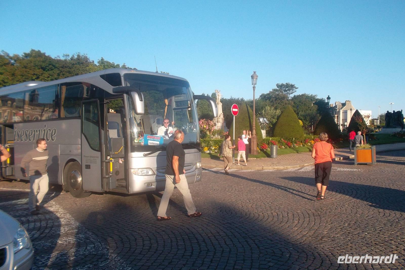 Wie immer ging es früh am Morgen los in Dresden, aber erst ab Eisenach hatten wir unsere komplette Gästezahl von 28 Englandfahrern erreicht. Ab Eisenach hatten wir auch unseren Buschauffeur Mike Richter. Durch die Soester Börde und das Ruhrgebiet erreichten wir die Niederlande. Nach einer knappen Stunde war unser Nachbarland in Höhe Eindhoven durchquert und wir erreichten Belgien. Vorbei an Antwerpen, Gent und Brügge waren wir unterwegs zu unserem Tagesziel Calais. Unterwegs gab ich ein paar Informationen zur Strecke und zur Reise und wie immer haben wir auch einen ganz kleinen französischen Sprachkurs gemacht. Schließlich würden wir den ersten Abend in der französischen Hafenstadt Calais verbringen und dort muss man ja zum Beispiel ein Bier zum Abendessen bestellen können ... Wie immer war es ein recht weiter Weg bis zur nordfranzösischen Hafenstadt, von der uns am nächsten Morgen die Fähre nach „merry old England" bringen sollte. Vorbei an so manch sehenswerter belgischer und flämischer Stadt - für deren Besuch wir leider keine Zeit hatten, aber dafür haben wir ja bei Eberhardt TRAVEL die Genießerreise Belgien, die auch Antwerpen, Brüssel, Gent und Brügge zeigt - erreichten wir am Abend dann: quer durch Flandern den Norden Frankreichs. Nahe der Stadt Calais lag unser Hotel dass uns ein spätes, aber gutes Abendessen servierte und wo wir nach dem langen Tag eine entspannte Nacht verbringen konnten.