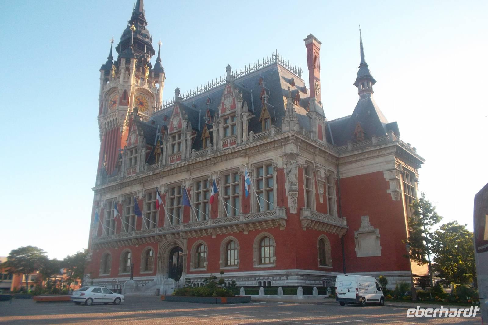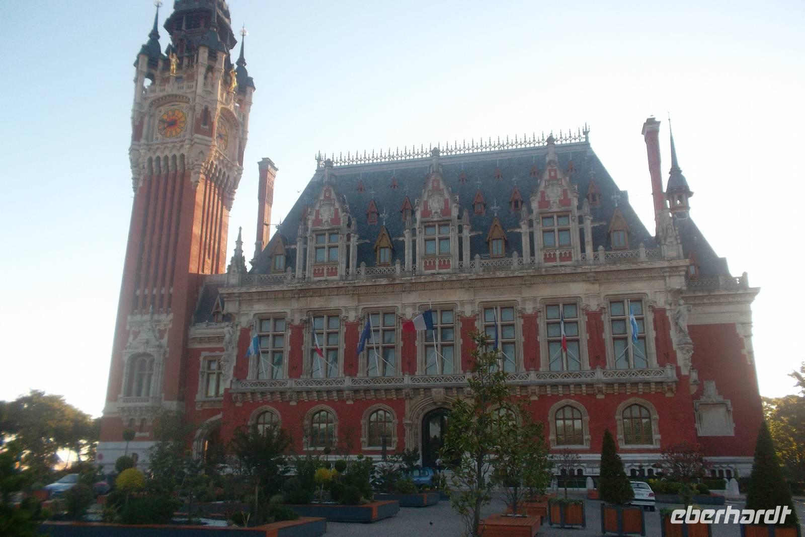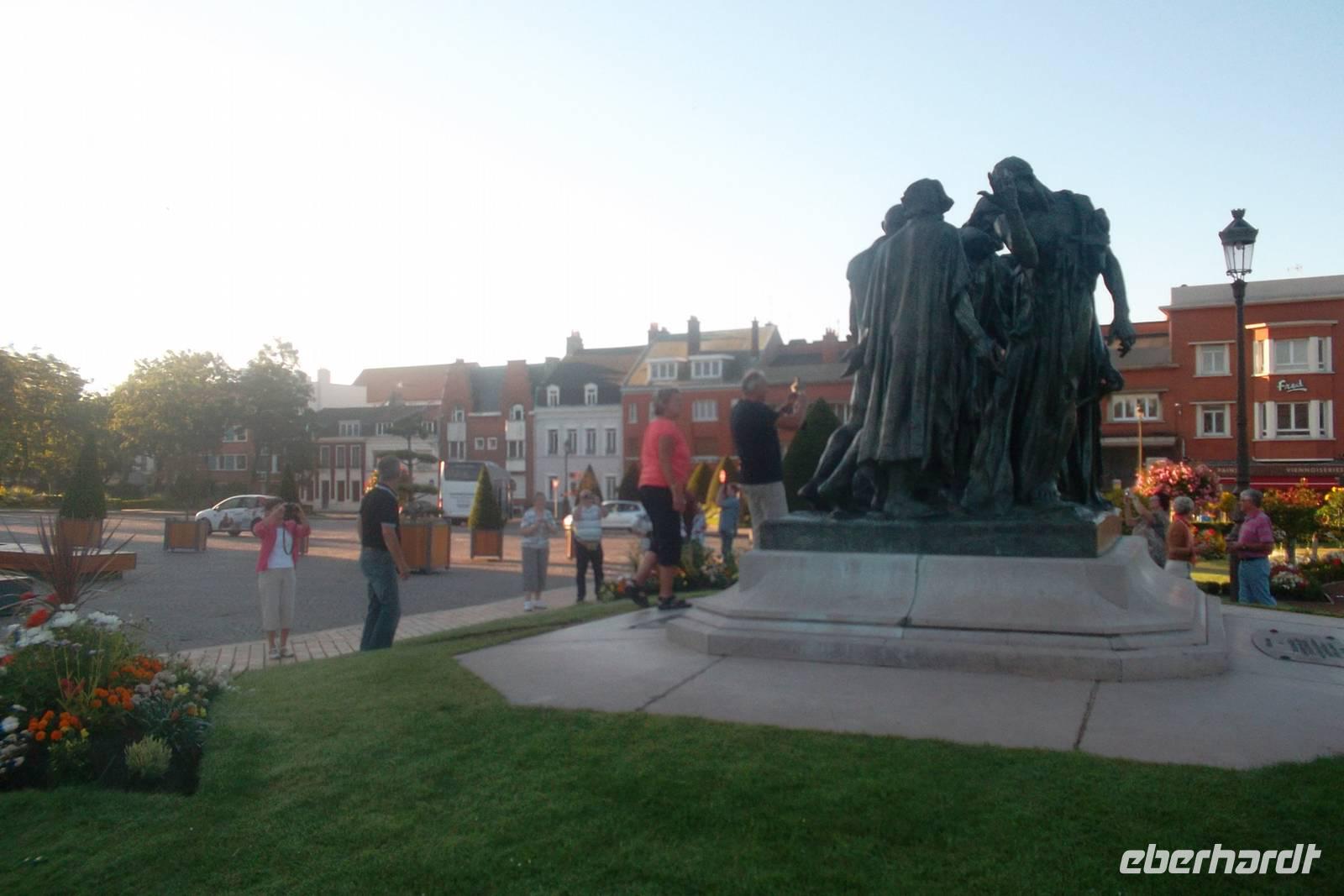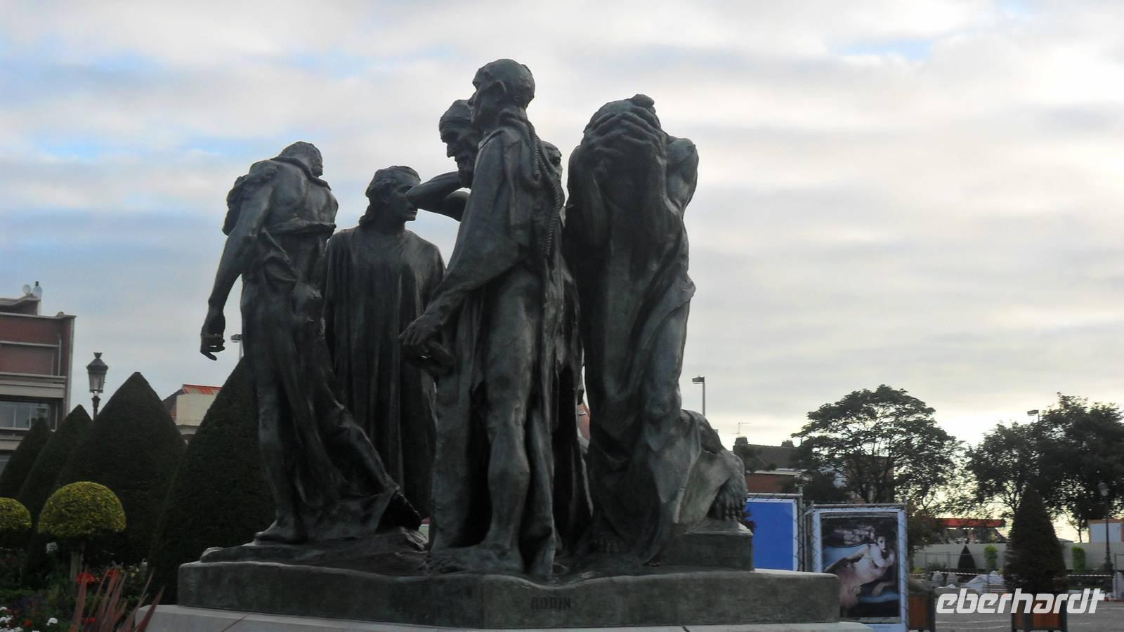 Wir brachen heute gegen 07.30 Uhr auf und nahmen uns noch die Zeit für einen Fotostopp am Neo-Renaissance Rathaus von Calais. Eher dem Manierismus zuzurechnen prunkt das gerade restaurierte Gebäude mit herrlich üppigen Formen und einer toll gepflegten Blumenanlage auf dem Vorplatz. Natürlich konnten wir auch die berühmte Figurengruppe „Bürger von Calais" des Bildhauers Auguste Rodin bewundern.