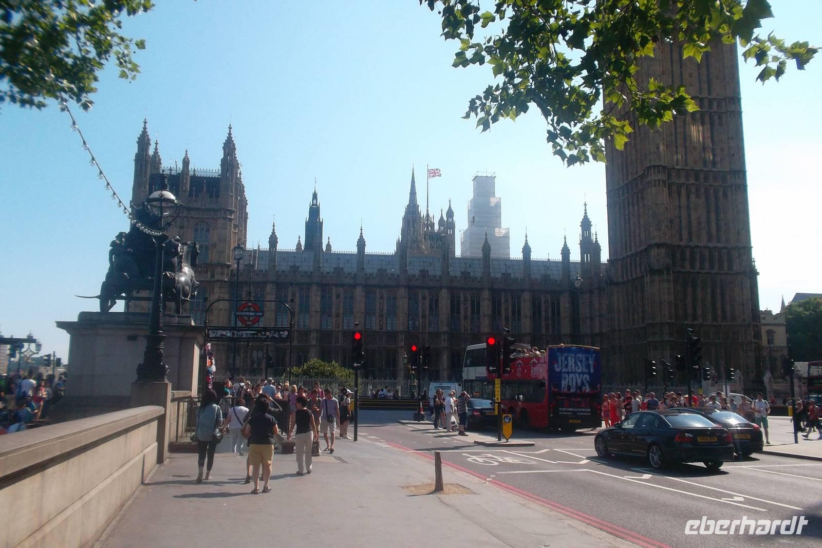 Dann trafen wir unsere örtliche Reiseleitung. Heike Ford gelang es erstaunlich gut, uns in nur zweieinhalb Stunden einen tollen Eindruck der britischen Hauptstadt zu vermitteln. Eigentlich KANN man London in so kurzer Zeit nicht kennenlernen, aber ein anregender Eindruck ist schon drin. Am Ende hatten wir noch gut anderthalb Stunden Freizeit - genau gegenüber dem London Eye und in Sichtweite des Parlamentsgebäudes und des Regierungsviertels Whitehall. Hier war also noch genügend Gelegenheit, um das Parlament, Westminster Abbey oder den Wohnsitz des britischen Premierministers in der „Downing Street 10" auf eigene Faust in Augenschein zu nehmen.