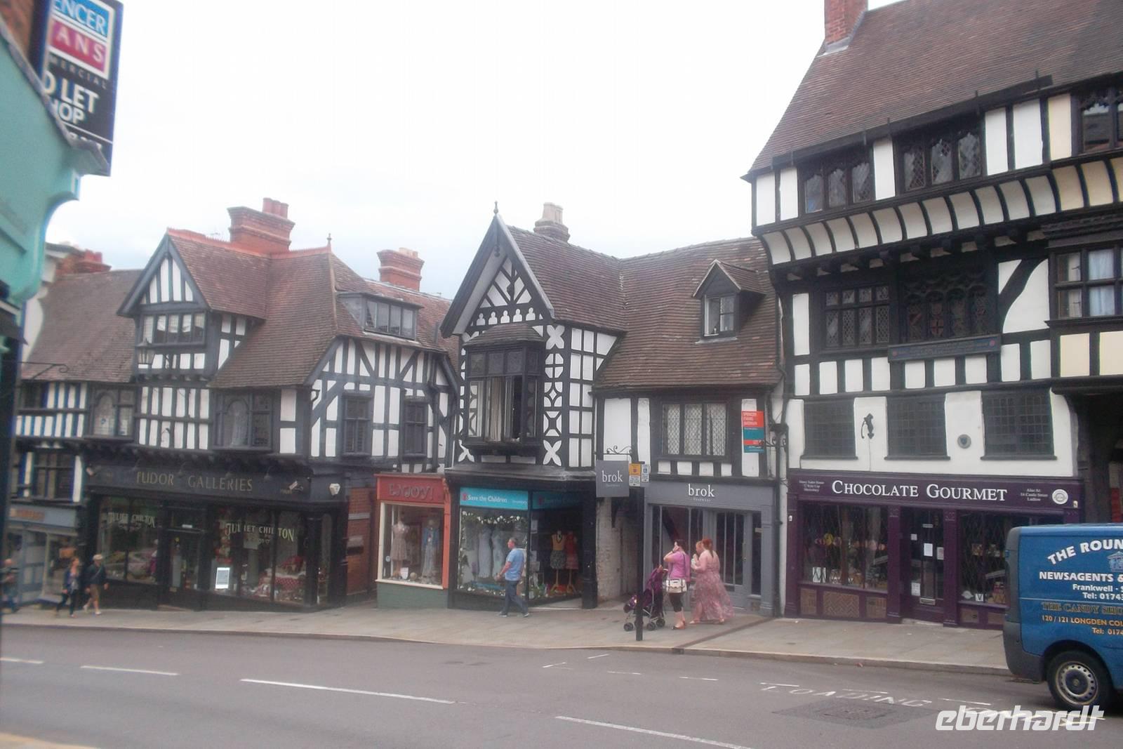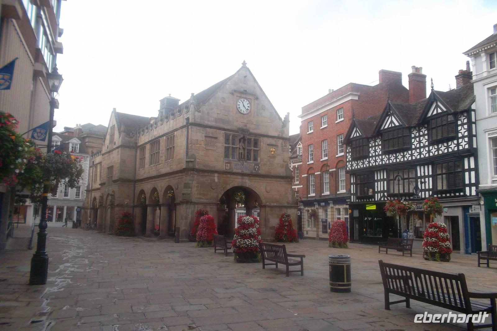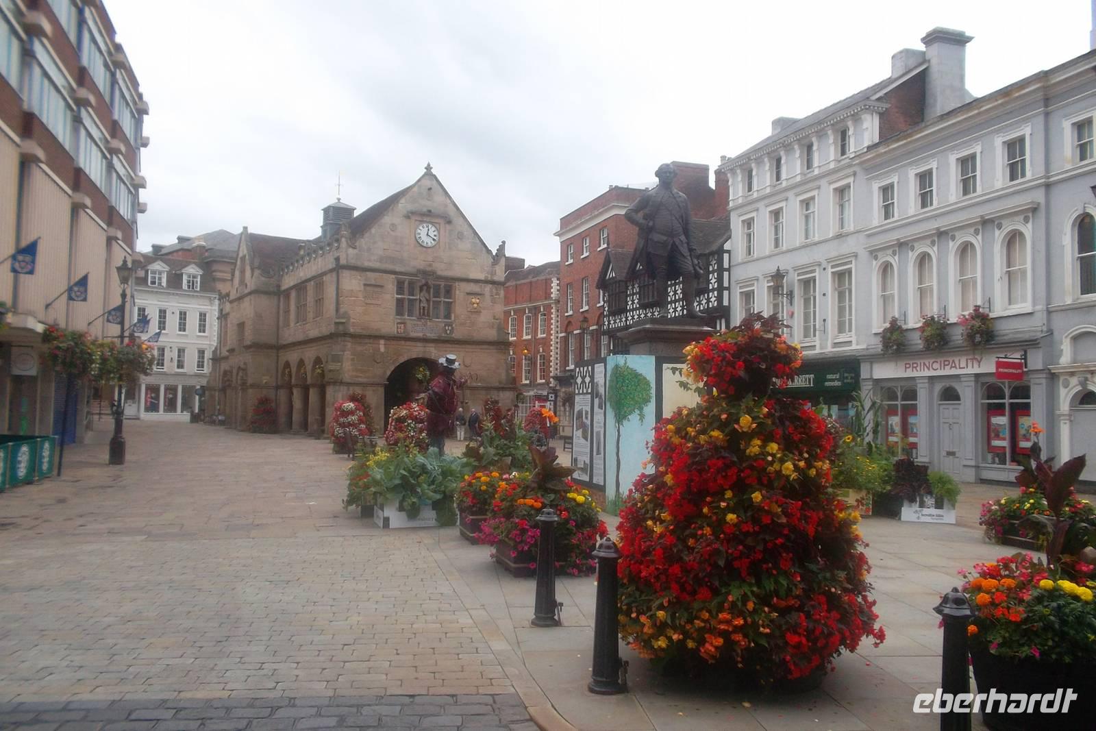 Diese Brücke ist ein tolles Unikat und dadurch sehr sehenswert. Nicht weit von hier liegt dann eine Stadt, die bei „Richtigem Reisen" unbedingt einen Umweg wert ist: Shrewsbury mit seinen 70.000 Einwohnern ist zentrale Marktstadt für ein größeres Gebiet und zieht auch die Regionen des nahen Wales an. Seine historische Markthalle steht auf einem von Fachwerkhäusern gesäumten Marktplatz und geht auf das 15. Jahrhundert zurück. Berühmtester Sohn von Shrewsbury ist der hier geborene Naturforscher Charles Darwin.