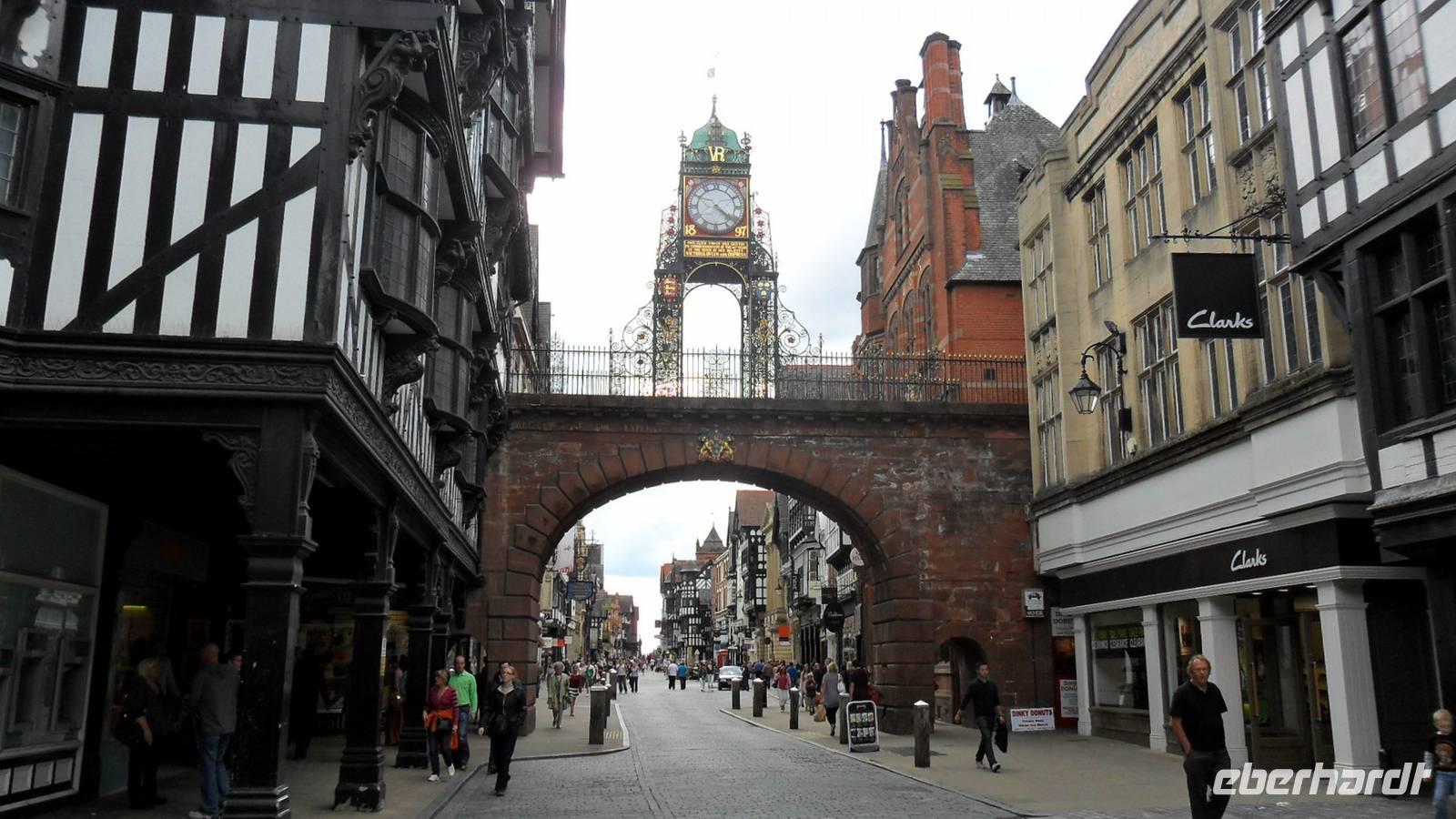 Nach dem Mittagessen am Bus erreichten wir unser Nachmittagsziel Chester .Als „Castrum Deva" von den Römern gegründet und seither ständig bewohnt, nimmt die tolle Fachwerkstadt einen besonderen Platz unter den sehenswerten Städten Großbritanniens ein. Besonders berühmt sind die „Rows", die alten Fachwerkhäuser mit zwei-etagig angelegten Durchgängen. Vielleicht sind sie die älteste „Shopping Mall" der Welt und stehen ganz einzigartig für eine Fachwerkstadt des Mittelalters. Bei einer Stadtführung sahen die Gäste die Fachwerkhäuser, die alte Stadtmauer, die schon auf die Römer zurückgeht und die ausgegrabenen Reste des alten römischen Amphitheaters sowie die Highlights der Fachwerkinnenstadt, in deren Mittelpunkt die historische Marktsäule steht. Danach gab es -an der Kathedrale angelangt - genügend Freizeit für einen individuellen Bummel oder einen Nachmittags-Tee.