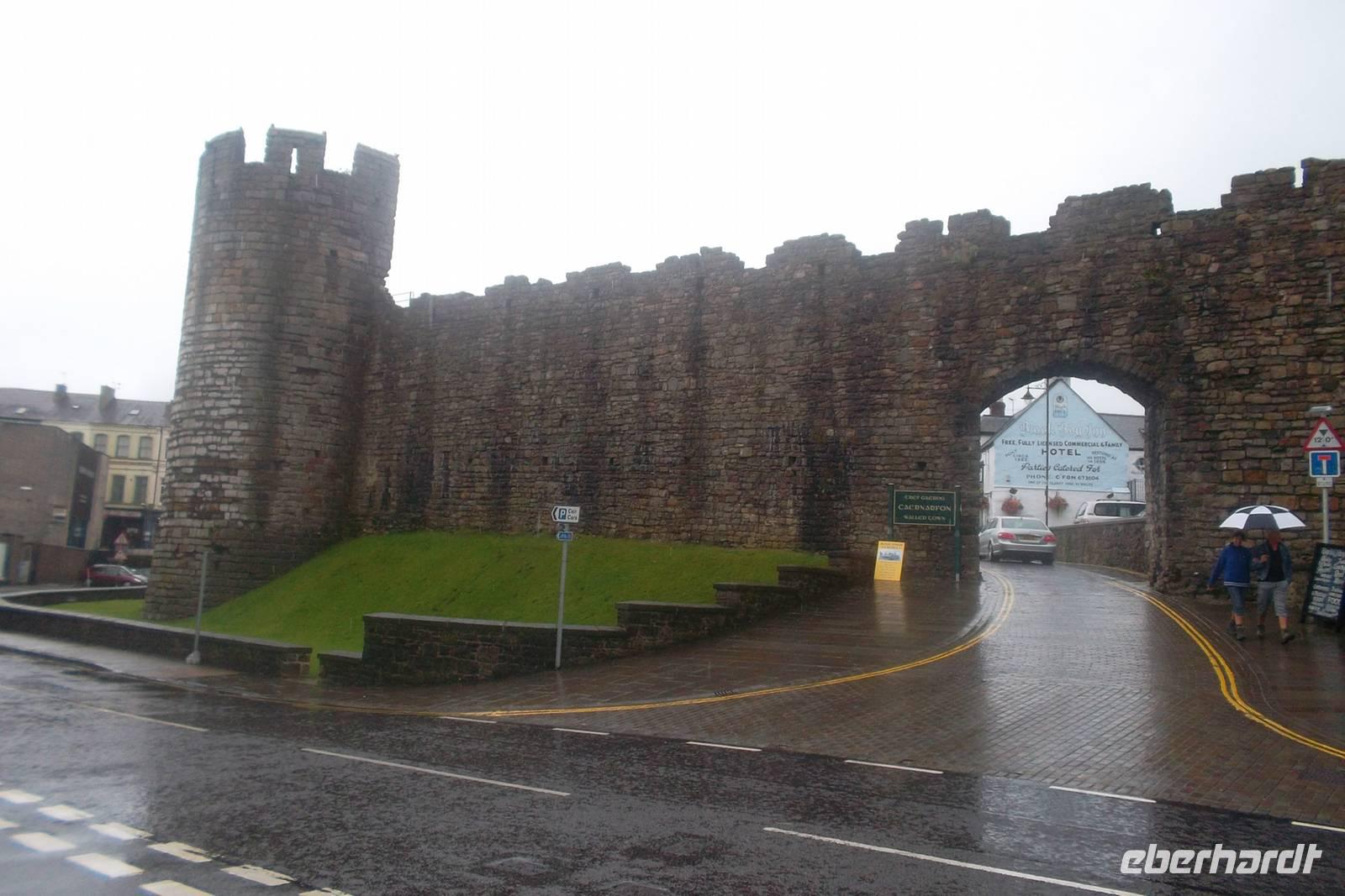 Danach verließen wir Anglesey wieder über die Britannia-Bridge und erreichten bald das malerische Städtchen Caernarfon. Dieses Städtchen hat noch große Teile seiner Stadtmauer und ist weithin bekannt für seine idyllisch am Wasser der Menai-Strait gelegene Burg. Es soll die größte Burg der Engländer in Wales gewesen sein und nach einem „Handel" mit walisische Adeligen wurde der britischen Tradition folgend hier der jeweilige Thronfolger als „Prince of Wales" in seine Rechte eingesetzt. Wir hatten in Caernarfon genügend Zeit für Burg und Stadt!