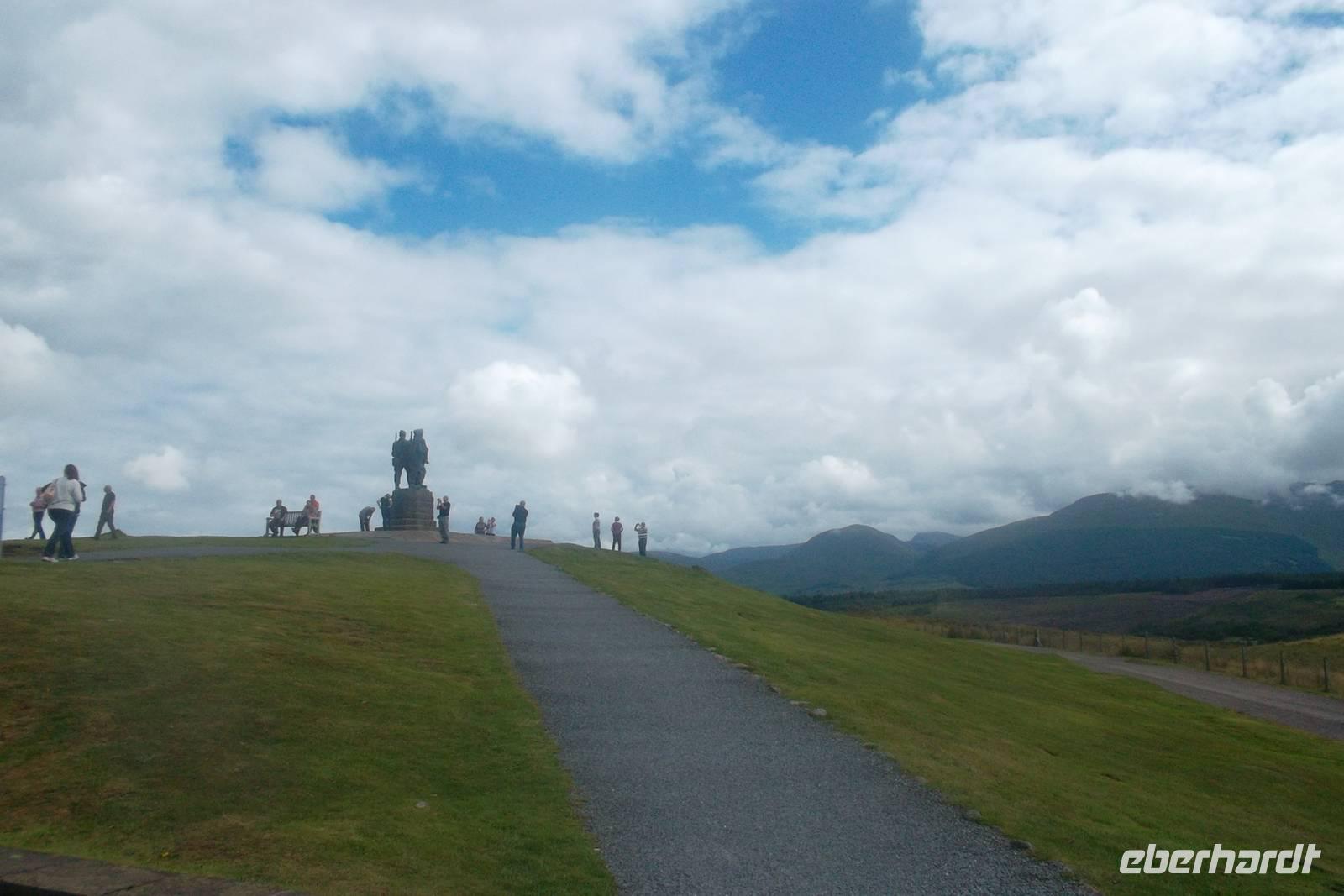 Später erreichten wir Fort William und nahmen die Gelegenheit zu einem kurzen Bummel im hübschen Städtchen wahr. Von hier ging es weiter nach Norden, wo wir einen kurzen Einkausbummel im großen Souvenirladen von Spean Bridge machten, um dann an der Straße nach Achnacarry einen Fotostopp am Kriegsdenkmal mit Blick zum Ben Nevisa, Schottlands höchstem Berg, einzulegen. Das Denkmal ist den Commandos gewidmet, die zwischen 1942 und 1945 in Achnacarry im zweiten Weltkrieg ausgebildet wurden und allen anderen Mitglieder von Kommandoeinheiten, die seither für britische Interessen käpften und fielen.