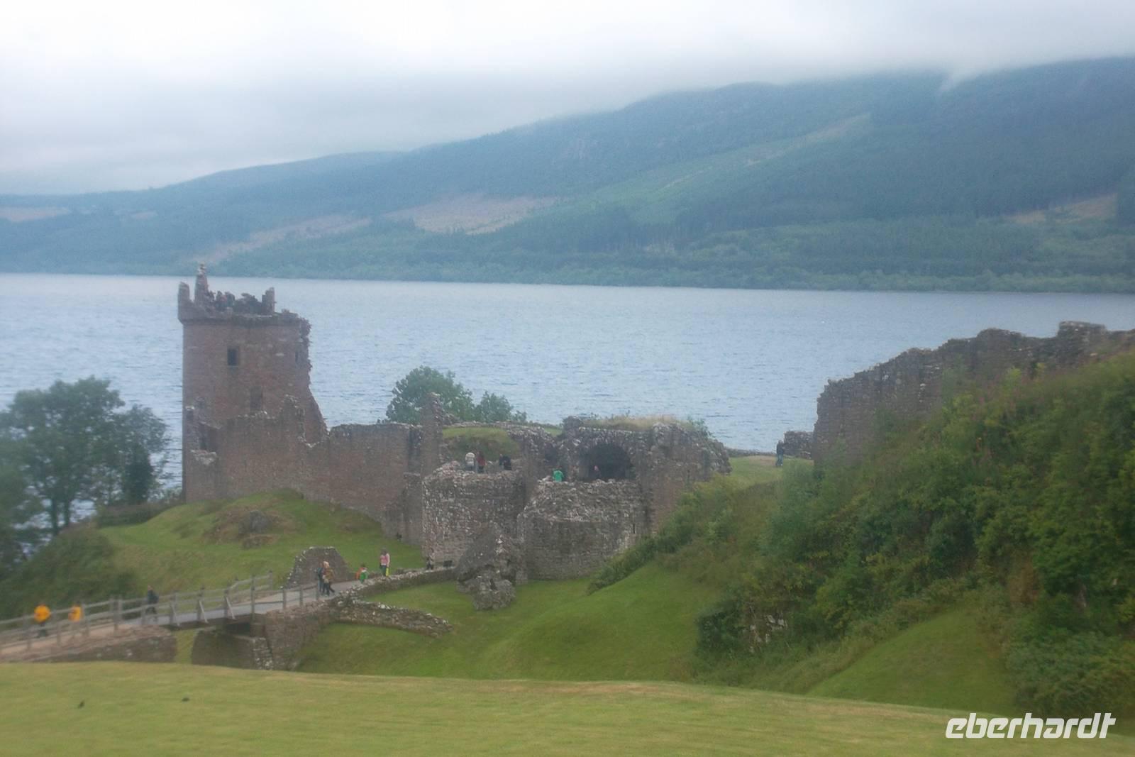 Dann erreichten wir das langgestreckte Loch Ness und die Burgruine Urquardt Castle, die zu den malerischsten und meistbesuchten Burgruinen Schottlands gehört. Einst war sie wichtiger Stützpunkt der schottischen Könige und mit ihrer zentralen Lage am weltbekannten See Loch Ness sehr wichtig. Dieser knapp 40 km lange, sehr schmale und überaus tiefe Rinnensee ist wohl vor allem bekannt für seine Legenden um das Ungeheuer von Loch Ness. Von Urquhart Castle sollen die meisten Nessie-Beobachter fündig geworden sein, weshalb sie fast als Wohnsitz des legendären Ungeheuers gilt. Danach fuhren wir um das Ende des Sees herum und an Inverness, der Hauptstadt der Highlands, vorbei. Wir sahen uns aber noch das geschichtsträchtige Schlachtfeld von Culloden an und verweilten schließlich noch ein paar Minuten an den Cairns of Clava - spektakulären prähistorischen Grabanlagen. Schließlich erreichten wir das urige „Balavil Hotel" in Newtonmore. Es gefiel vielen unserer Gästen gut, war es doch das „typischste" und traditionellste der Reise - und abends gab es sogar Live-Musik!