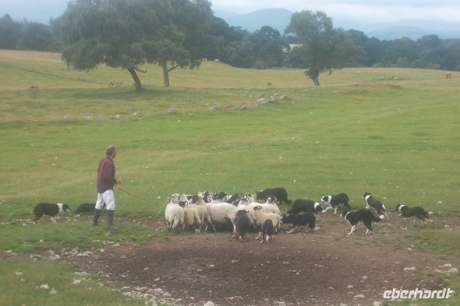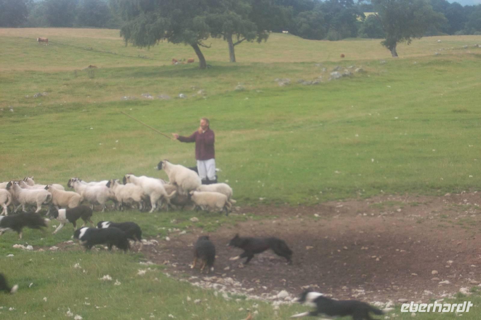 Als erstes suchten wir heute eine Schaffarm auf. Neill Ross kann mit 2500 Schafen und 35 Hütehunden aufwarten, die er selber ausgebildet hat. Er zeigte uns, wie die Hunde auf Pfeif- oder Sprachkommandos reagieren und wie sie - im gewaltigen Farmgelände von über 5000 Hektar - die Schafe manövrieren und zusammentreiben. Er zeigte uns auch, wie ein Schaf geschoren wird und führte uns schließlich seine kleinsten Hunde vor, die erst vier Wochen alt waren. Später erreichten wir Pitlochry , das 2.500 Einwohner-Städtchen das im Wesentlichen ein Tourismusort ist. Man merkt es schon am gälischen Gruß am Ortsrand: "Ceud mile fàilte" bedeutet „ 1000 Mal Willkommen". Die Königin Viktoria hat den Ort kurzerhand zum Kurbad erklärt, was ihn seither zu einem der beliebtesten schottischen Ferienziele machte.