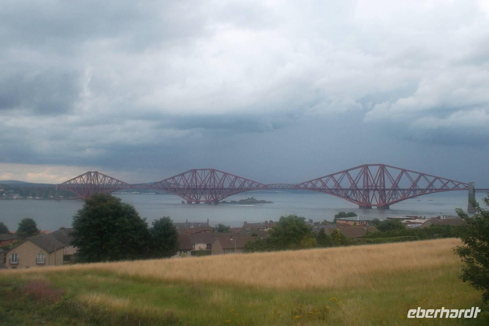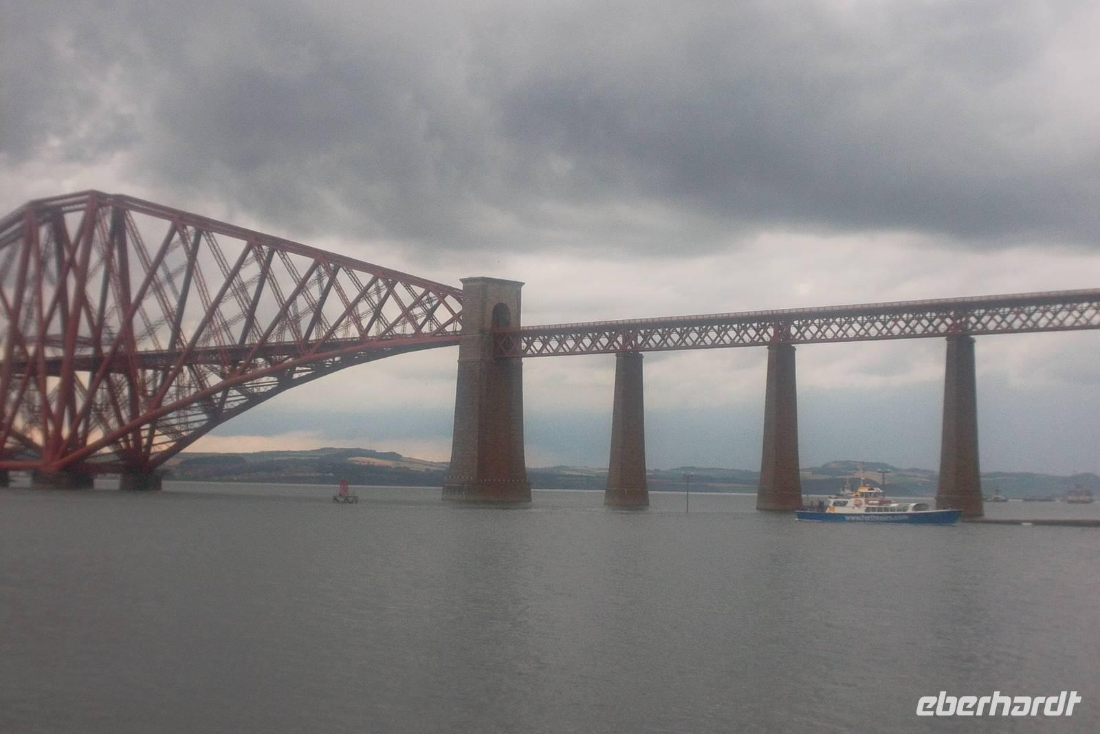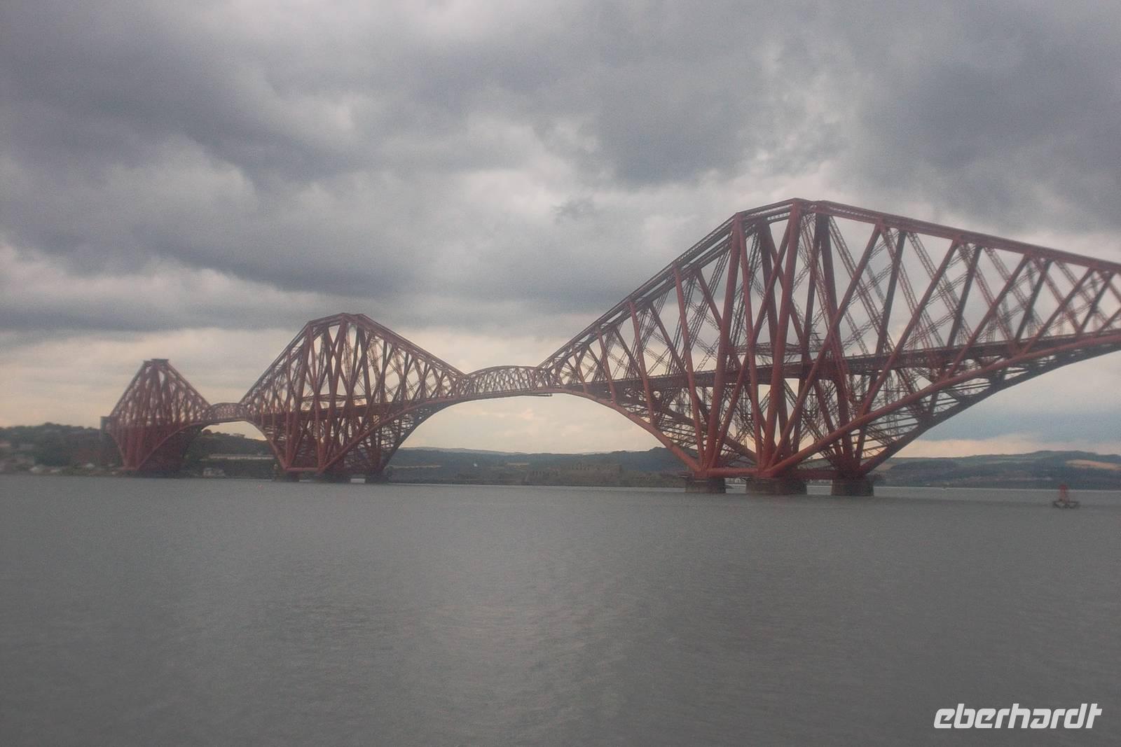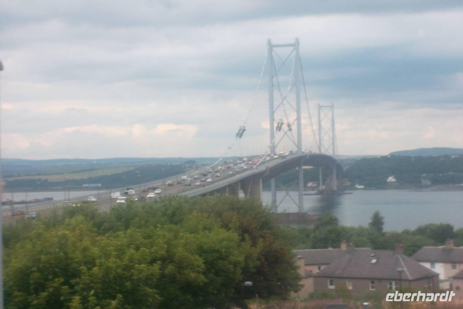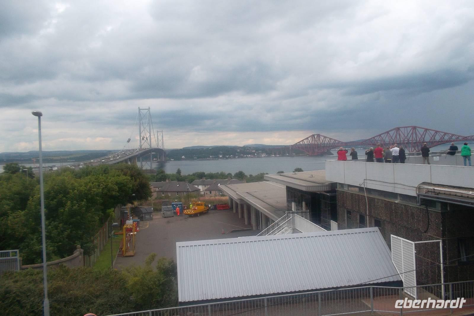 Ein kleiner „Richtig Reisen"-Abstecher zeigte uns danach das unter Denkmalschutz stehende Städtchen Dunkeld mit seiner prachtvollen Kathedralenruine. Wie auch die ganze weißgetünchte Altstadt schmiegt sie sich in eine Schleife des Flusses Tay. Dann gab es noch eine Unterbrechung unserer Fahrt zum für einen Fotostopp an den Forth-of-Forth-Bridges. Hier ist die Straßenbrücke seit 1964 in Betrieb - die längste Großbritanniens! Die danebenliegende Eisenbahnbrücke von 1890 gilt bis heute als ingenieurtechnische Meisterleistung und zeigt markante Formen. Am besten kamen die bei einem Halt zu Füßen der Brücken im Ort Queensferry zur Geltung. Wenig später erreichten wir unser Hotel nahe dem Stadtzentrum von Edinburgh.
