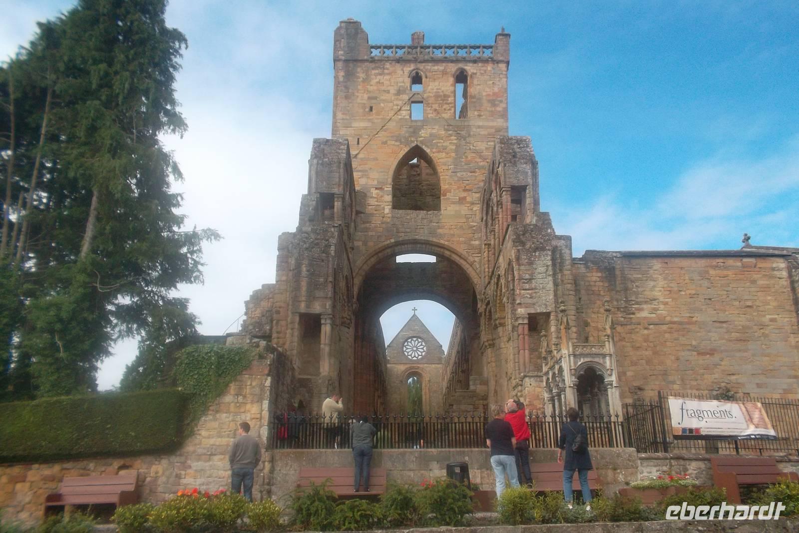 Das Hilton Grosvenor Hotel in Edinburgh verließen wir recht früh in Richtung Süden. Im schottischen Grenzland - den Borders - erreichten wir dann den kleinen Ort Jedburgh. Hier konnten wir zunächst in einer Wollmühle letztmalig nach schottischen Souvenirs Ausschau halten und danach legten wior noh einen Stopp an der imposanten Abteiruine des Ortes ein. Sie gehört zu den größten ihrer Art uns ist schon seit fast fünfhundert Jahren Ruine, als die Truppen des englischen Königs Heinrichs VIII. die Borders verwüsteten. Von hier ging es - mit einen winzigen Fotostopp in Crater Bar an der schottisch-englischen Grenze und einer kurzen Mittagspaue an der Autobahn - noch zu einem Besuch der herrlichen alten Fachwerkstatt York. Etwa zwei Stunden hatten wir hier für den Stadtaufenthalt : also konnten wir bei einer kleinen Führung das gewaltige Münster sehen, durch die historischen, hübsch geschmückten Fachwerkstraßen zum Markt bummeln und die alte Ladenstraße „The Shambles" entdecken. Anschließend erfreute sich alle noch an Freizeit für einen letzten individuellen Bummel, einen Abschiedstee oder letzte kleine Einkäufe.