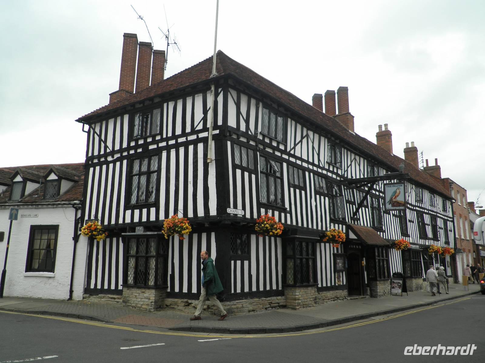 Nach einem echten englischen Frühstück fuhren wir in die Geburtsstadt William Shakespeares. Stratford-upon-Avon begrüßte uns mit rustikalen Fachwerkhäusern und engen Kanälen, auf denen noch heute schmale Boote unterwegs sind. Wir begaben uns auf einen Rundgang durch die Stadt und entdeckten manches Haus, das mit dem Leben Shakespeares in Verbindung steht. Zuerst spazierten wir am Royal Shakespeare Theatre vorbei, das direkt am Fluss Avon liegt, dann erreichten wir die Holy Trinity Church, in der Shakespeare und seine Familie begraben liegen. Wir sahen seine Büste und sein Grab. Wir tauchten ein in die Atmosphäre dieses altehrwürdigen Gotteshauses. Unser weiterer Spaziergang führte uns vorbei an Halls Croft, New Place und Nashs House. Schließlich erreichten wir Shakespeares Geburtshaus, ein uraltes aber liebevoll restauriertes Fachwerkhaus, das in der belebten Fußgängerzone liegt. Hier endete unser gemeinsamer Spaziergang und wir nutzten die noch verbleibende Zeit für Freizeit in der Shakespeare-Stadt. Am Mittag fuhren wir nach Warwick, zum Warwick Castle. Dort verbrachte unsere Gruppe ein paar unterhaltsame Stunden mit Greifvogelshow, Ritterkämpfen, Rittertournier und allerlei mittelalterlichen Attraktionen. Ein Rundgang über die Wehrtürme verlangte das Überwinden von mehr als 530 Stufen. Die Ausblicke in die Region waren Lohn für die Anstrengung. Auf dem Heimweg machten wir Halt am Kenilworth Castle für ein paar Fotos. Unser Hotel in Kenilworth erwartete uns wieder mit einem 3-Gang-Abendessen.