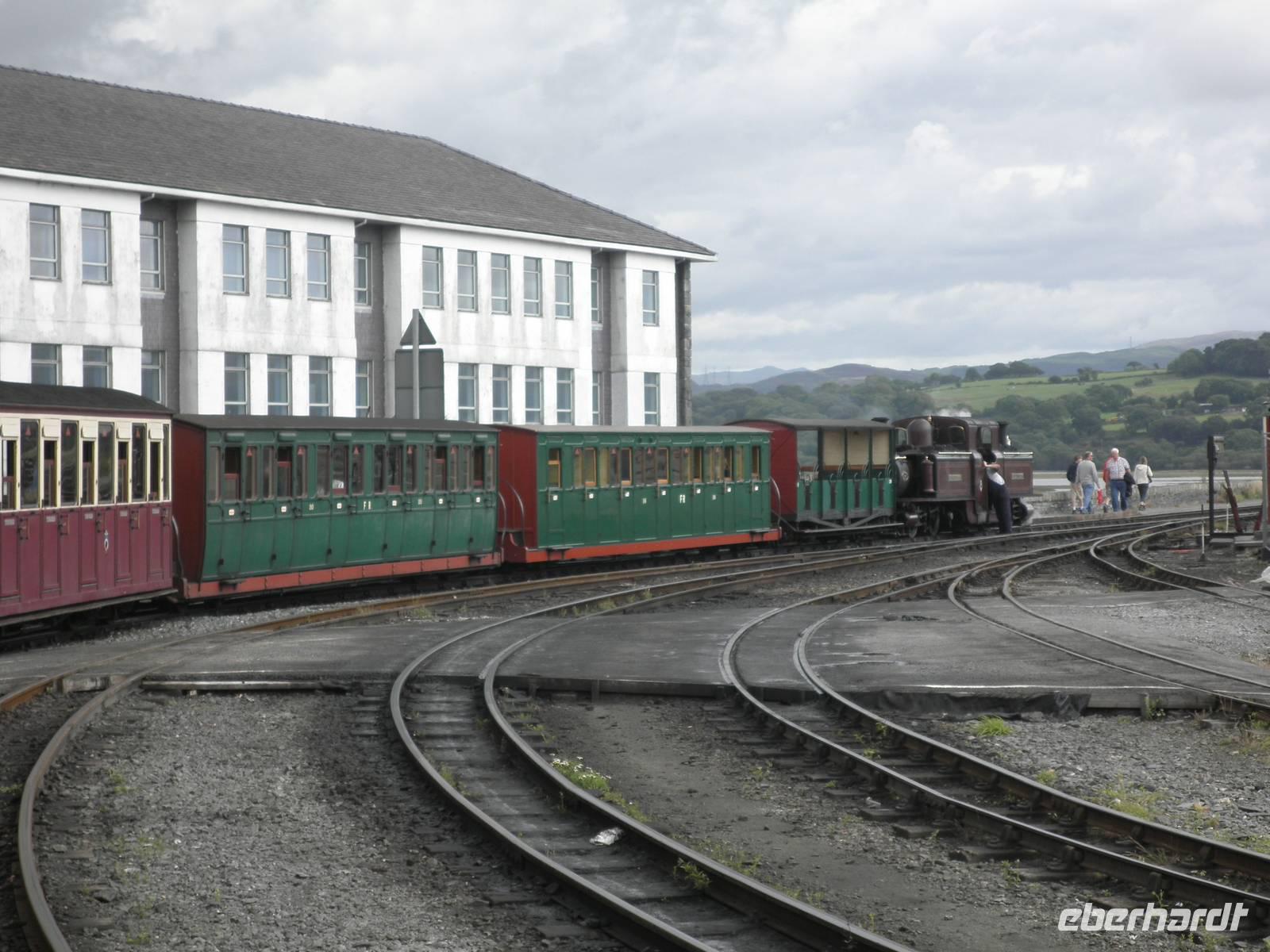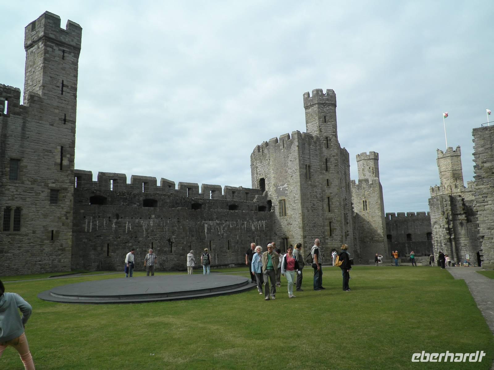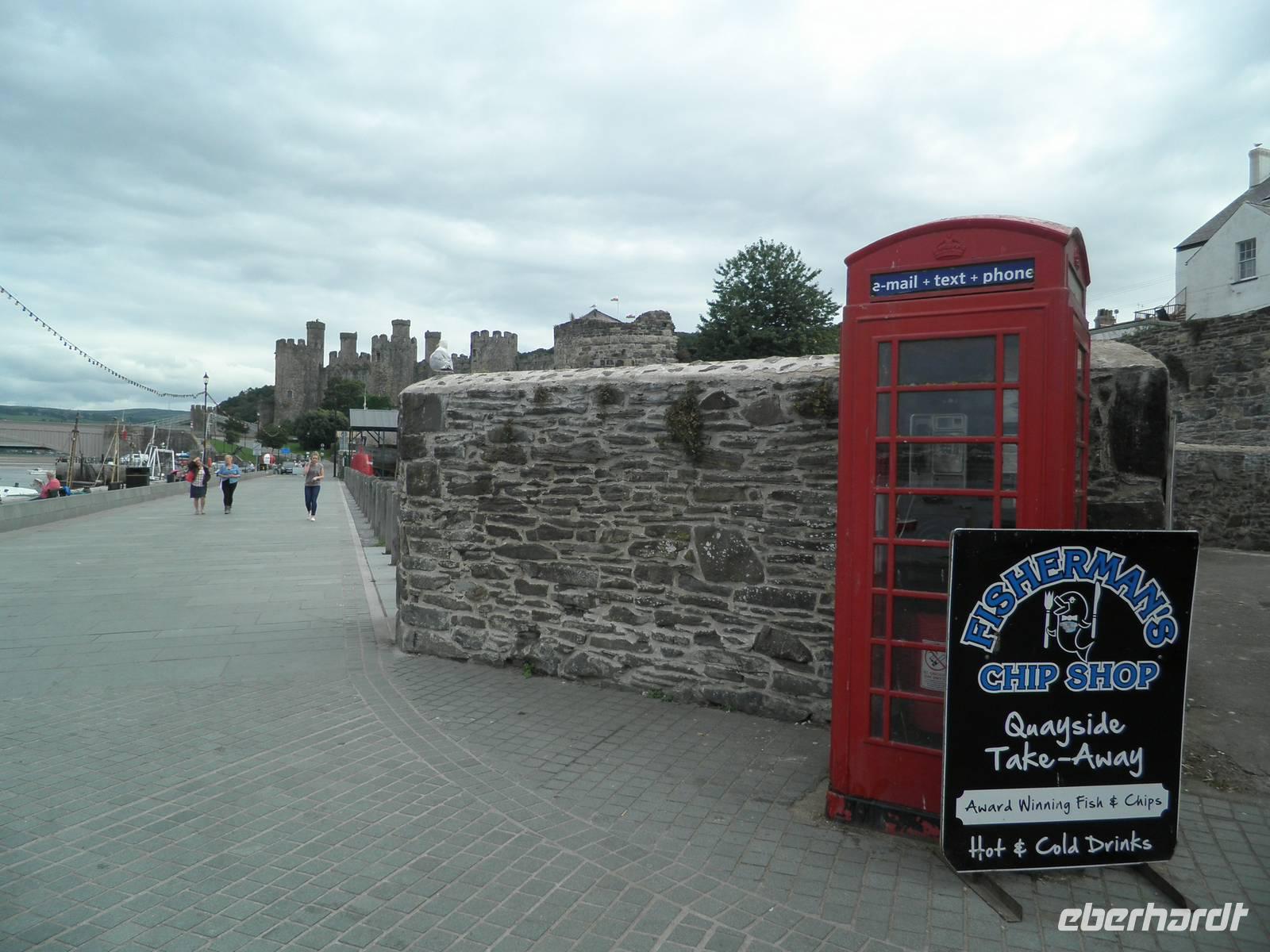 An diesem Tag erkundeten wir Wales, den kleinsten Teil der Britischen Insel. Zunächst fuhren wir auf die Insel Anglesey und machten Fotos von der berühmten Hängebrücke über die Menai Street des Baumeisters Thomas Telford. Dann besuchten wir ein kleines Dorf, das wohl den längsten Namen in Großbritannien trägt. Der Ortsname besteht aus 58 Buchstaben und beginnt so: "Llanfairpwellgwyn..." Besuchermagnet ist der Bahnhof, an dem das Ortsschild in voller Länge prangt und einfach fotografiert werden muss. Danach erkundeten wir Caernarfon Castle, das einige Räume zu besichtigen hat, z.B eine Ausstellung über Prince Charles, der hier im Jahre 1969 zum Prinzen von Wales gekrönt worden ist. Wir verließen Caernarfon nach etwas Freizeit im Ort, fuhren in Richtung Süden. Am malerisch gelegenen See Lynn Gwellyn hielten wir an zur Mittagspause, die wir bei sommerlichen Temperaturen am Ufer des herrliche gelegenen Sees verbrachten. Dann fuhren wir durch das Örtchen Beddgelert, in dem "der Hund begraben" ist und erreichten die Hafenstadt Porthmadog. Dort bestiegen wir einen historischen Zug, der von einer Dampflock gezogen wurde: Ffestiniog Railway. Unsere Gruppe saß in zwei eigenen Wagen und so zuckelten wir gemütlich durch die walisische Landschaft, mit Bergen, Wasserfällen, Seen, viel Grün und noch mehr Schafen. Einige Gäste probierten das Bier, das hier Ale heißt. Der Zug entließ uns in Blaenau Ffestiniog, früher ein Zentrum des Schieferabbaus. Unser Bus erwartete uns am Bahnhof. Weiter ging es nach Conwy, einem herrlichen Städtchen mit allem, was sich der Tourist so wünscht: ein altes Castle, das Meer, Fischerboote, gemütliche Cafés und als Besonderheit, das kleinste Haus in Großbritannien, das direkt am Kai auf Besucher wartet. Am frühen Abend erreichten wir unser Hotel in Mold und ließen uns ein leckeres 3-Gänge-Menü schmecken. Den Abend ließen einige im Pub des Hotels ausklingen, denn heute war auch unser Bergfest der Reise.