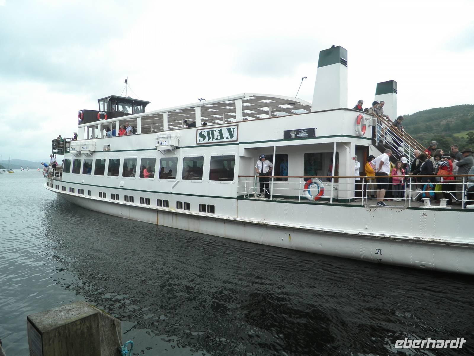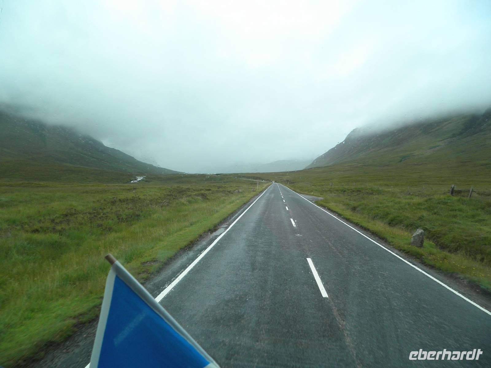 Wieder nach einem typisch englischen Frühstück verließen wir unser Hotel in Mold und fuhren in Richtung Lake Distrikt. Am Lake Windermere bestiegen wir einen Ausflugsdampfer und schipperten gemütlich über den See bis Bowness. Ein wenig Sonne hat zwar gefehlt, aber es blieb trocken, so dass man auch auf Deck sitzen und die herrlichen grünen Hügel um den See bewundern konnte. Die weitere Fahrt führte uns durch den Lake Distrikt, über den Kirkstone Pass, Ullswater entlang, vorbei an beeindruckender Landschaft, bis wir schließlich in Gretna Green ankamen, dem ersten Ort auf schottischem Gebiet. Hier, in der alten Hochzeitsschmiede, erlebten wir eine schottische Hochzeitszeremonie, bei der mit viel Spaß und einigen lustigen Heiratsversprechen ein Paar aus unserer Gruppe zum Spaß und zur Freude der ganzen Gruppe vermählt wurde. Anschließend hatten wir Zeit, das Museum dort und die kleinen Läden zu besichtigen. Den Tag beschlossen wir in Glasgow, unser Hotel war das Jurys Inn, das genau im Zentrum der Metropole liegt.