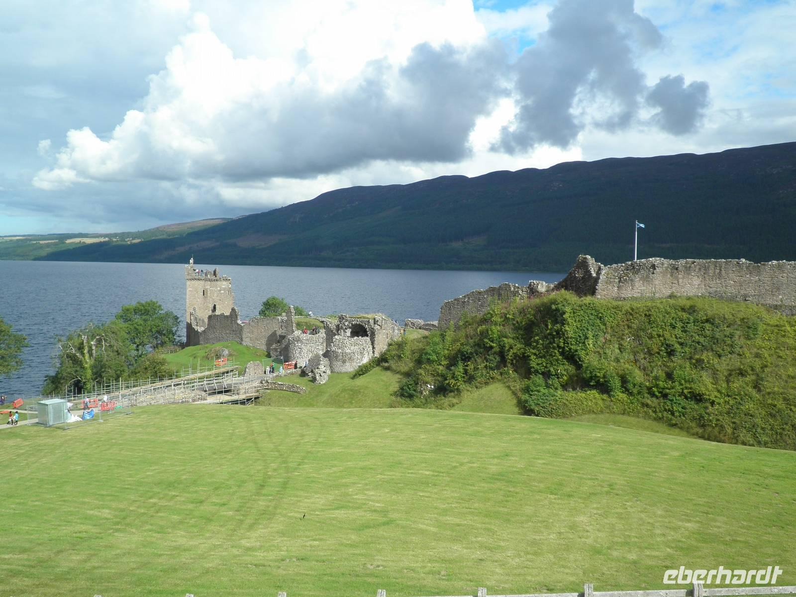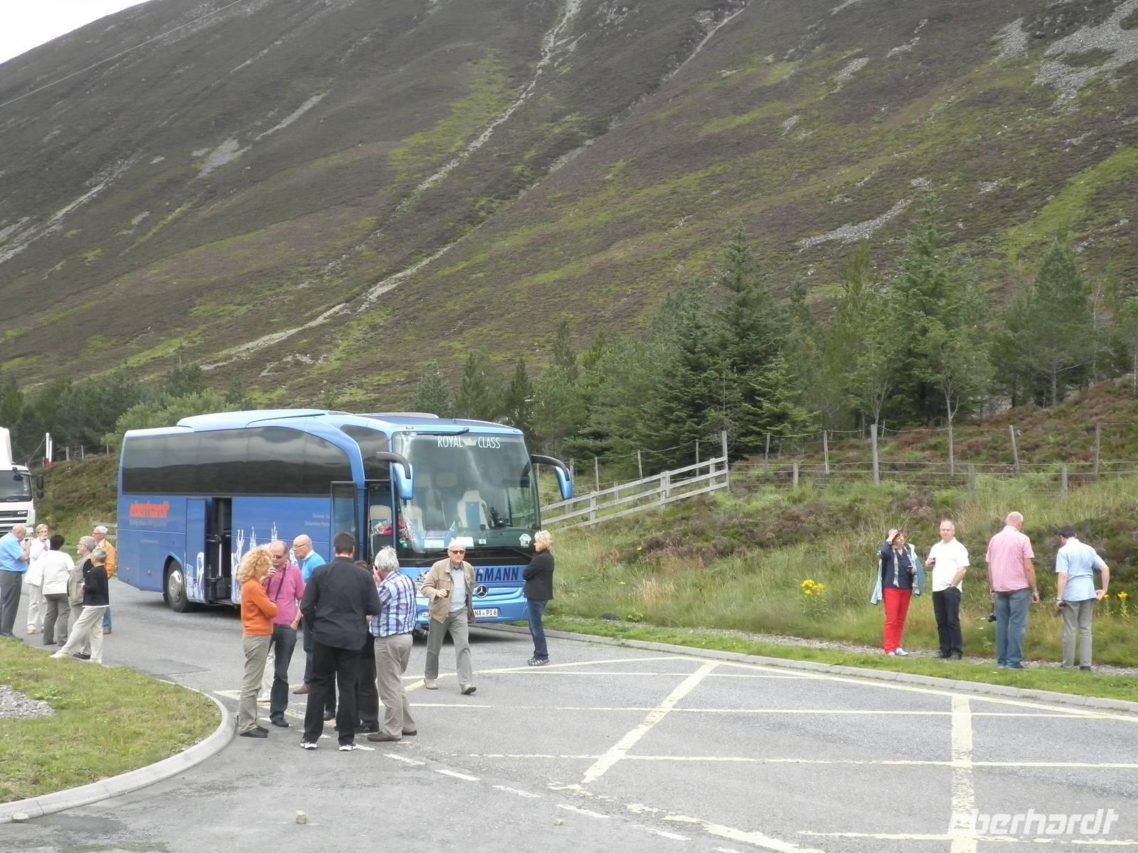 Nachdem wir Glasgow am Morgen verlassen hatten, tauchten wir ein in die Seenlandschaft der Lochs in Schottland. Loch Lomond war der erste der großen Seen, an dem wir entlang fuhren. In Luss hieltern wir an, probierten ein typisch schottisches Shortbread (Butterkeks) und spazierten an blumengeschmückten Häuschen vorbei bis zum Ufer des Sees. Auf unserer weiteren Fahrt begegneten uns nicht nur unzählige Schafe, auch herrliche Berge und grüne Täler. Durch das Tal des Coe - Glen Coe, das durch ein Massaker am McDonald-Clan zu trauriger Berühmtheit gelangt ist - erreichten wir Fort Williams und später Fort Augustus, wo beeindruckende Schleusen des Caledionan Canals zu sehen sind. Danach erreichten wir schließlich das berühmte Loch Ness, wo auch wir vergeblich nach Nessie Ausschau hielten. Wir besichtigten die Ruine des Urquhart Castle und hatten danach noch Gelegenheit, ein Nessie in einem Tümpel in Drumnadrochit zu fotografieren oder ein Souvenir im Nessiecenter einzukaufen. Im romantischen und typisch schottischen Balavil Hotel in Newtonmore verbrachten wir eine ruhige Nacht, nachdem wir zuvor mit einem ausgesprochen leckeren Abendessen verwöhnt worden waren. Einige machten nach dem Essen einen kleinen Spaziergang durch den Ort mit gepflegten Gärten und romantischen kleinen Häusern und bunt bemalten Wildkatzenattrappen.