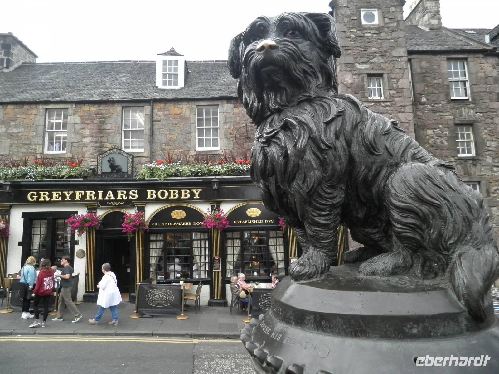 Dieser Tag hatte für alle etwas zu bieten. Zunächst besuchten wir die Schaffarm in Kincraig, auf der uns die Arbeit mit den Hütehunden vorgeführt wurde. Besondere Freude bereiteten unseren Gästen die jungen Lämmer, die sie selbst mit der Flasche füttern konnten, und die kleinen Hunde. Nach der Erfahrung mit den Tieren erreichten wir eine kleine traditionelle Whisky-Brennerei, die kleinste in Schottland. Ein deutsch sprechender Mitarbeiter führte uns durch den Betrieb und erklärte uns die Herstellung des typischen hochprozentigen Getränks. 10 Jahre alter Whisky aus dem Sherry-Fass konnte verkostet werden, ebenso ein Cremelikör, in dem dieser Whisky Verwendung findet. Am Ende des Rundgangs gab es Gelegenheit, verschiedene Whiskysorten im Shop der Brennerei zu erstehen. Im benachbarten Pitlochry verbrachten wir eine längere Mittagspause. Einige schlenderten durch das hübsche Städtchen, andere spazierten zum nahe gelegenen Stauwehr mit Lachstreppe. Am Nachmittag erreichten wir unser Hotel Hilton in Edinburgh, wo wir ein leckeres Abendessen serviert bekamen.
